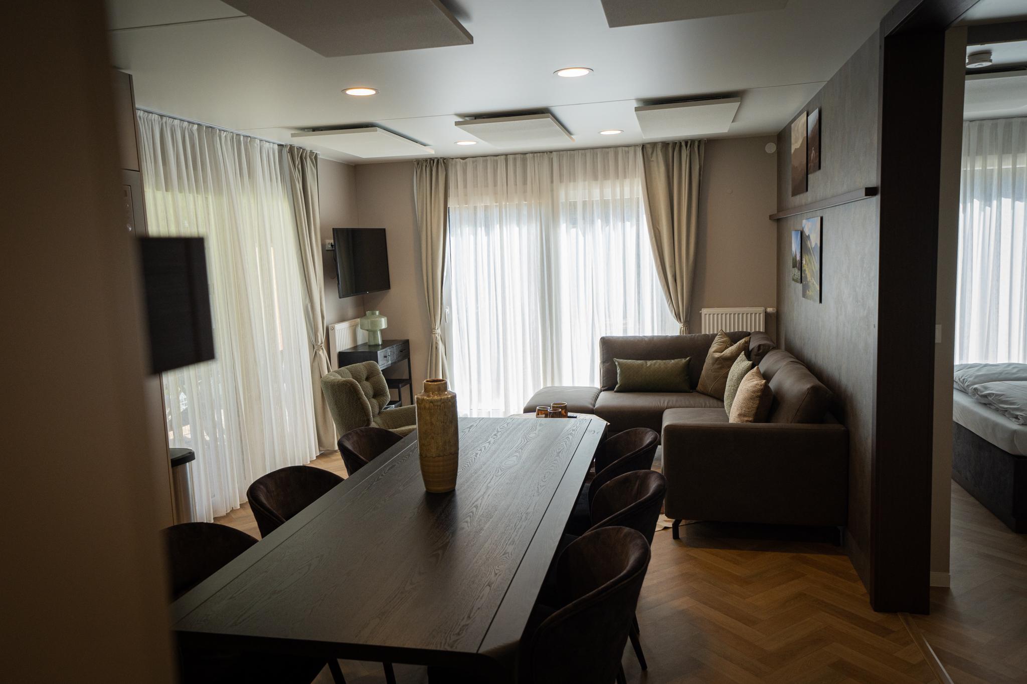 Hier wird Gemütlichkeit großgeschrieben. Das großzügige Wohnzimmer mit viel Tageslicht und direktem Zugang zur Terrasse lädt Gäste zum Entspannen ein. Die Unterkunft verfügt darüber hinaus über drei Schlafzimmer, eines davon mit einem Doppelbett und zwei Zimmer mit jeweils zwei Einzelbetten. Die Küche ist mit allem ausgestattet, was zum Kochen benötigt wird. Weiters gibt es ein luxuriöses Badezimmer mit begehbarer Dusche, Waschbecken, freischwebendem WC sowie eine separate Toilette mit Waschbecken. Der großzügig bemessene Stauraum rundet den hohen Wohnkomfort ab. Die Terrasse mit gemütlichen Sitzmöglichkeiten bietet einen Ort des Zusammensitzens und Genießens.