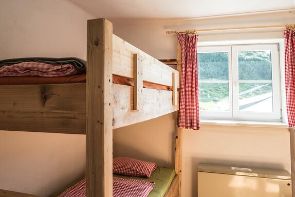 Urig-typisches Berghüttenzimmer mit einem Doppel-Stockbett und einem Einzel-Stockbett ausgestattet. Ideal für Familien und Gruppen. Es gibt einen allgemeinen Waschraum mit zwei Duschen im Erdgeschoss. WCs sind im EG und im 1. Stock. Auch Belegung mit weniger als 6 Personen möglich. Frühstücksbuffet und Abendessen (Buffet) zubuchbar. Tagsüber a-la-carte.