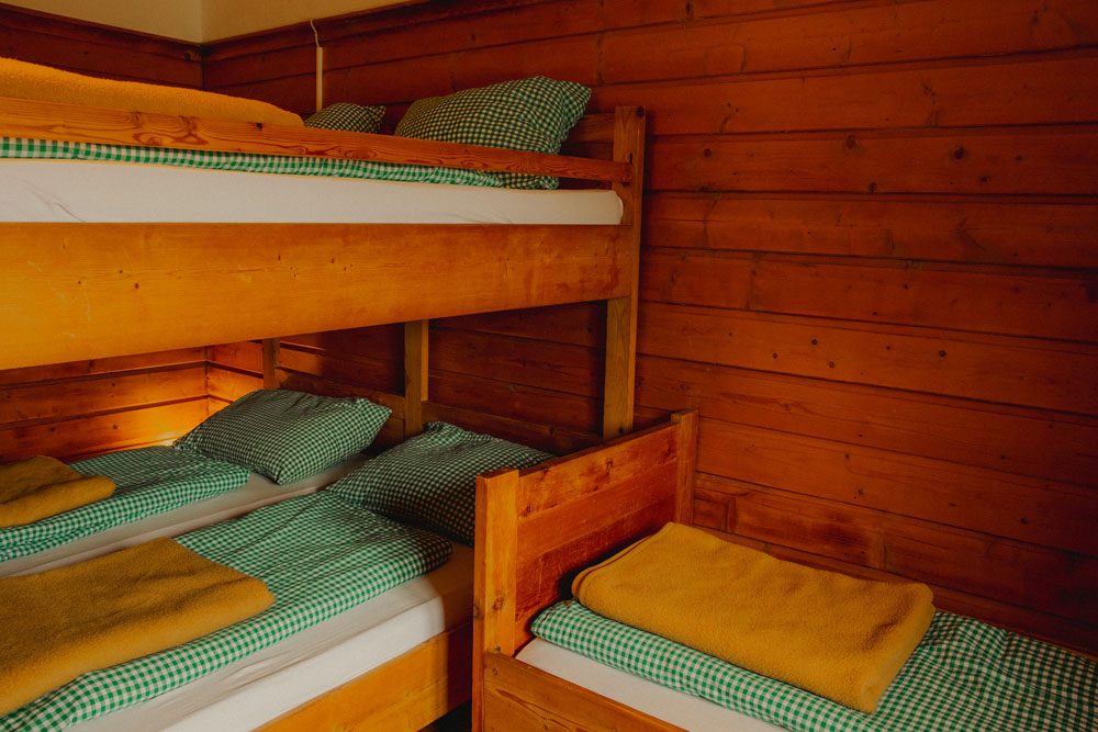 Die 2013 neu renovierten Zimmer mit Hüttencharakter sind mit einfachen Holzbetten ausgestattet. Wir bieten unseren Gästen verschiedene Lager, Mehrbettzimmer, Zweibettzimmer und wer gerne alleine schläft natürlich auch die Möglichkeit für eine Einzelzimmerbelegung.