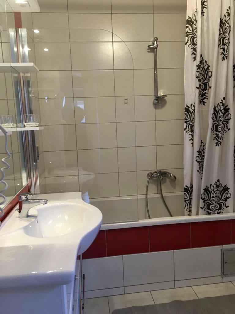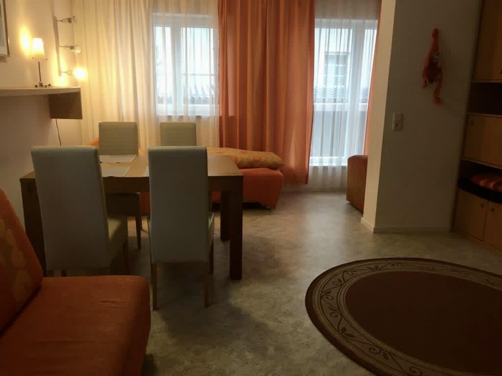 Ferienwohnung bestehend aus: Vorraum, Küche mit kleiner Essbar, Wohnschlafzimmer ( ausziehbare Jokasofas ), Schlafzimmer, WC, Bad mit Wanne, pass. Geschirr, 2 Cafemaschinen, Spüler, Wasserkocher, Kabel TV, Wlan, komplette Bett- Badwäsche, etc