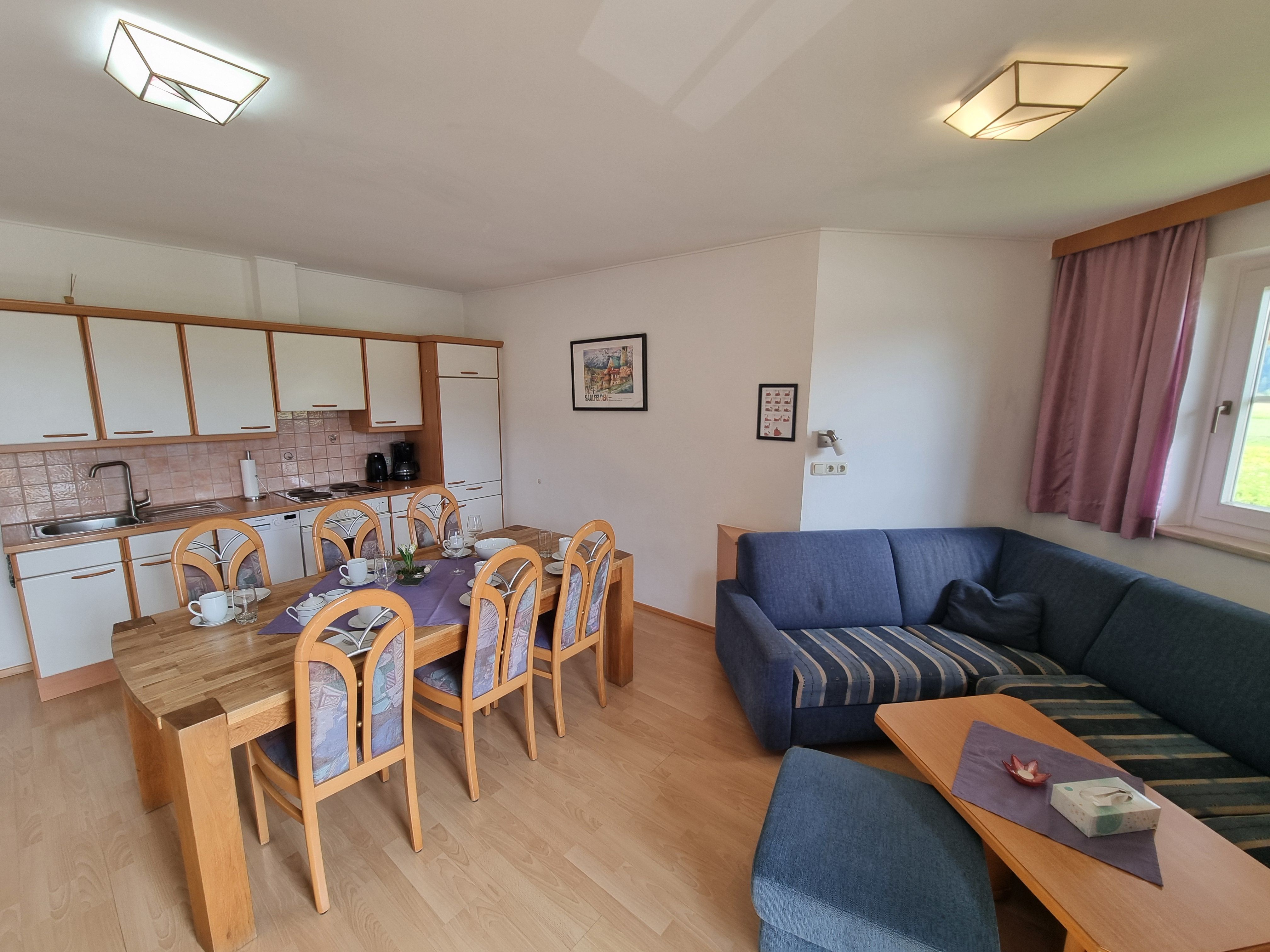 Mit einem großen Küchen-Wohnbereich und bequemer Schlafcouch 2x2 m, Komplett-Küche mit Essbereich für 6 Personen, Vorraum mit Garderobe,