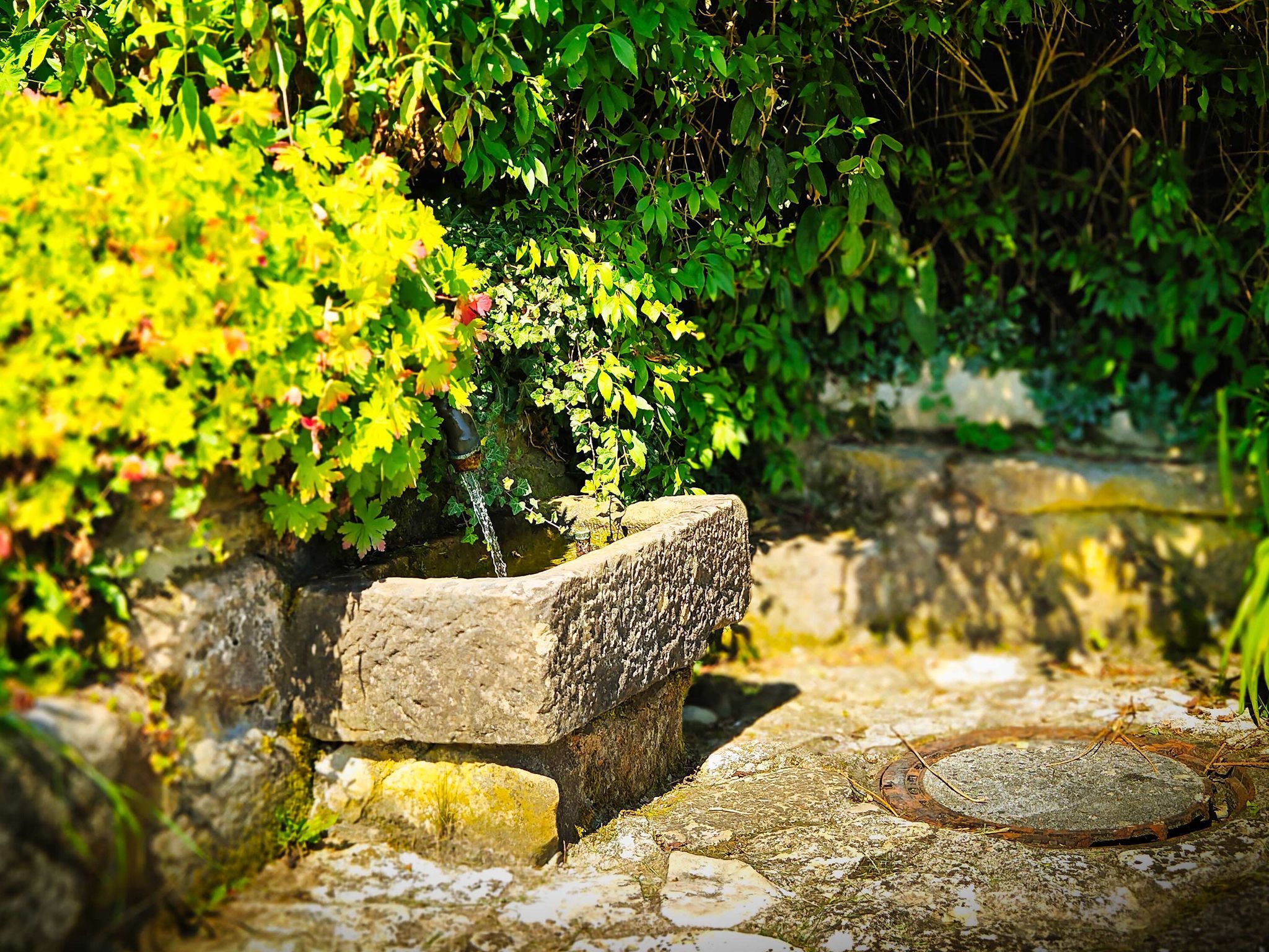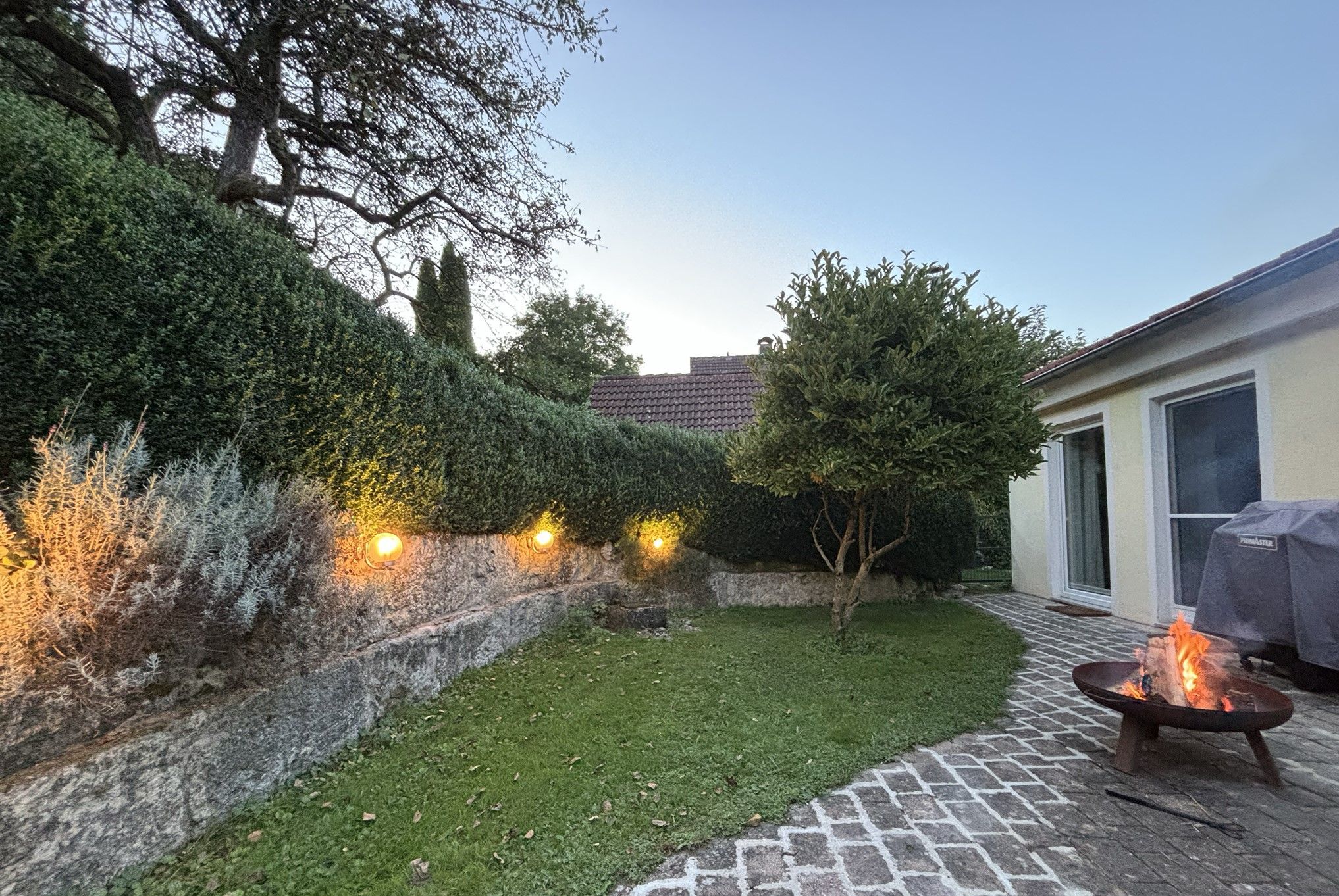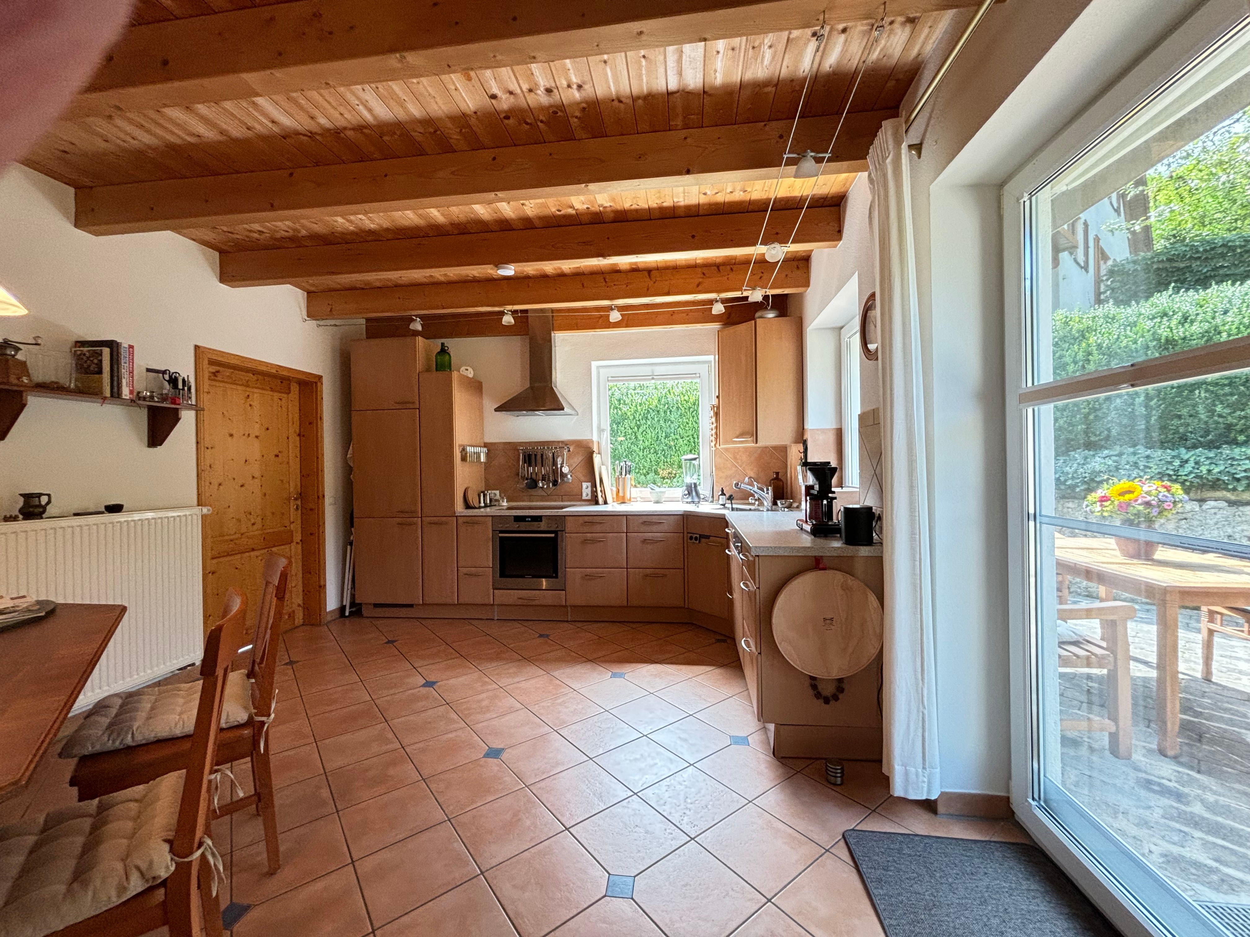 Die Terrasse mit Grillplatz, Feuerschale und Vollholzsitzgarnitur kann durch eine elektrische Markise zum angenehmen Schattenplatz umfunktioniert werden. Ob Sie auf dem Rasen Sonnenbaden oder sich in der Quelle ein kühles Getränk holen, Sie sollen sich rundum wohlfühlen.