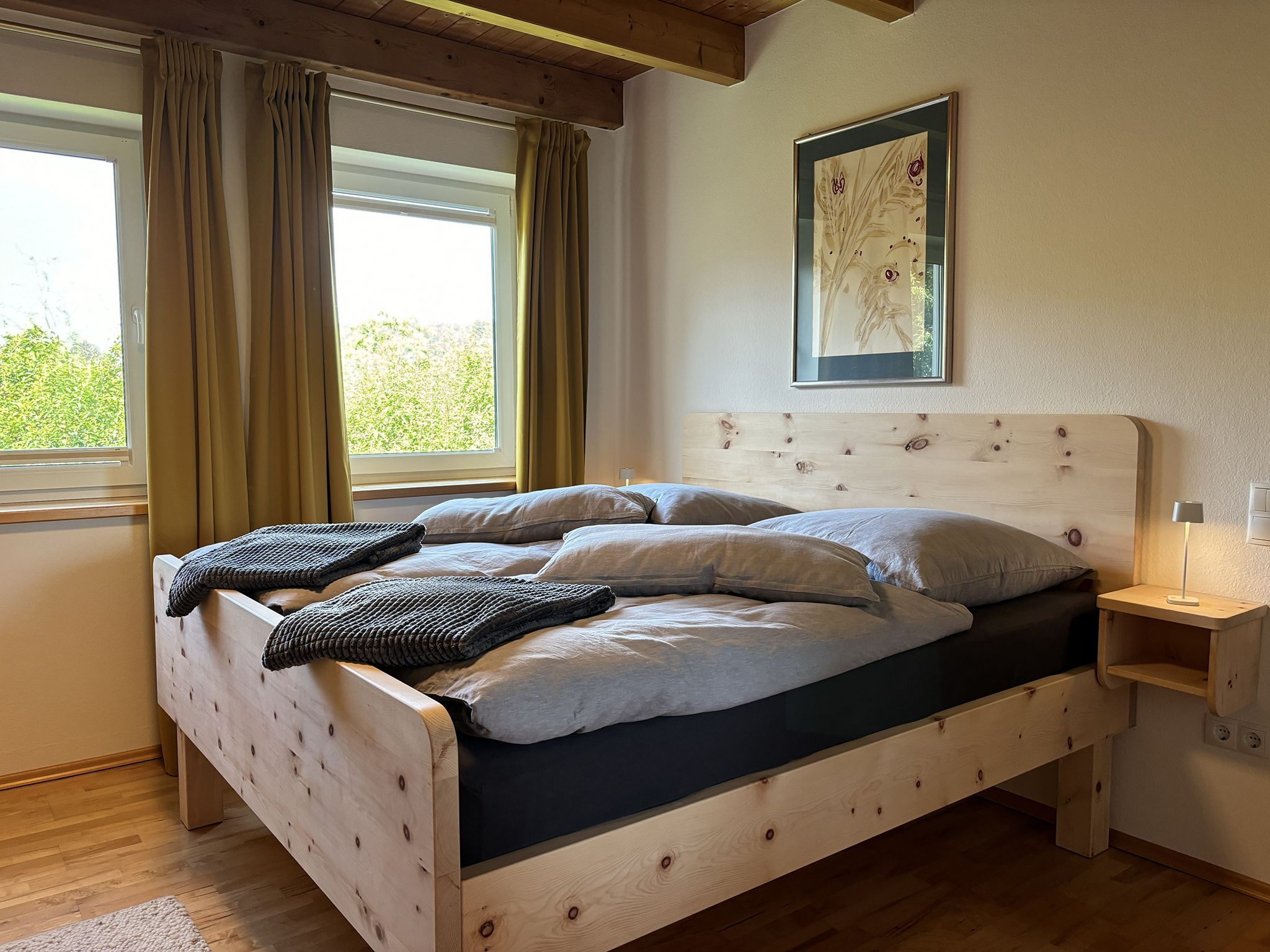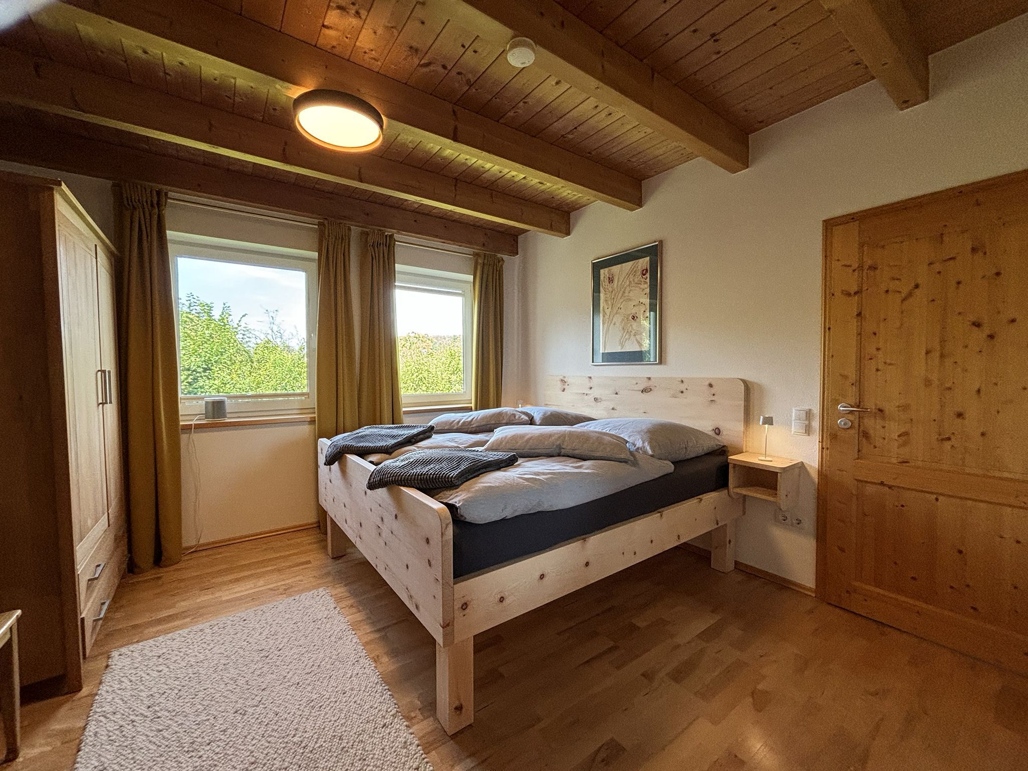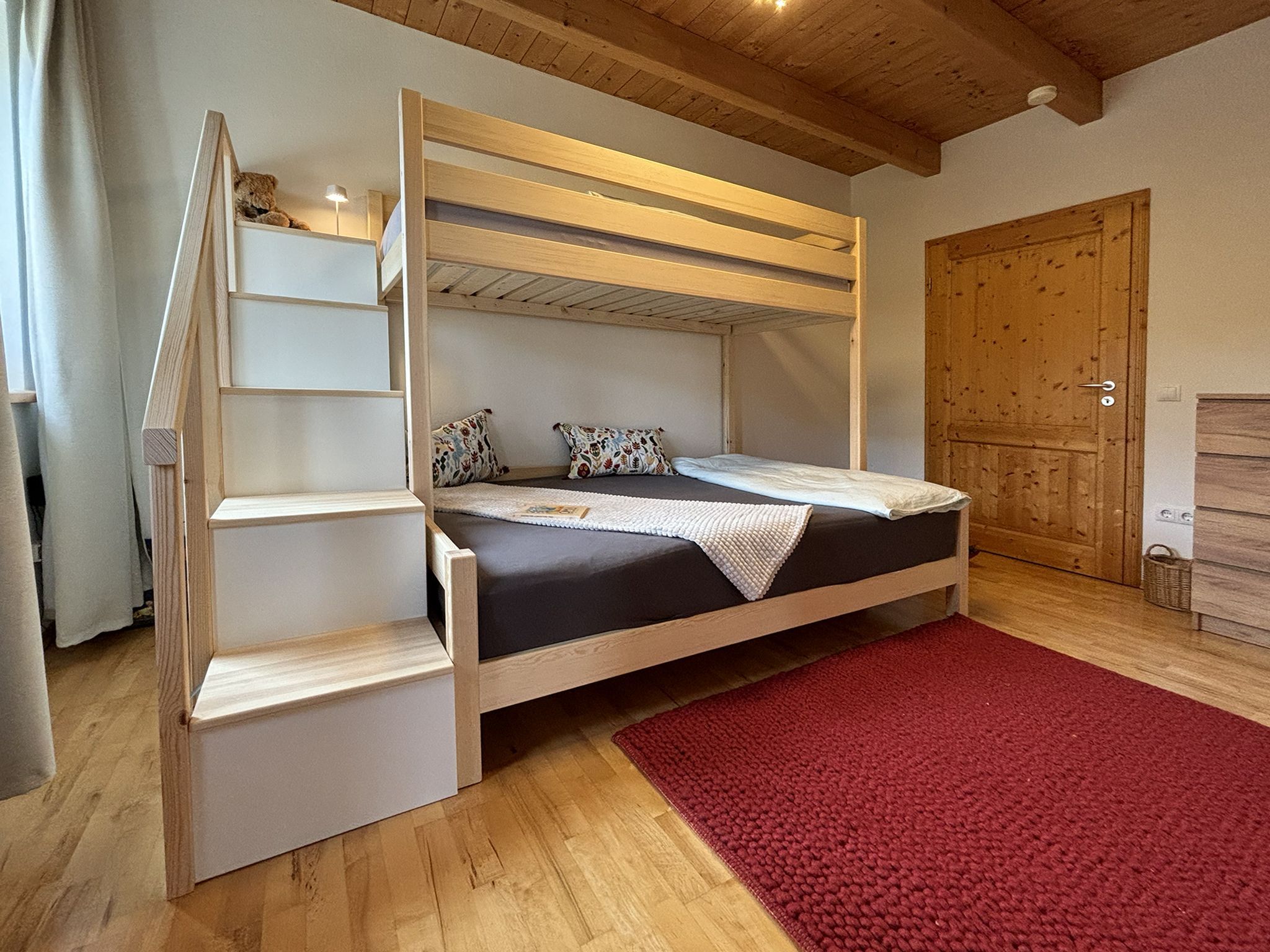 Das vom Schreiner angefertigte Hochbett im zweiten Schlafzimmer ist aus Zirbenkiefer und naturbelassen.