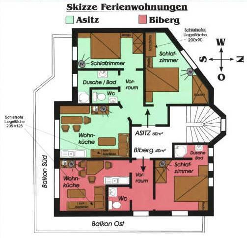 Ferienwohnung BIBERG ( 40m²) Schöne Wohnung für 2 bis 4 Personen, Wohnküche mit großem ausziehbaren Sofa (Schlaffläche 200cm x 160 cm), ein Schlafzimmer für 2 Personen, Bad/Dusche, separate Toilette, Vorraum, in Wohnküche und Schlafzimmer Smart-Flat-TV, Wlan, super Preis/Leistungsverhältnis!