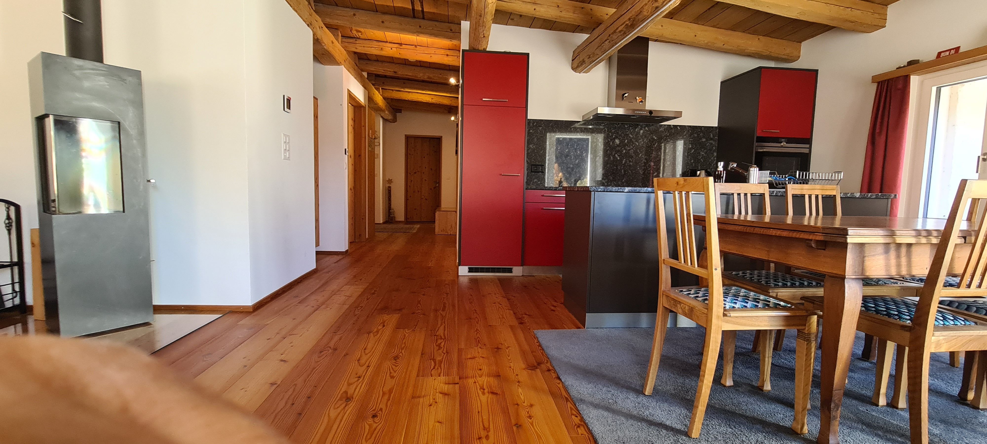 Am Dorfplatz von Lavin grosszügige neu erstellte Wohnung im 2. Stock zu vermieten. Die Wohnung verfügt über eine Grosse Wohnküche. Zwei Zimmer werden vermietet. In einem Zimmer steht ein Doppelbett mit Schrank, im anderen Zimmer zwei Einzelbetten mit Kommode und Schrank. Im Badezimmer ist eine Badewanne und eine begehbare Dusche. Die Wohnung verfügt über einen Balkon mit einer herrlichen Aussicht über das ganze Unterengadin mit seinen majestätischen Gipfeln. Lebensmittelladen, Bäckerei, Bahnhof und Restaurant befinden sich in unmittelbarer Nähe.Im Sommer ist Lavin der Ausgangspunkt für unzählige Wanderungen.Im Winter bietet Lavin einen natürlichen Eisplatz, Langlaufloipe und Schlittelbahn. Die Skigebiete Scuol und Klosters sind gut mit dem öffentlichen Verkehr erreichbar.Geniessen Sie zudem im kleinen Tal einen wunderschönen Sonnenaufgang.