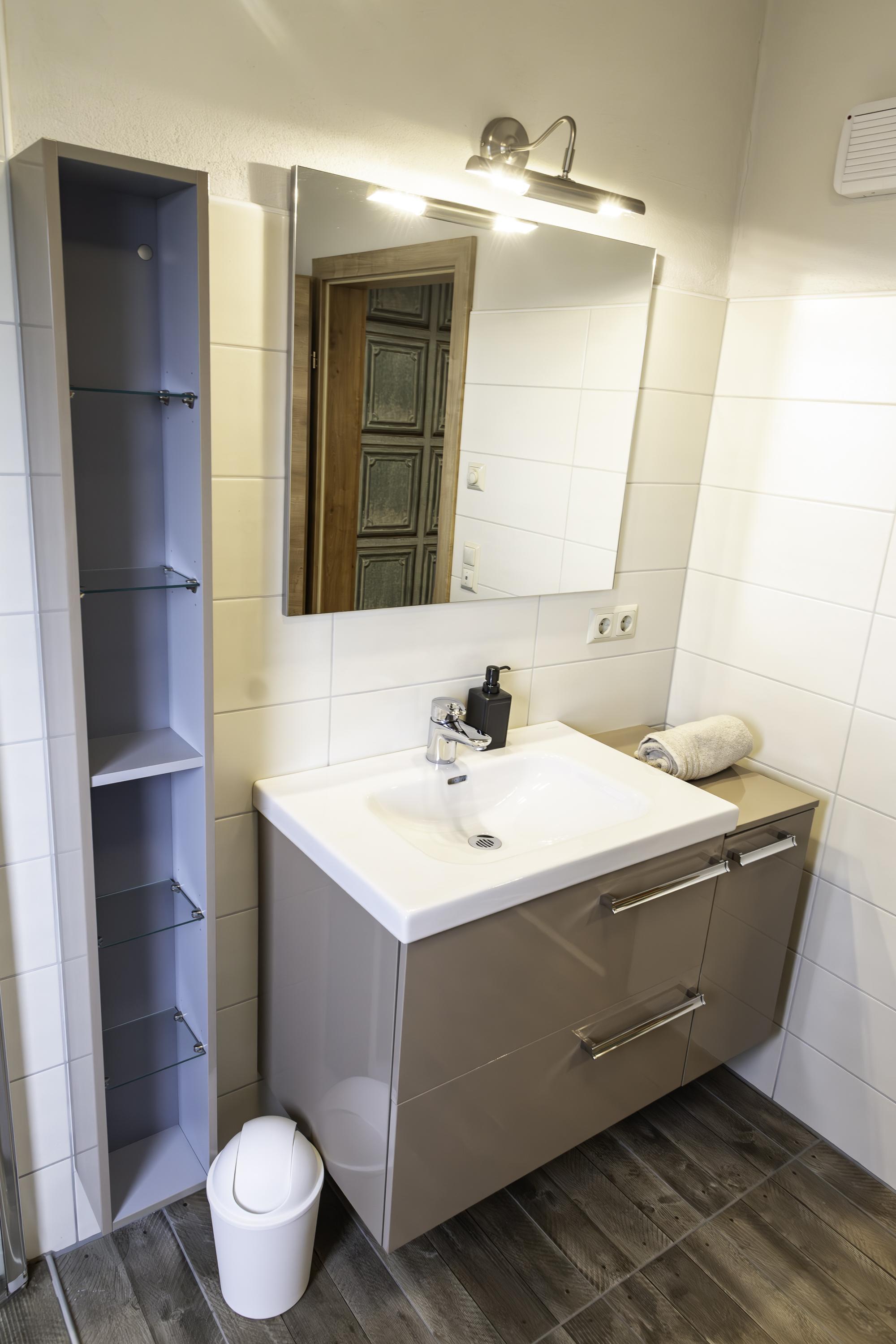 Unsere 90 m² großes Apartment 2 im Obergeschoss bietet Platz für bis zu 6 Personen. Sie verfügt über 3 getrennte Schlafzimmer (jeweils mit Flat-TV) und eine voll ausgestattete Küche mit gemütlicher Essecke. Zwei der Schlafzimmer befinden sich auf einer Ebene, das dritte Schlafzimmer erreicht man über eine Treppe. Die Wohnung verfügt außerdem über ein Badezimmer mit großer Dusche und Blick auf das Dachstein-Massiv. Das WC ist separat.