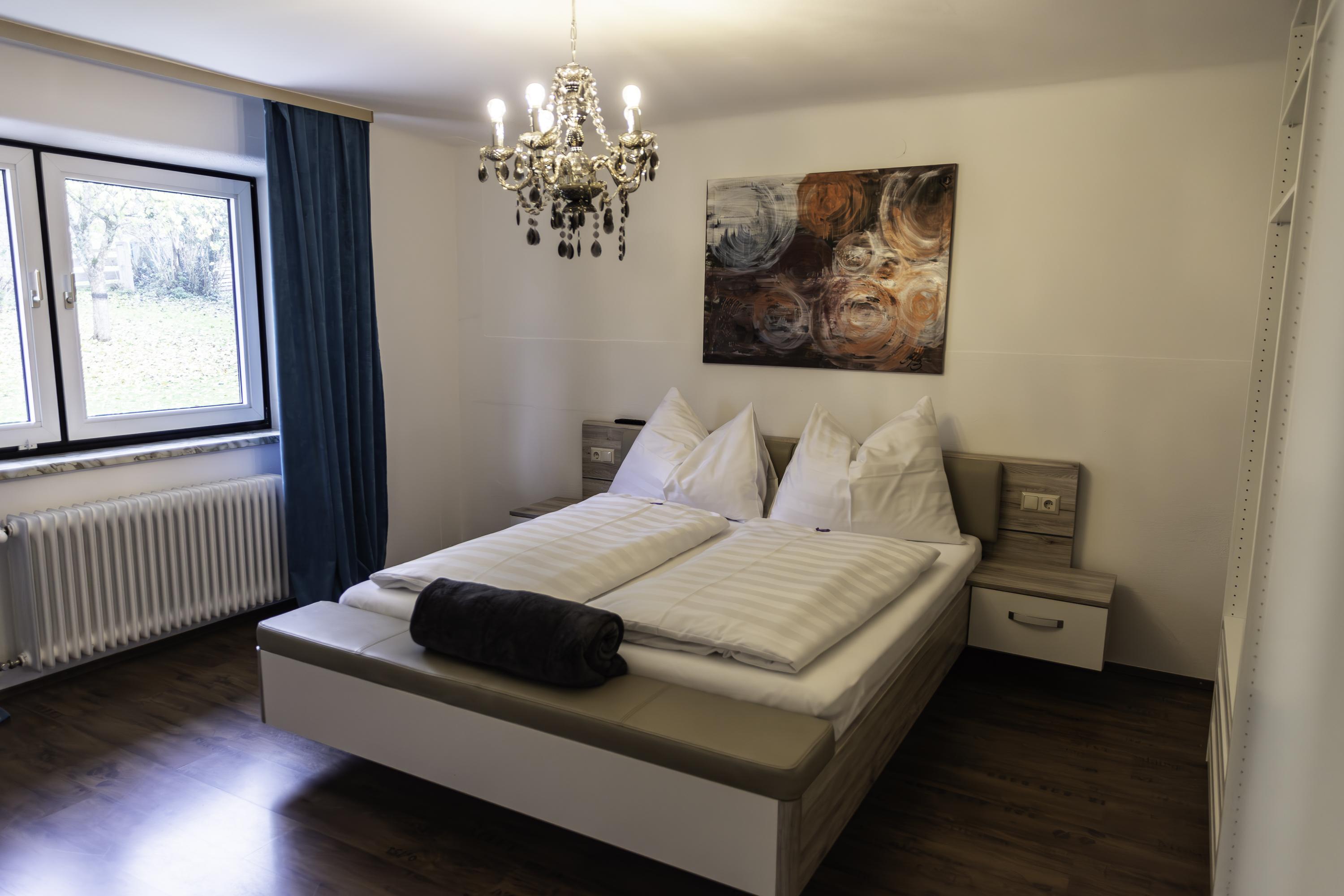 Unsere 60 m² großes Apartment 2 im EG bietet Platz für bis zu 4 Personen. Es verfügt über 2 getrennte Schlafzimmer (jeweils mit Flat-TV) und eine voll ausgestattete Küche mit gemütlicher Essecke. Die Wohnung verfügt außerdem über ein Badezimmer mit großer Dusche und WC. Außerdem gibt es einen direkten Zugang ins Grüne. Eine große Terrasse mit Essgruppe und ein riesiger Garten mit Grill, laden zum Verweilen ein.