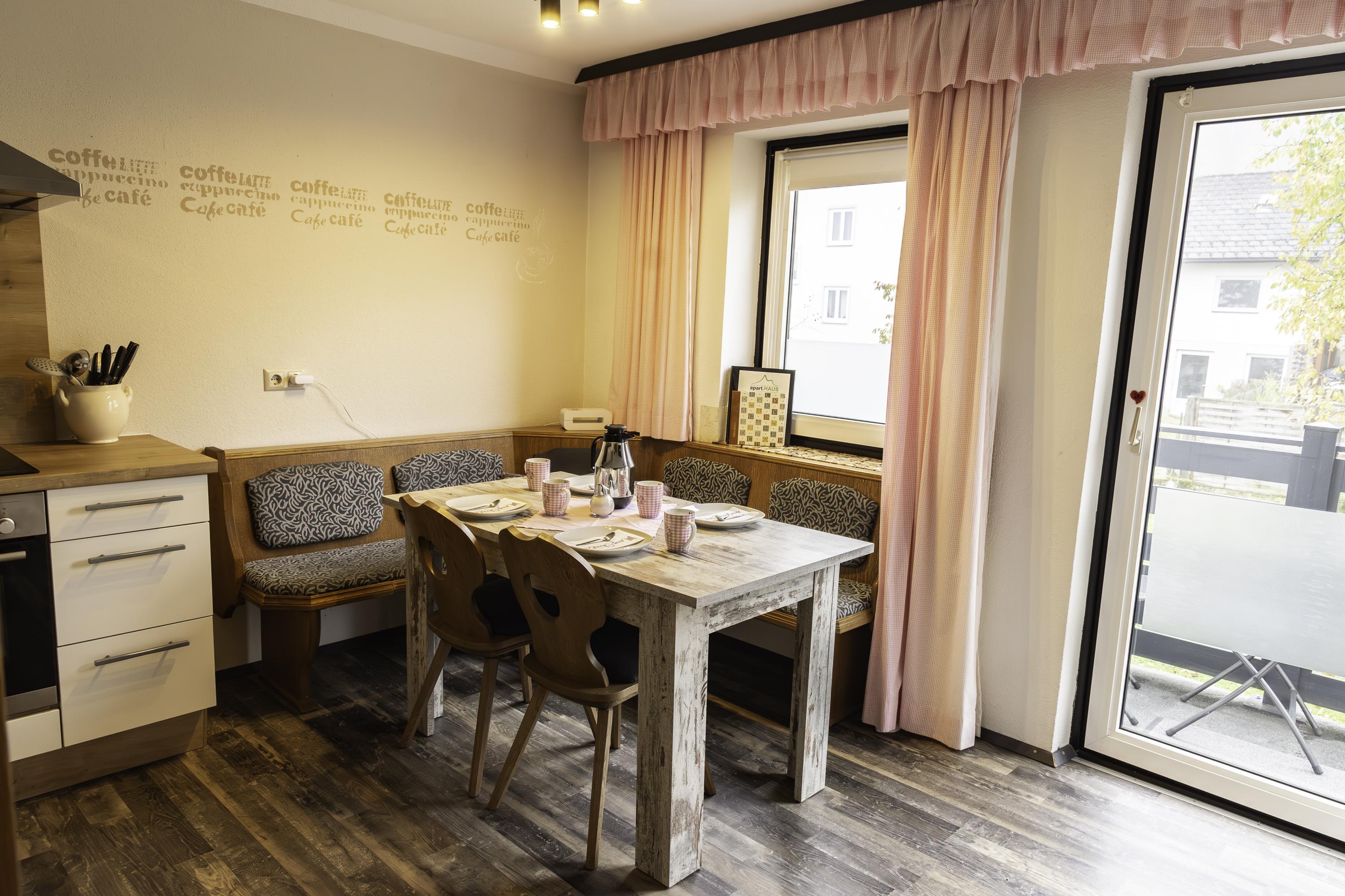 Der kleine Balkon mit Sitzgelegenheit, erreichbar über die Küche, bietet einen Blick in unseren schönen Garten, der jederzeit zum grillen, relaxen, genießen... genutzt werden kann.