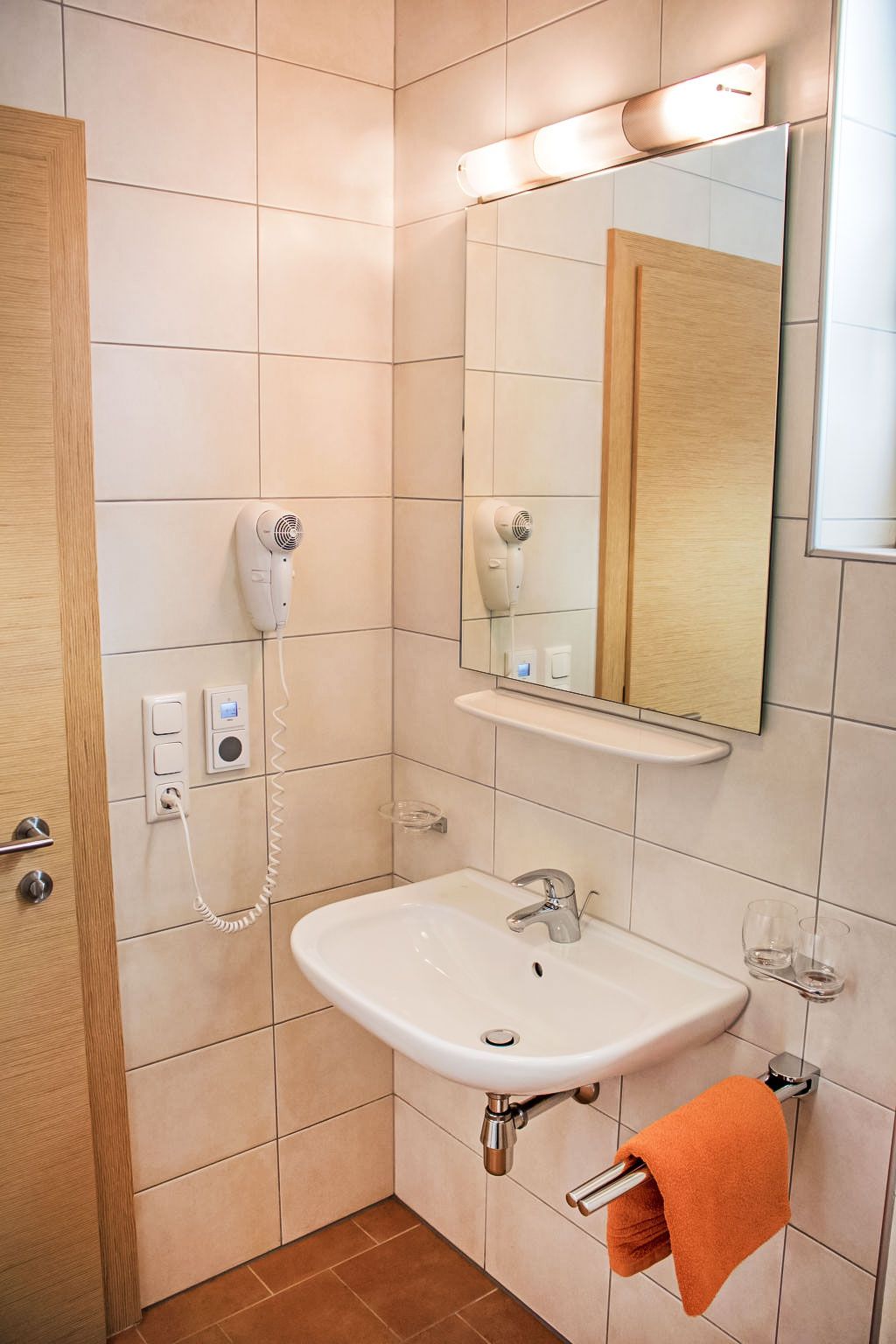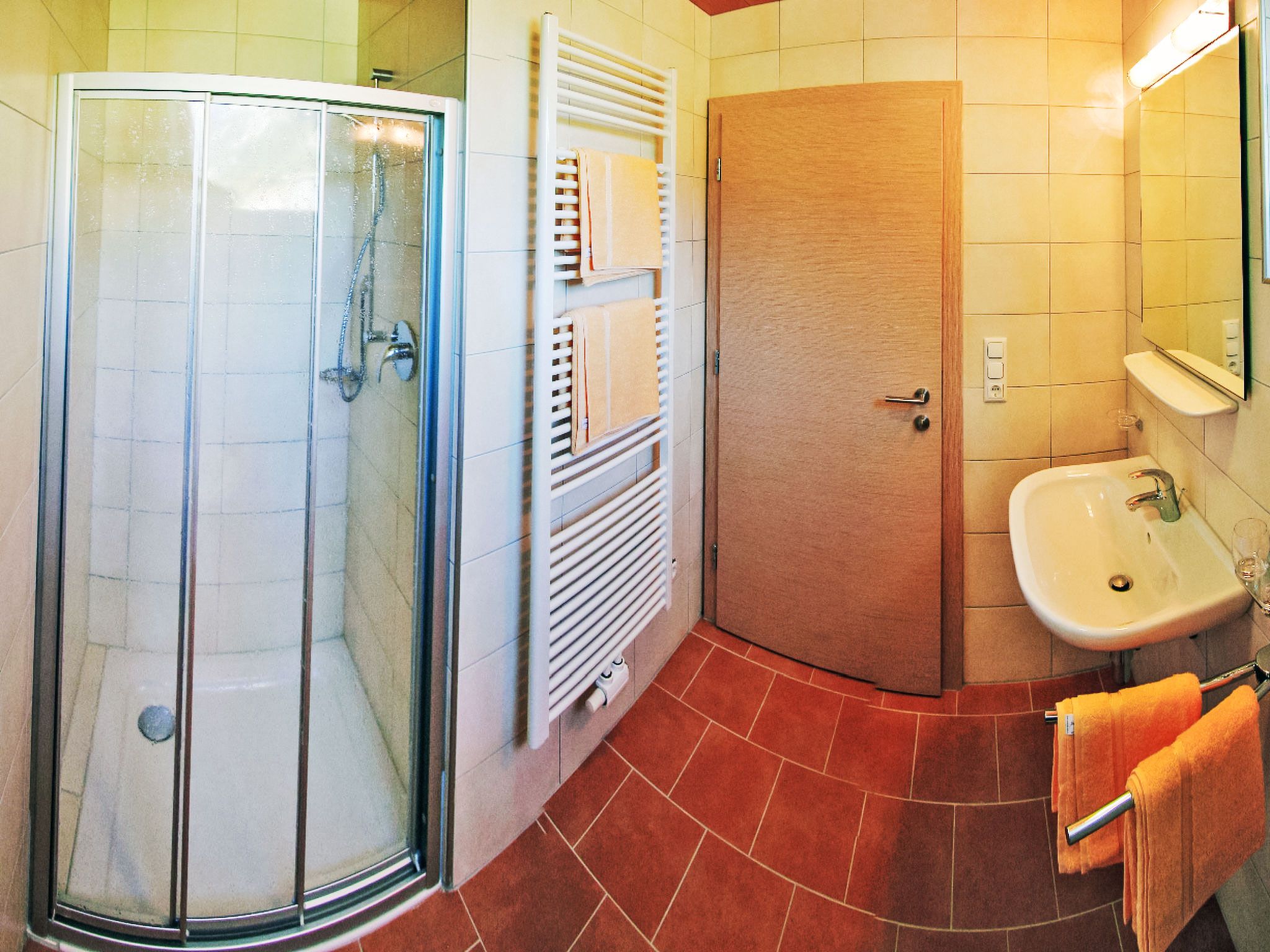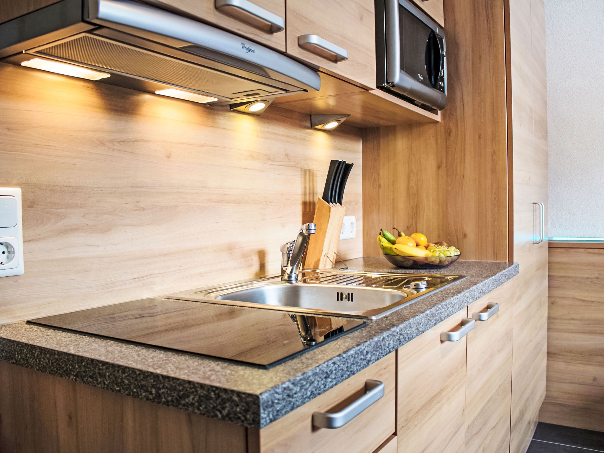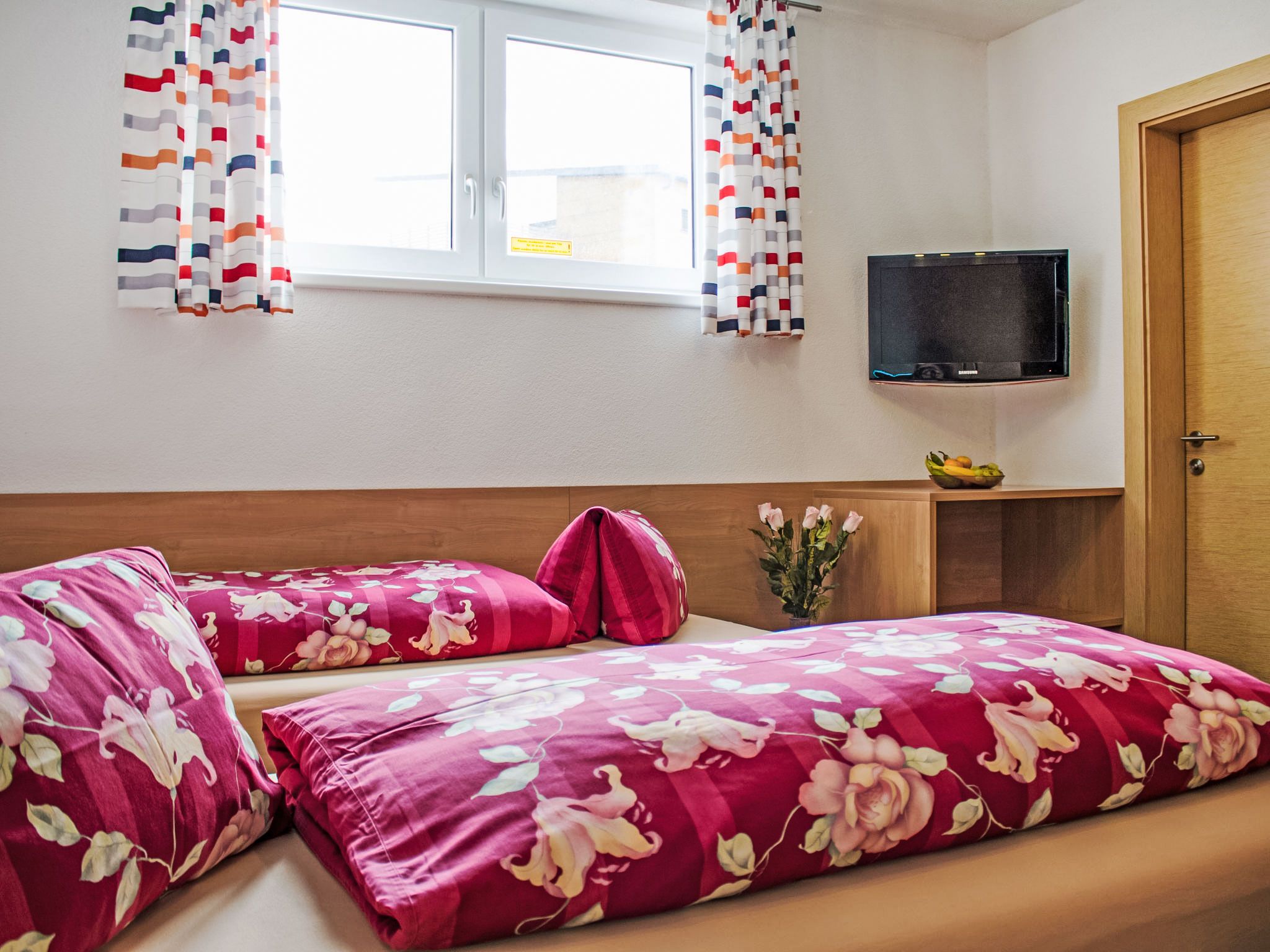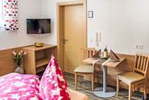 1-Zimmer-Wohnung 20 m2, unteres Geschoss. Gemütlich eingerichtet: Wohn-/Schlafzimmer mit 1 Doppelbett, Esstisch und Kabel-TV (Flachbildschirm). Kochnische (2 Glaskeramikplatten, Toaster, Wasserkocher, Mikrowelle, elektrische Kaffeemaschine). Dusche/WC. Zur Verfügung: Internet (Wireless LAN, gratis). Parkplatz (1 Auto) beim Haus. Bitte beachten: Nichtraucher-Unterkunft. Boxspringbett auch zum Auseinanderschieben in 2 Einzelbetten.