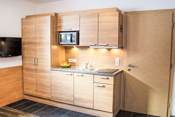 1-Zimmer-Wohnung 20 m2, unteres Geschoss. Gemütlich eingerichtet: Wohn-/Schlafzimmer mit 1 Doppelbett, Esstisch und Kabel-TV (Flachbildschirm). Kochnische (2 Glaskeramikplatten, Toaster, Wasserkocher, Mikrowelle, elektrische Kaffeemaschine). Dusche/WC. Zur Verfügung: Internet (Wireless LAN, gratis). Parkplatz (1 Auto) beim Haus. Bitte beachten: Nichtraucher-Unterkunft. Aus dem Doppelbett können auch 2 Einzelbetten gemacht werden.
