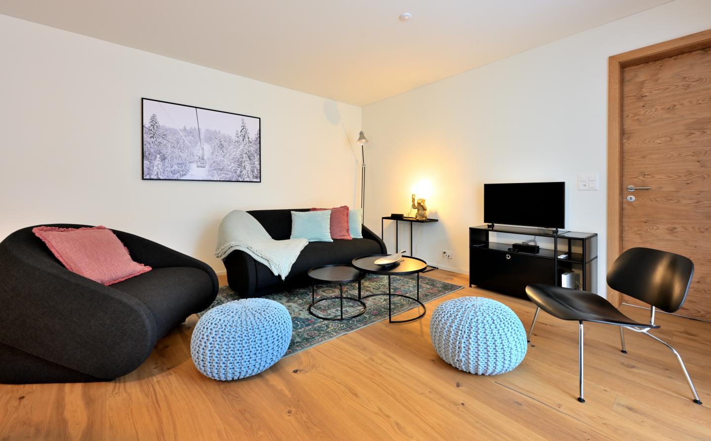 In unserer gemütlichen 2.5 Zimmer-Wohnung Marmotta werden Sie sich sofort wohlfühlen. Sie liegt in der neuen Waldheimüberbauung, etwas unterhalb vom Zentrum – dadurch ist alles zu Fuss erreichbar und trotzdem haben Sie Ihre Ruhe. Die 48m² sind luxuriös und mit viel Liebe zum Detail eingerichtet. Ein besonderes Highlight ist das stilvolle Badezimmer. Zum Entspannen gibt es auch einen eigenen Aussenbereich.