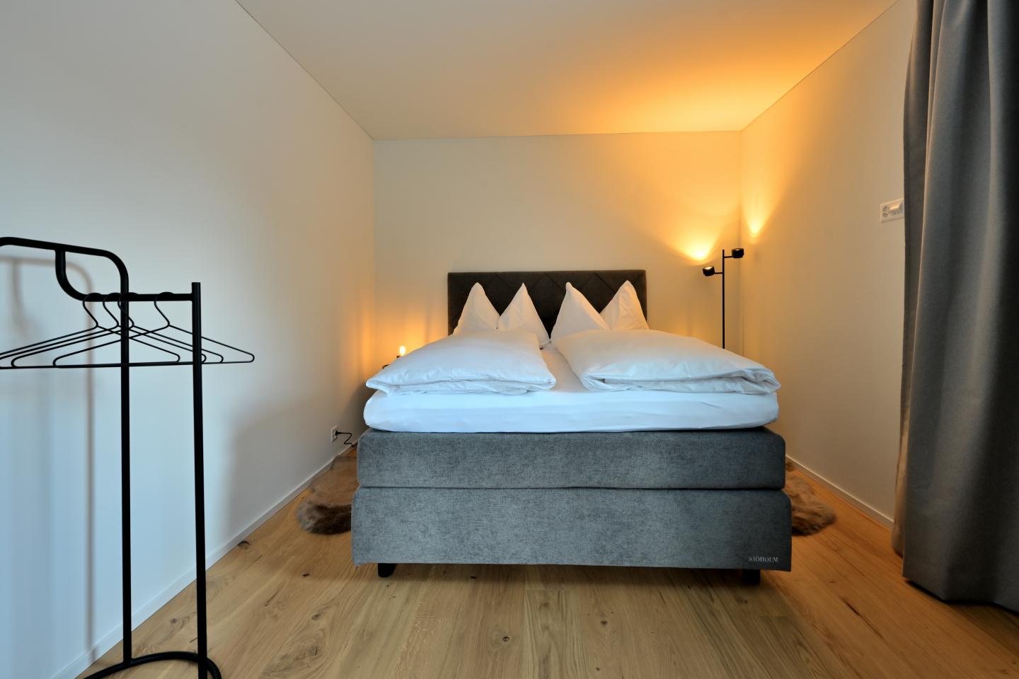 Im Schlafzimmer wartet ein bequemes Doppelbett (160x200cm) auf Sie, und auch das Schlafsofa im Wohnzimmer ist mit seiner gleichgroßen Matratze ein vollwertiger Schlafplatz – ideal, wenn Sie mit Kindern anreisen. Die Küche ist mit allem ausgestattet, was das Herz begehrt, und besonders praktisch ist der eigene Waschturm mit Waschmaschine und Tumbler direkt in der Wohnung. An sonnigen Tagen werden Sie den eigenen Außenbereich lieben – hier können Sie in aller Ruhe die Sonne genießen. Und wenn Sie etwas unternehmen möchten? Ein kurzer Spaziergang, und Sie sind mitten im Zentrum.