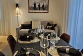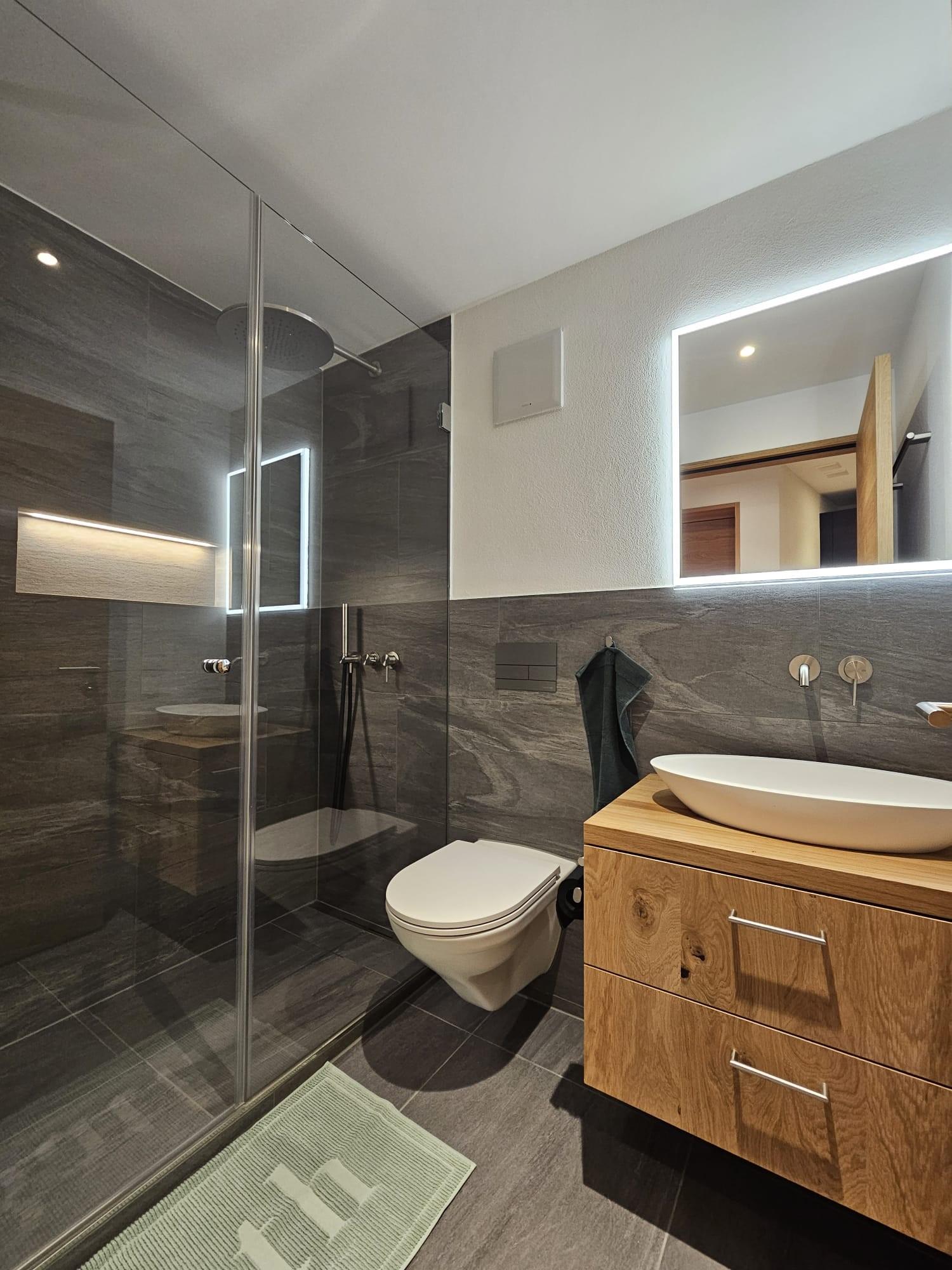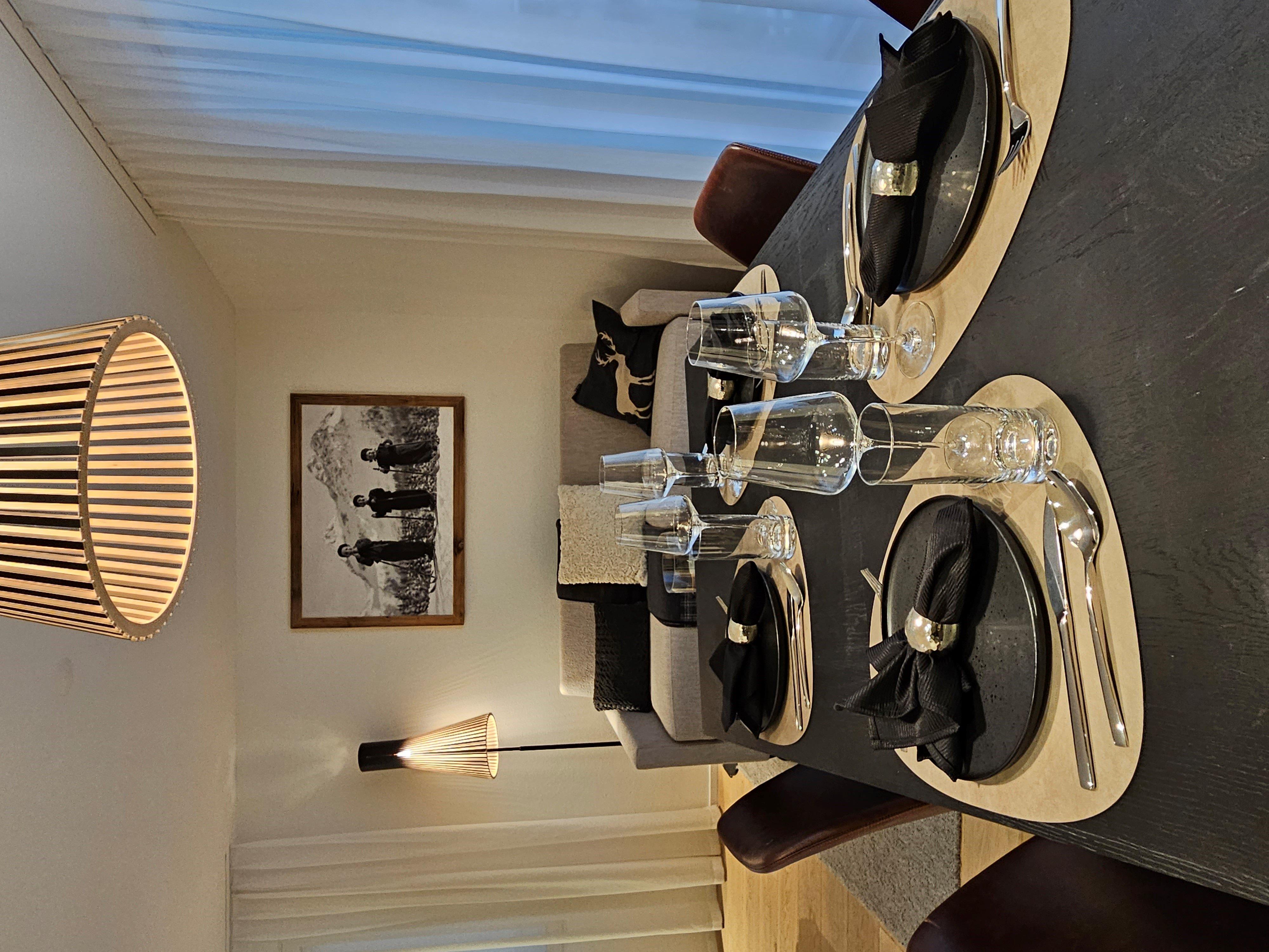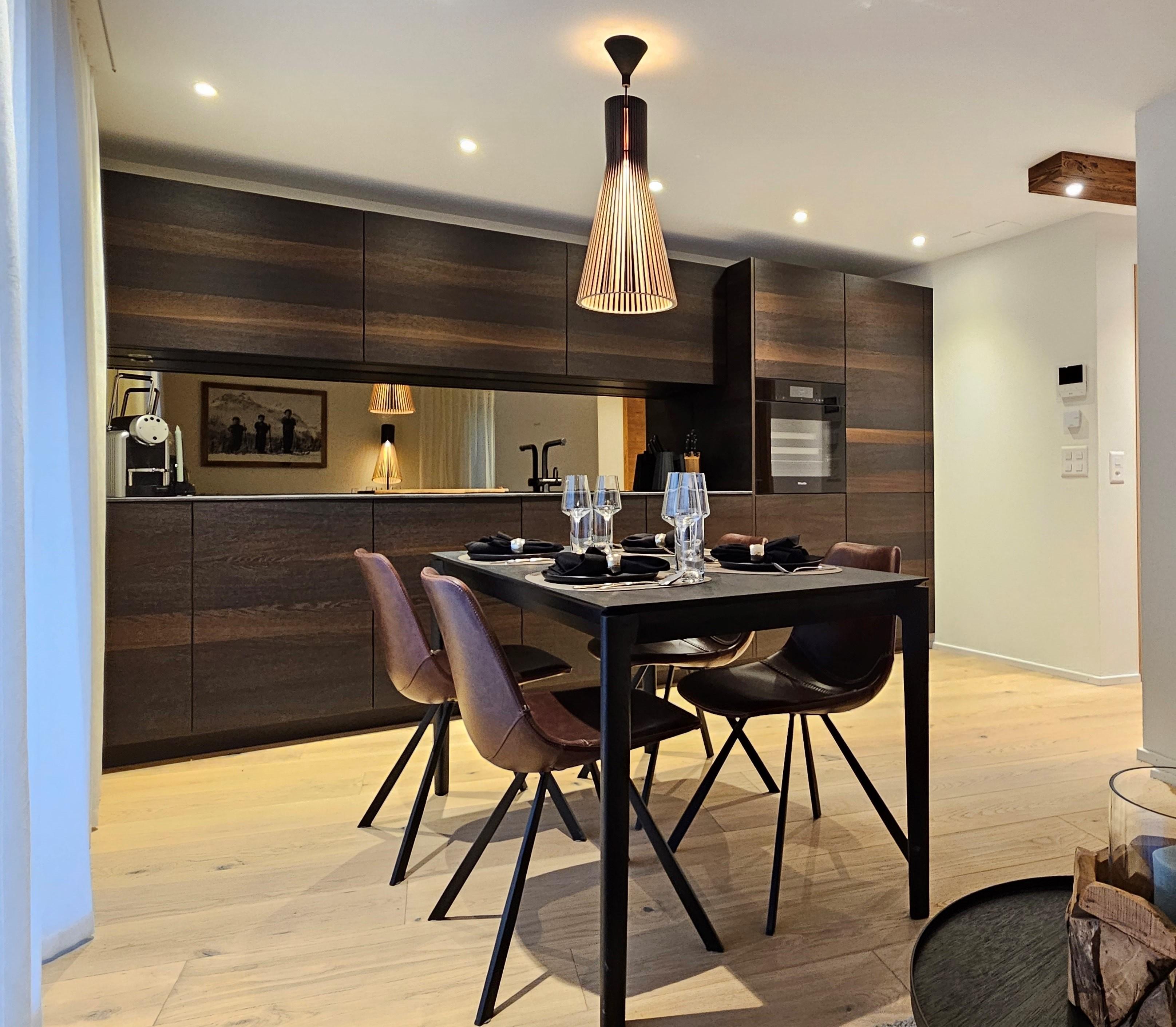 • Offene, voll ausgestattete Küche (Basis-Küchenutensilien, Kombi-Backofen und Steamer, Fondue und Raclette Set, Geschirrspüler, Induktionsherd, Kühlschrank und Gefrierschrank separat, Nespresso-Kaffeemaschine mit Starter-Kapselset Nespresso Pro flach, Wasserkocher)