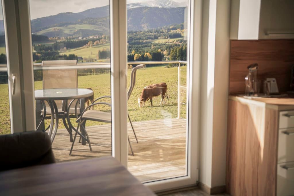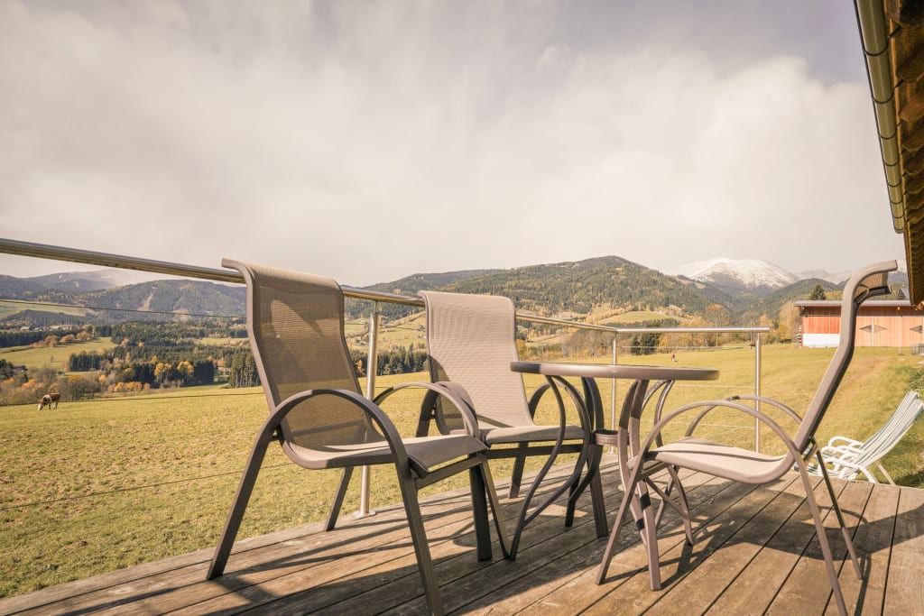 Besonders schön ist der Balkon, von dem aus Sie die herrliche Bergkulisse genießen können – beim Frühstück in der Morgensonne oder beim stillen Beobachten des Sonnenuntergangs.
