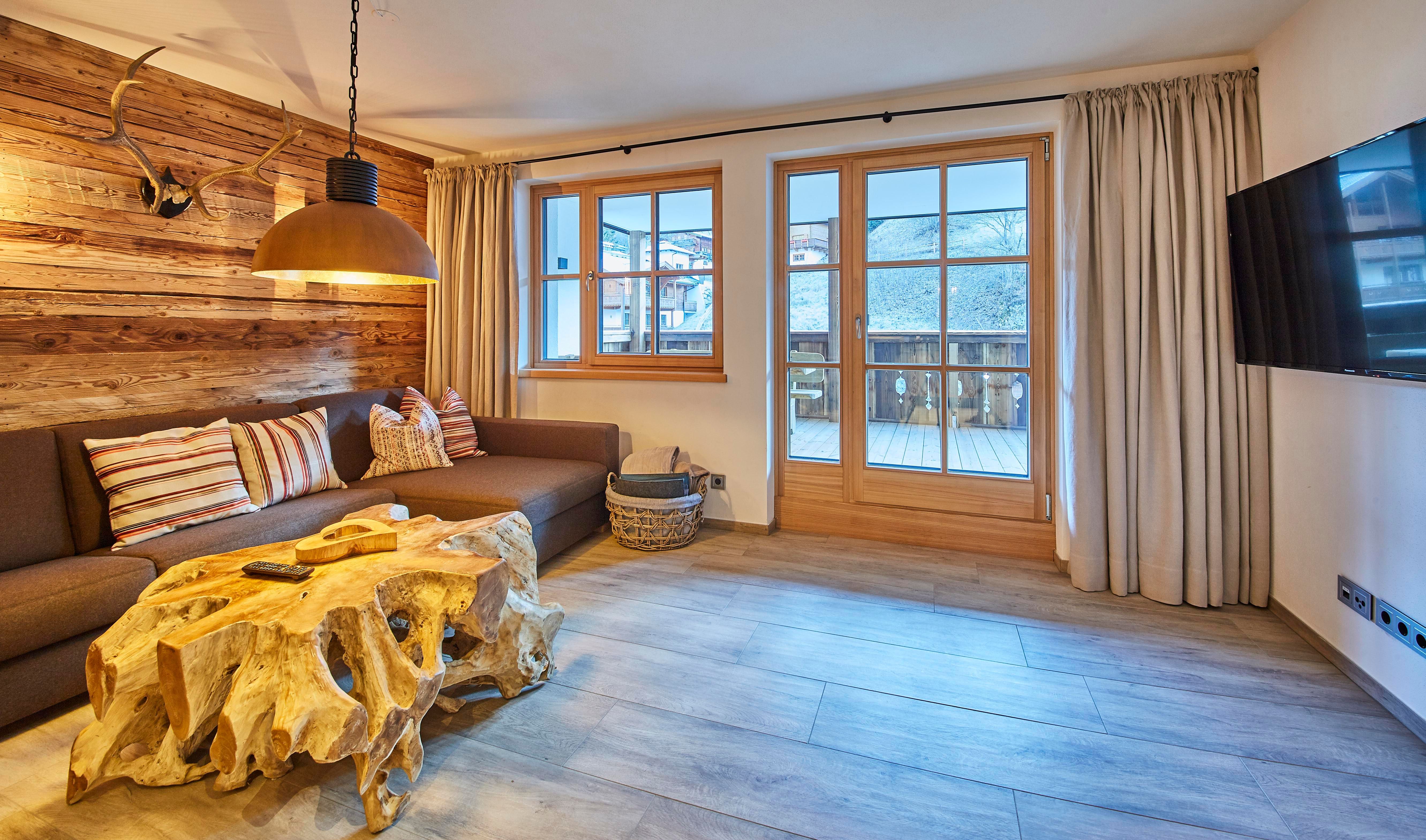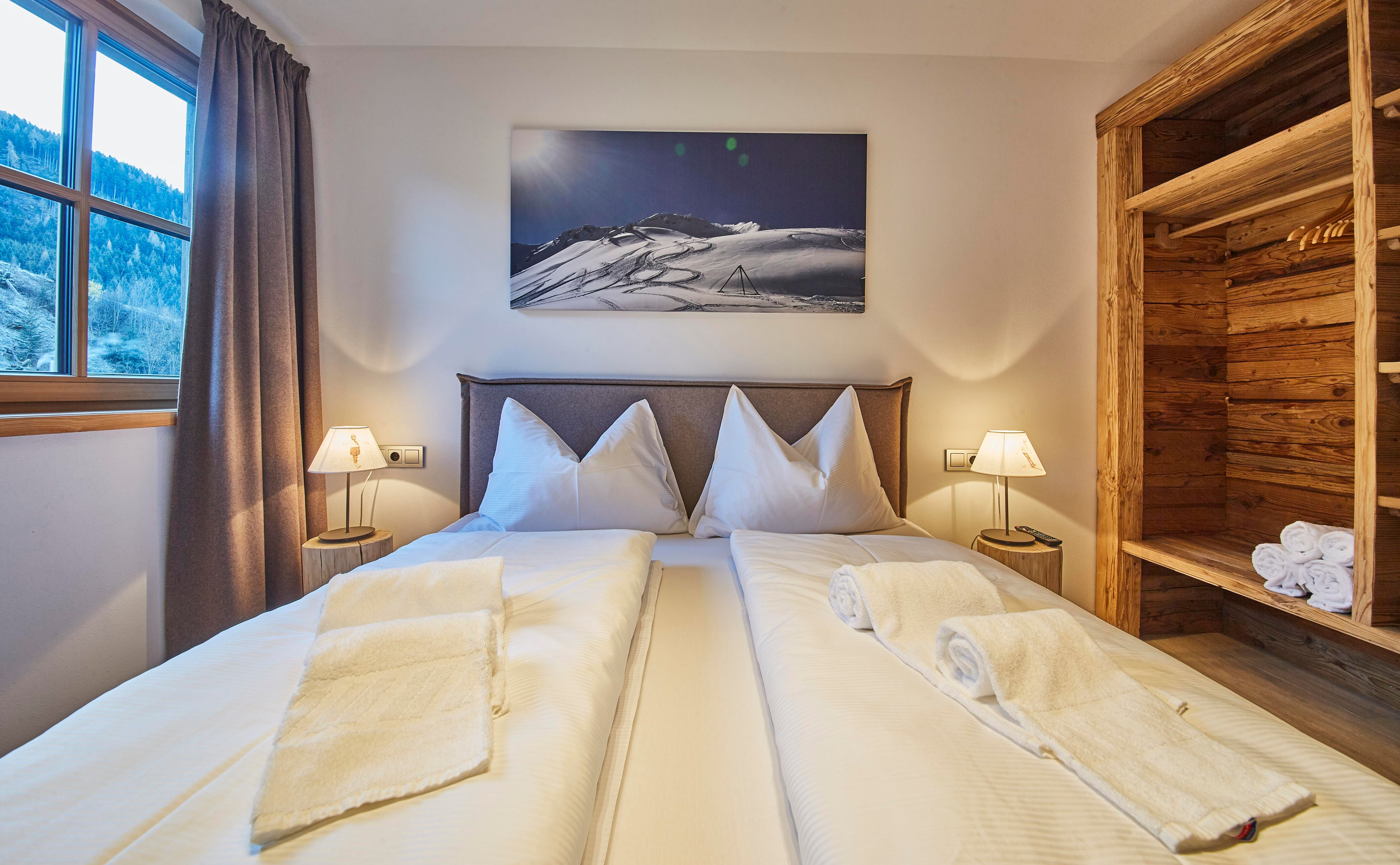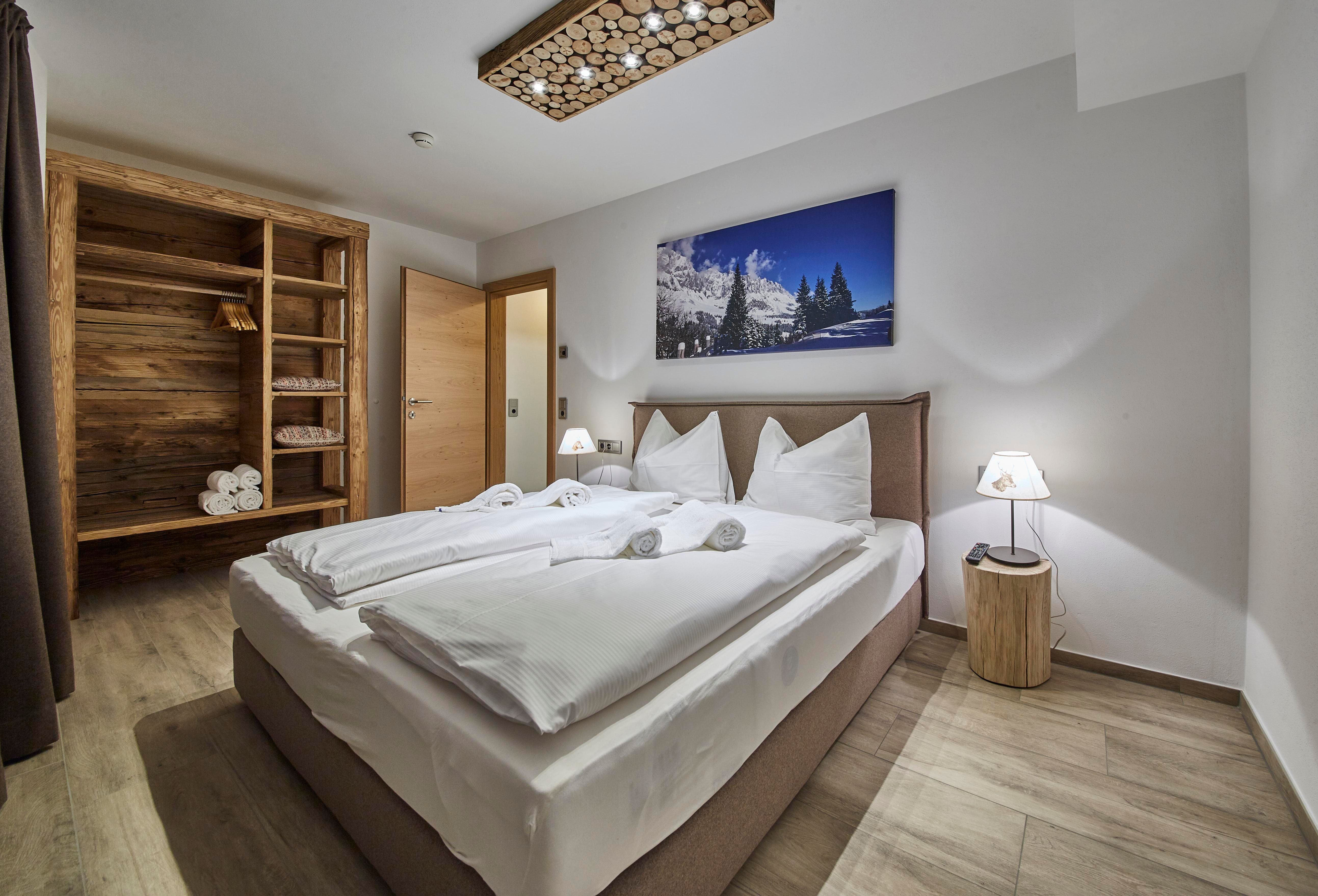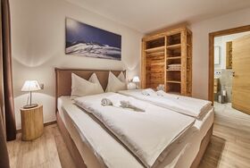 Willkommen im Premium Apartment Peak 3 mit Platz für bis zu 4 Personen! Auf 80 m² erwarten Sie 2 Schlafzimmer mit Doppelbetten und Smart-TVs sowie 2 moderne en-suite Badezimmer mit Regendusche, WC und privater Sauna. Der Wohnbereich begeistert mit einem großen Smart-TV, einer voll ausgestattete Küche mit Granit-Arbeitsplatte und Miele Geräten. Genießen Sie Blick auf das Hochkönigmassiv und die romantische Kirche vom Balkon.