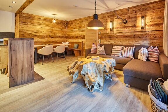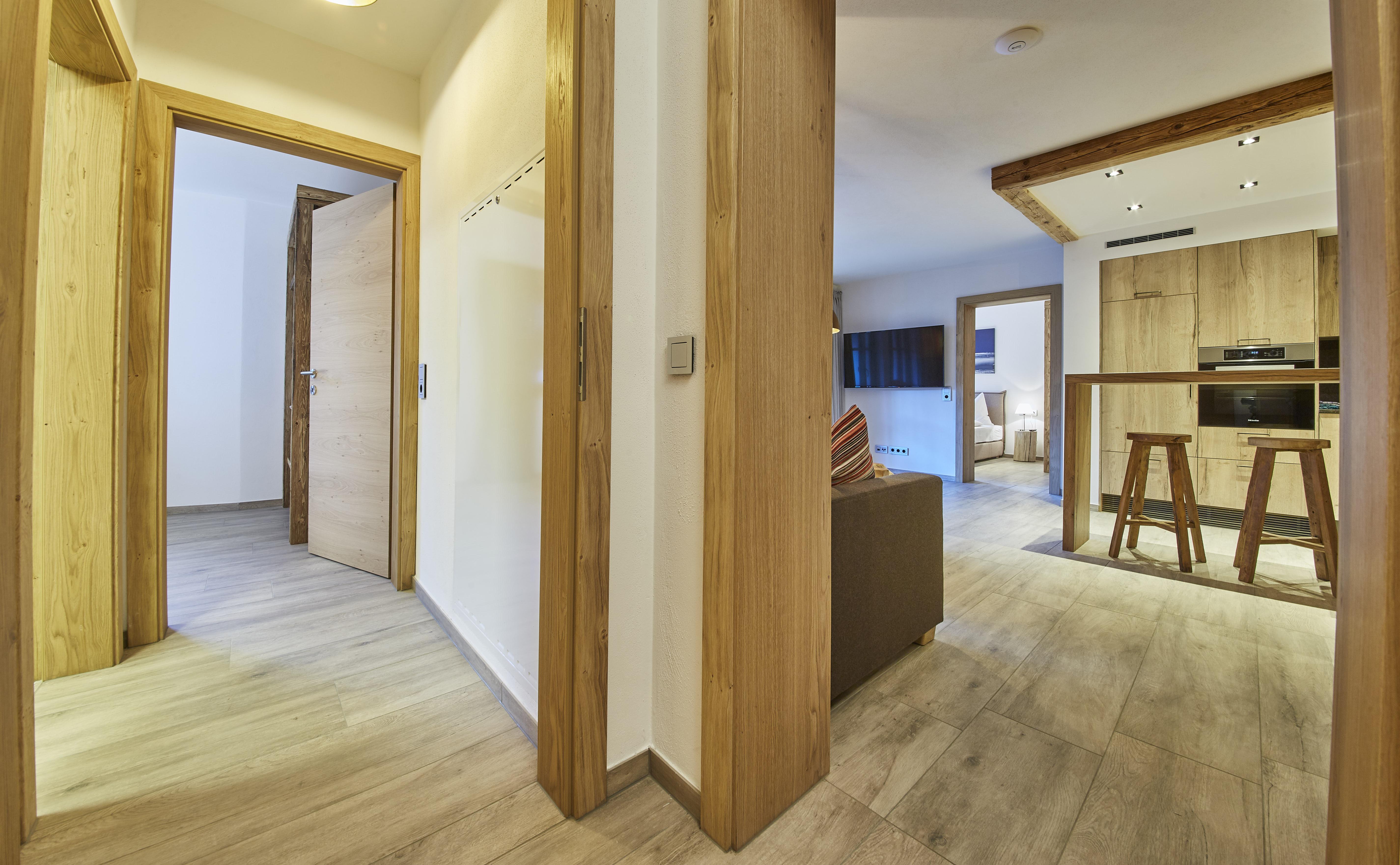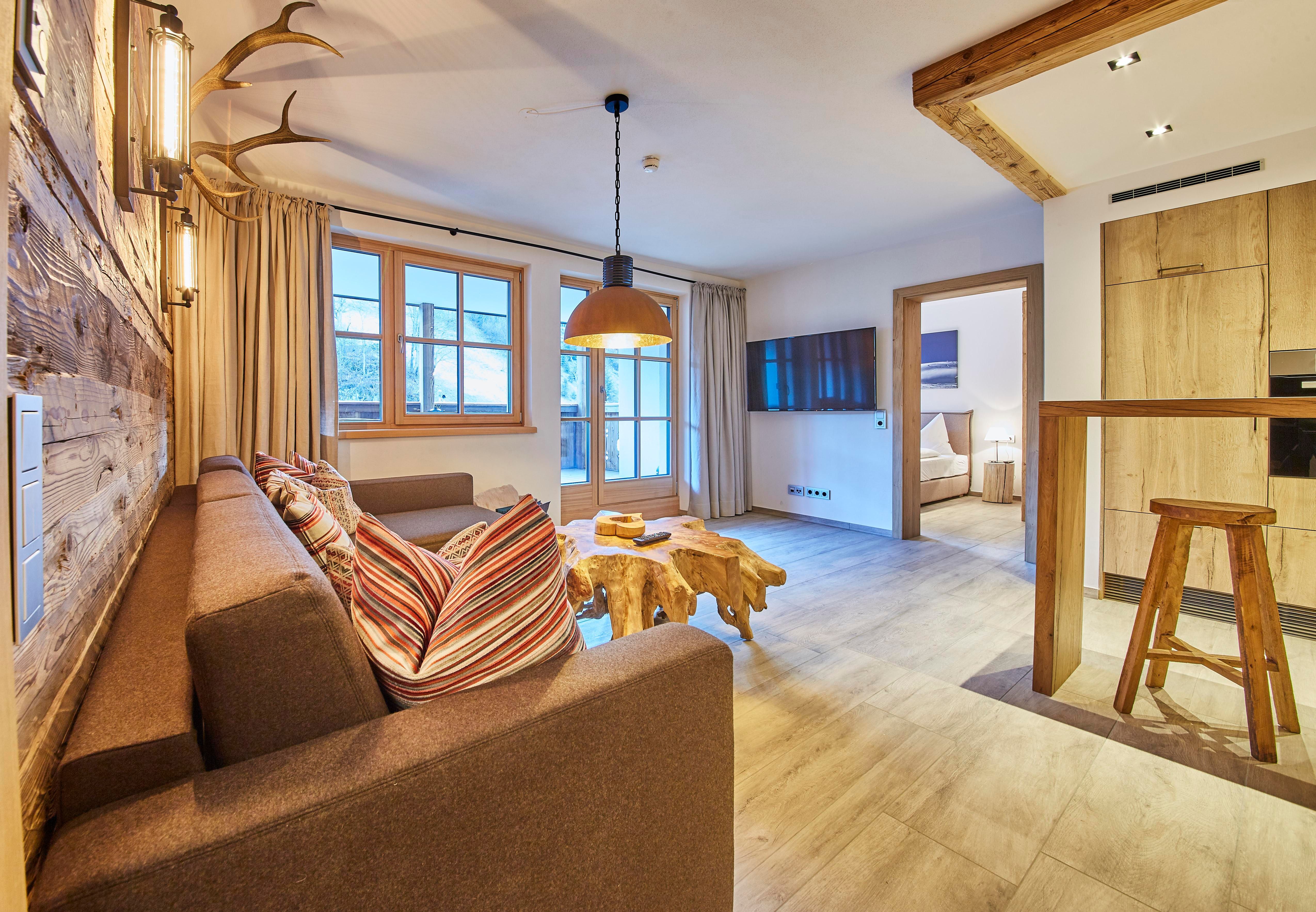 Willkommen im Premium Apartment Peak 3 mit Platz für bis zu 4 Personen! Auf 80 m² erwarten Sie 2 Schlafzimmer mit Doppelbetten und Smart-TVs sowie 2 moderne en-suite Badezimmer mit Regendusche, WC und privater Sauna. Der Wohnbereich begeistert mit einem großen Smart-TV, einer voll ausgestattete Küche mit Granit-Arbeitsplatte und Miele Geräten. Genießen Sie Blick auf das Hochkönigmassiv und die romantische Kirche vom Balkon.