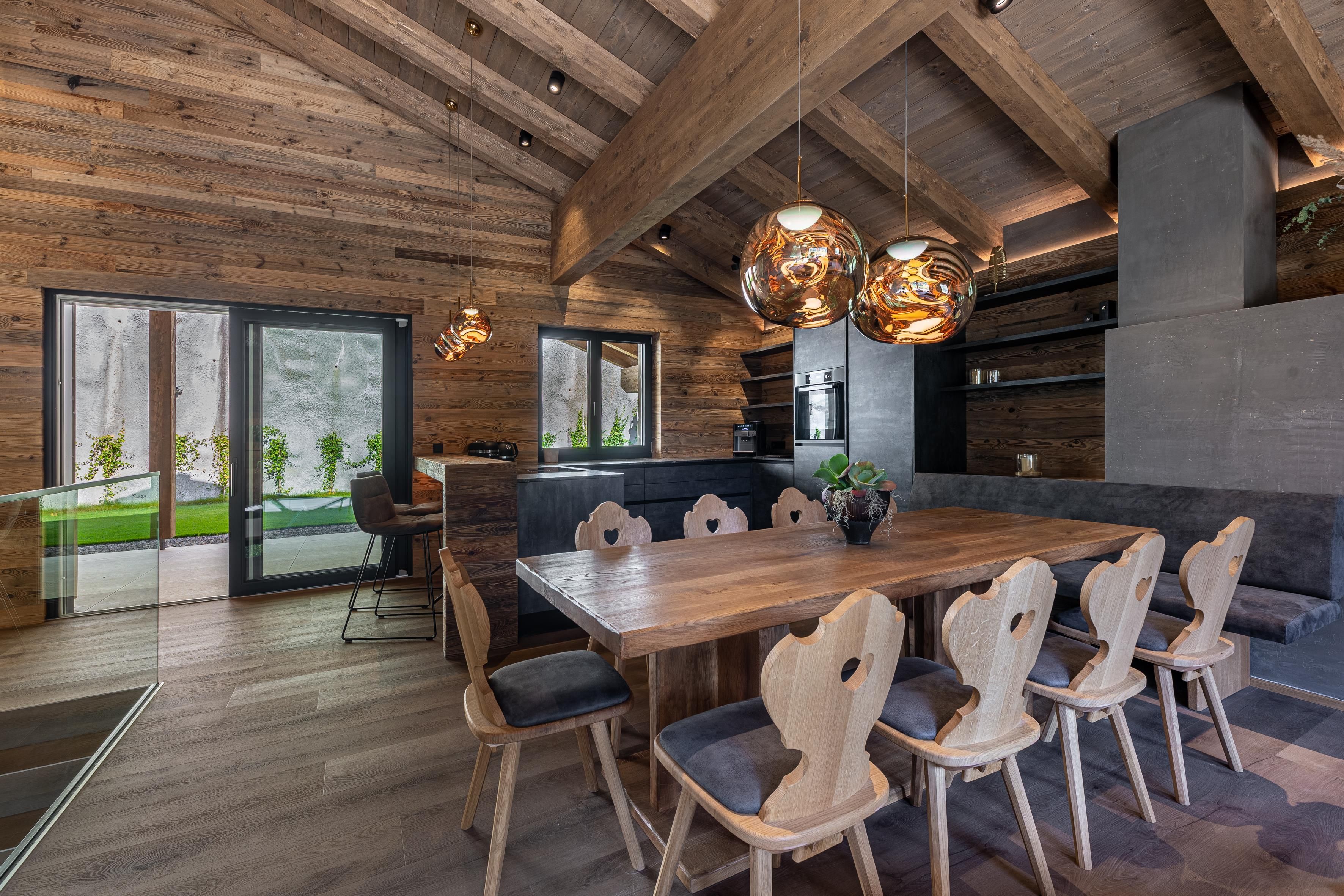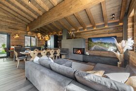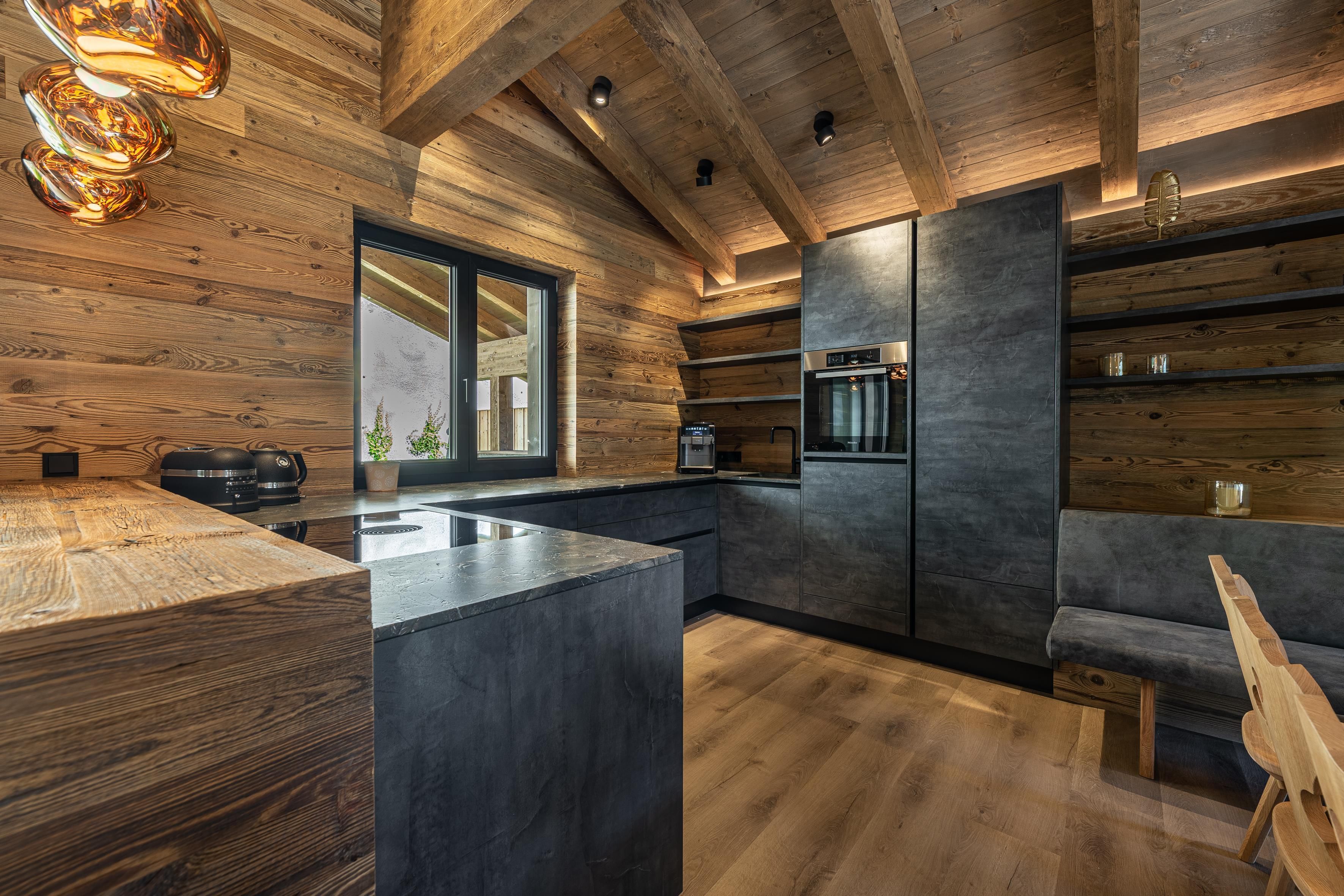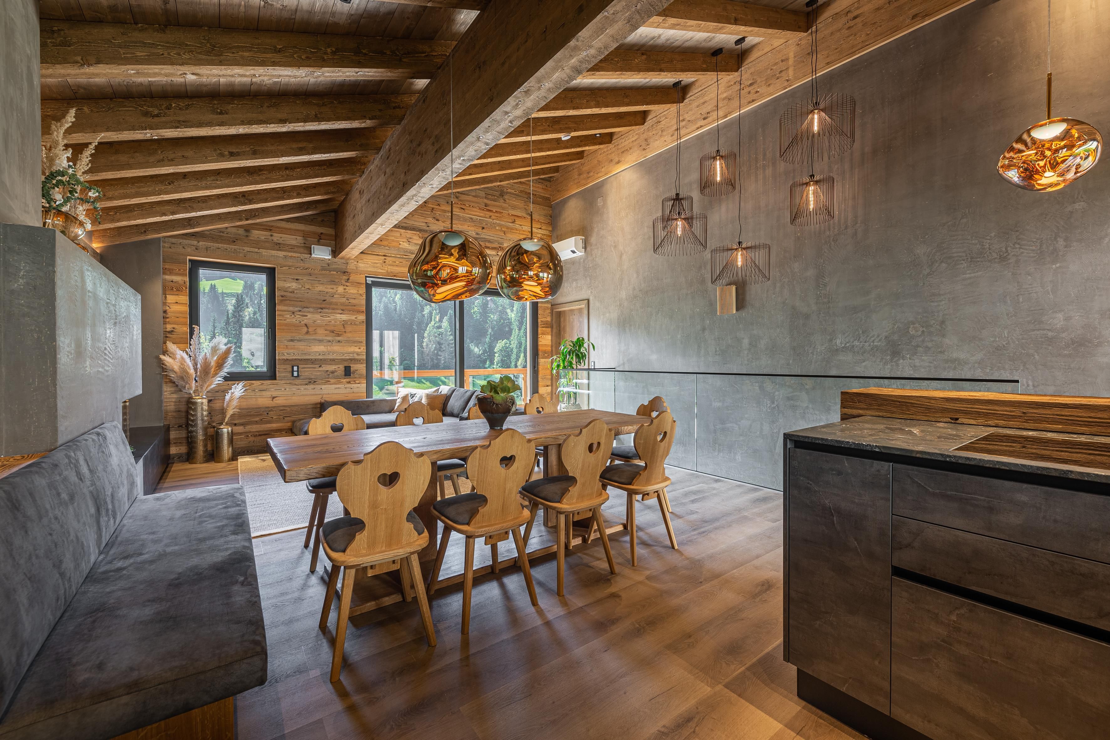 Willkommen im Kellnergut Chalet FRIEDA. Dieses exklusive Privatchalet mit 270 m² Wohnfläche bietet Platz für bis zu 12 Personen in 4 Schlafzimmern mit eigenen Bädern. Entspannen Sie im privaten Relax-Garten mit Panorama Sauna. Die alpin-moderne Einrichtung mit Sichtdachstuhl, der gemütliche Wohnbereich mit Kamin und Panorama-Fenster sowie die hochwertig ausgestattete Küche lassen keine Wünsche offen.