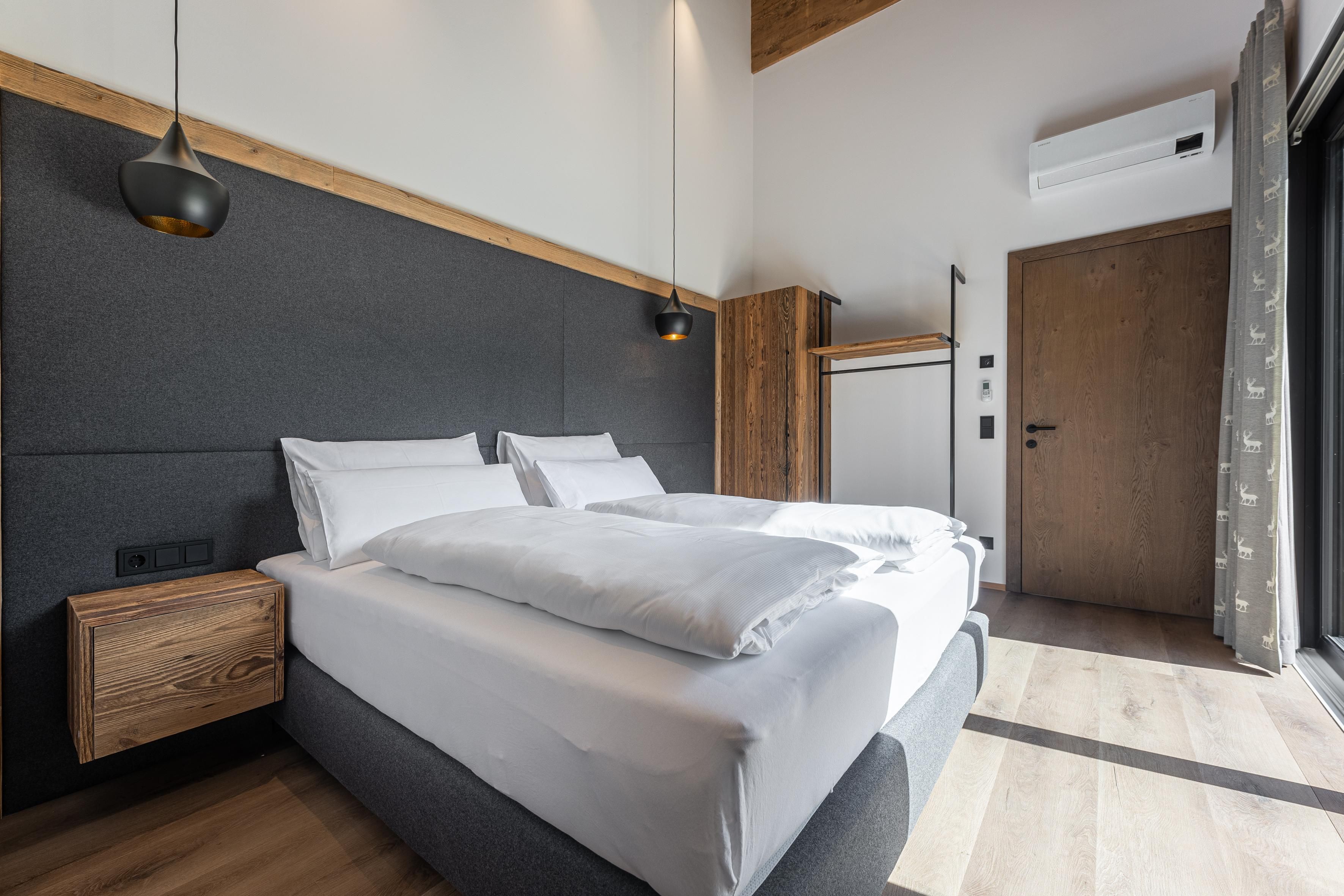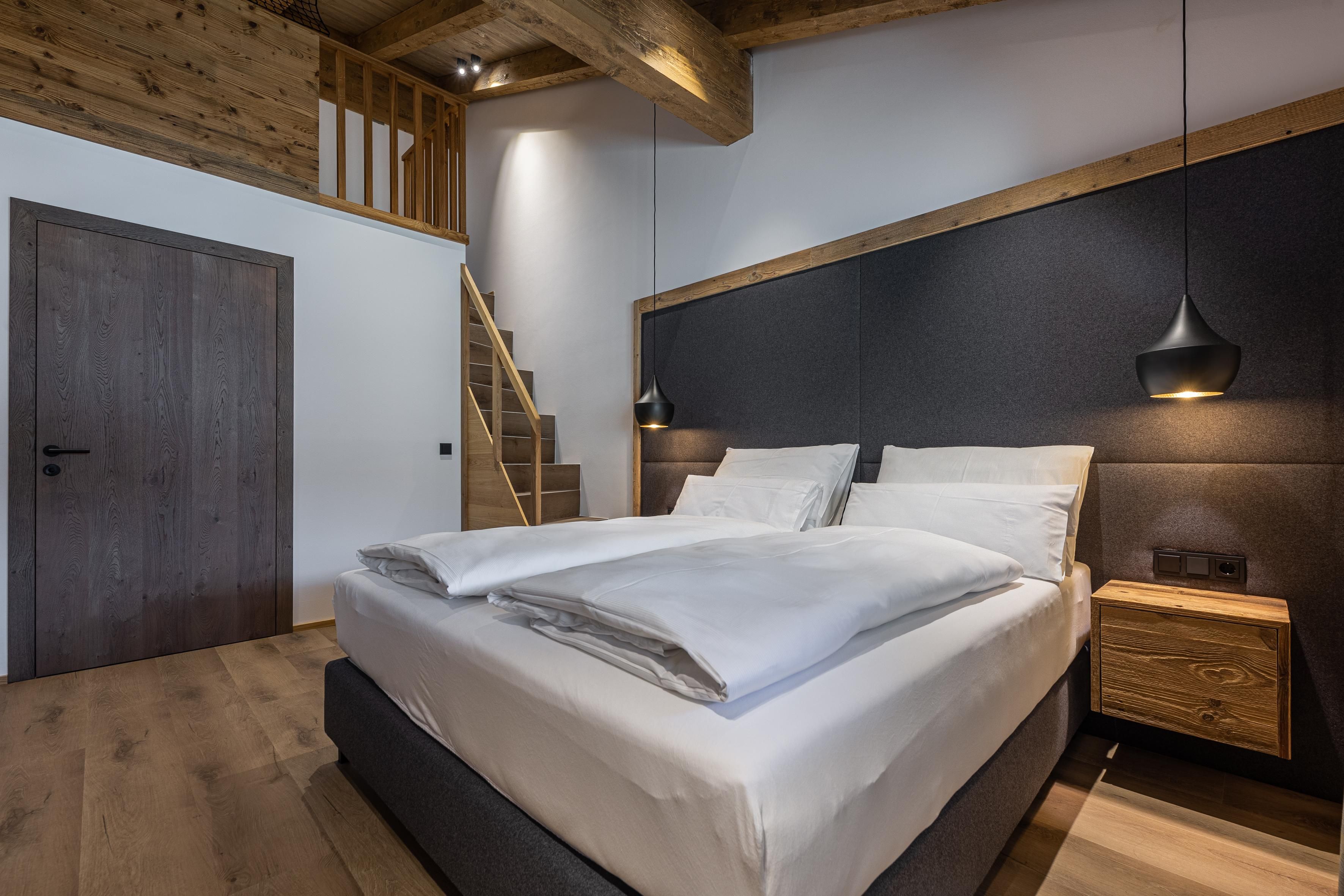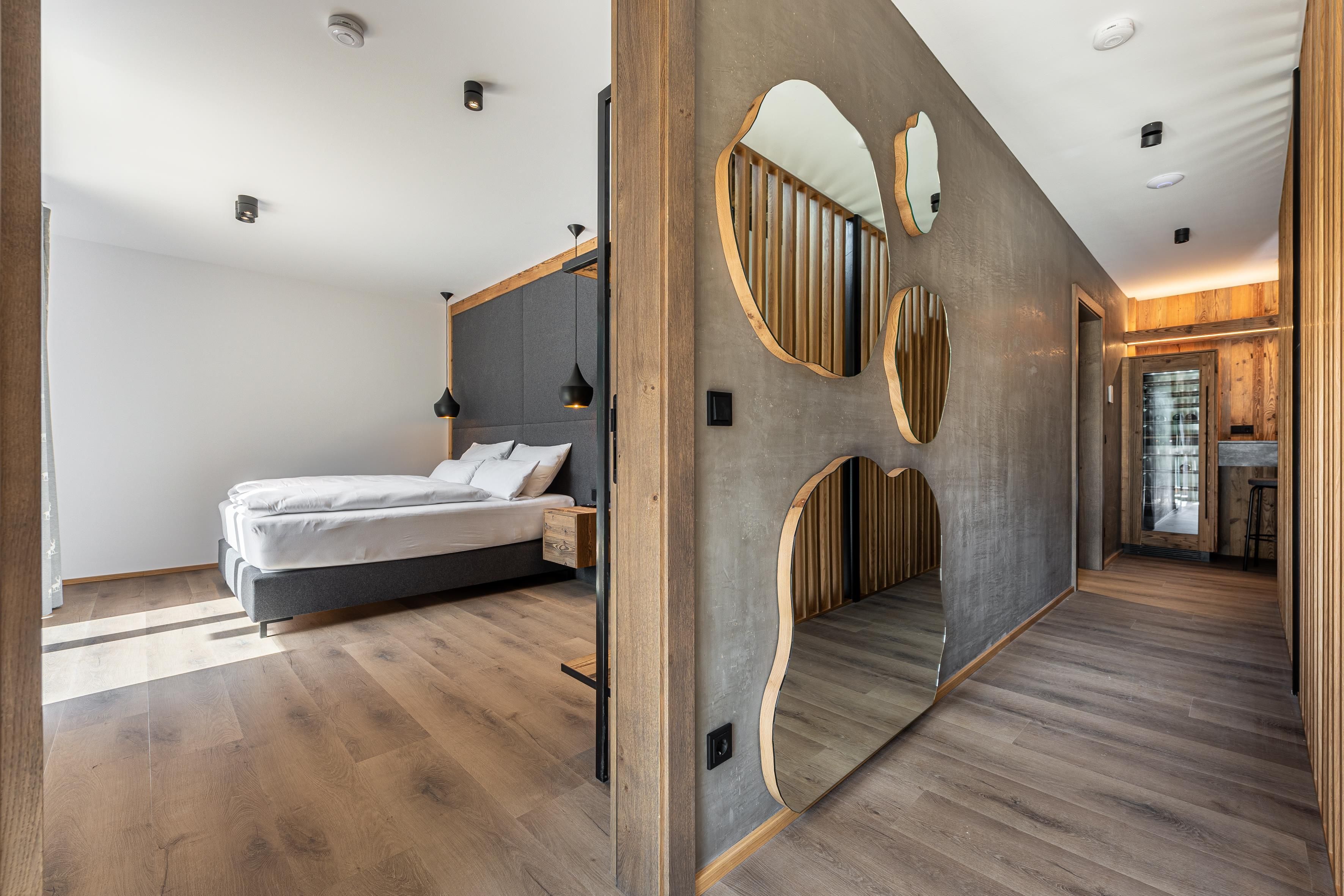Die Chalets FRITZ und FRIEDA bestechen durch eine alpin-moderne Einrichtung, gemütliche Wohnbereiche mit Kamin und Panorama-Fenster sowie voll ausgestattete Küchen. Während das Chalet FRITZ mit 310 m² Wohnfläche 5 Schlafzimmer mit eigenen Bädern bietet, verfügt das Chalet FRIEDA auf 270 m² über 4 Schlafzimmer, ebenfalls mit privaten Bädern. Beide Chalets laden mit privaten Wellnessbereichen zum Entspannen ein: Im Chalet FRITZ erwartet Sie eine Sauna mit Relax-Ruheraum und eine großzügige Sonnenterrasse mit Talblick. Das Chalet FRIEDA bietet einen Relax-Garten mit Panorama-Sauna.
