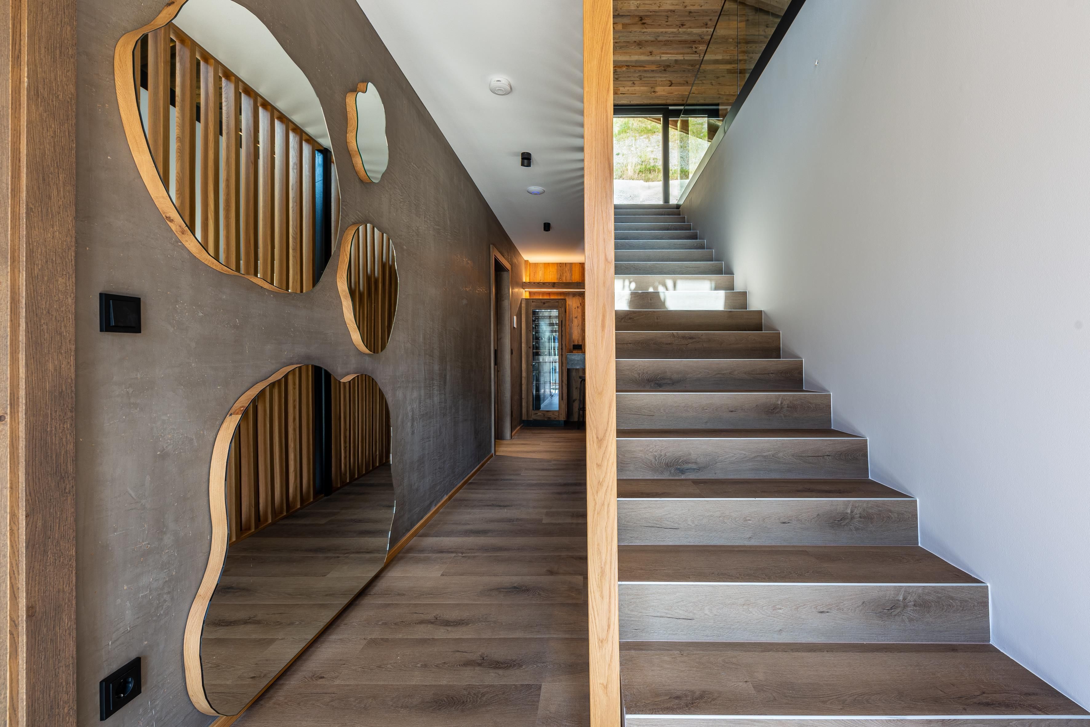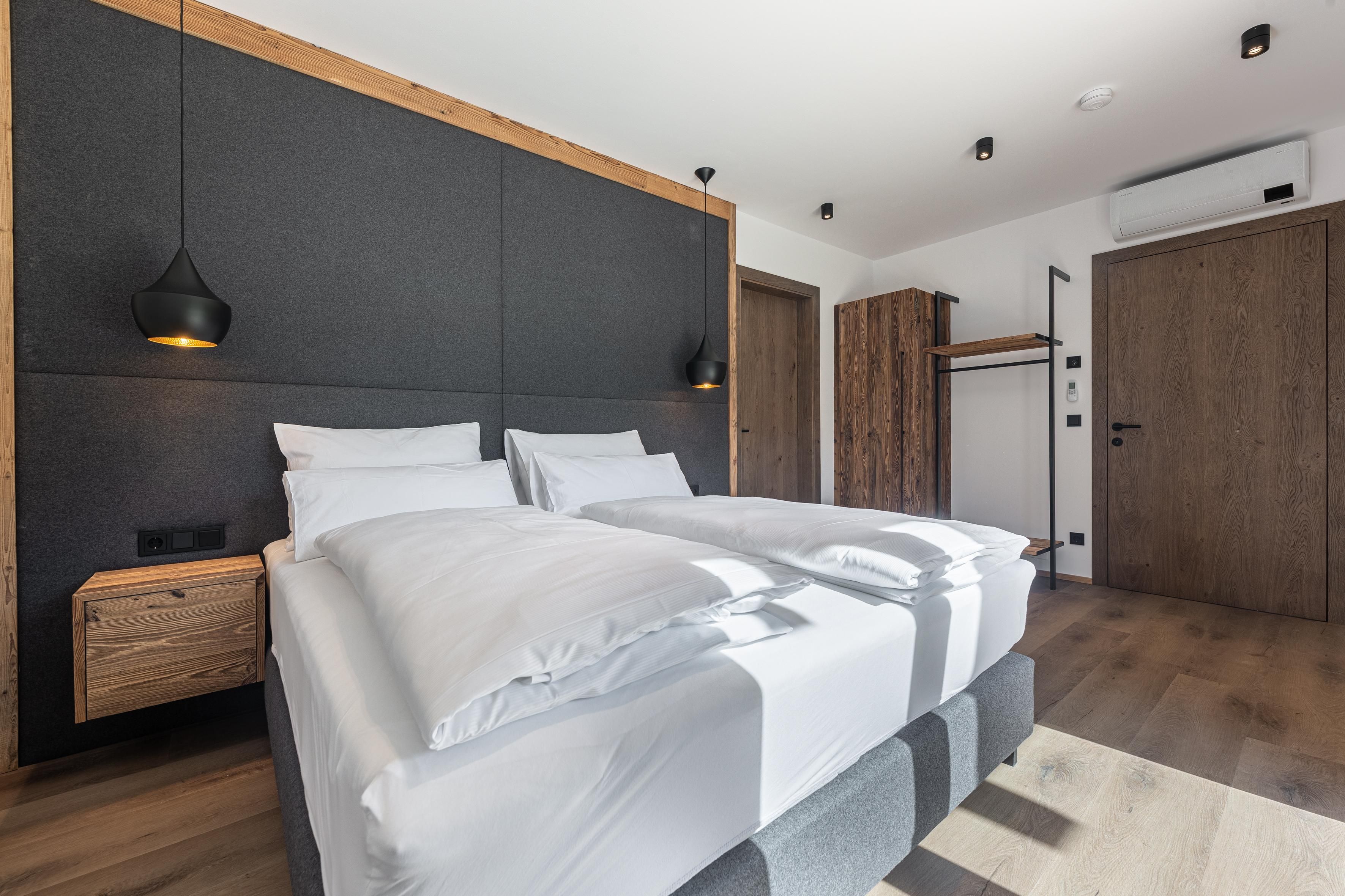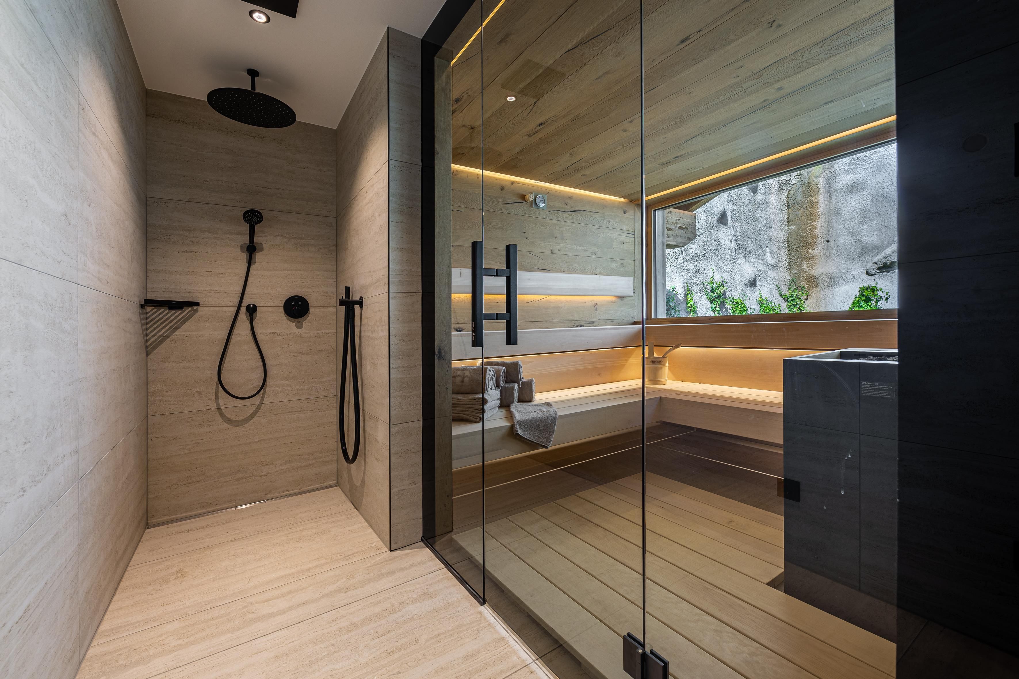 Die Chalets FRITZ und FRIEDA bestechen durch eine alpin-moderne Einrichtung, gemütliche Wohnbereiche mit Kamin und Panorama-Fenster sowie voll ausgestattete Küchen. Während das Chalet FRITZ mit 310 m² Wohnfläche 5 Schlafzimmer mit eigenen Bädern bietet, verfügt das Chalet FRIEDA auf 270 m² über 4 Schlafzimmer, ebenfalls mit privaten Bädern. Beide Chalets laden mit privaten Wellnessbereichen zum Entspannen ein: Im Chalet FRITZ erwartet Sie eine Sauna mit Relax-Ruheraum und eine großzügige Sonnenterrasse mit Talblick. Das Chalet FRIEDA bietet einen Relax-Garten mit Panorama-Sauna.