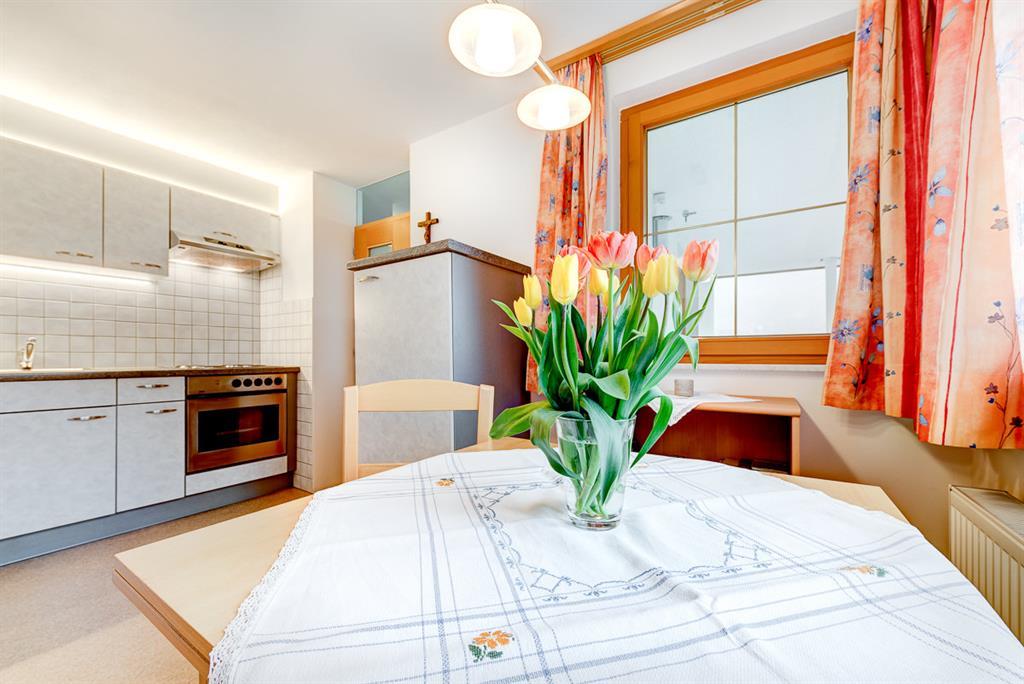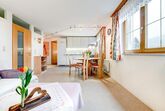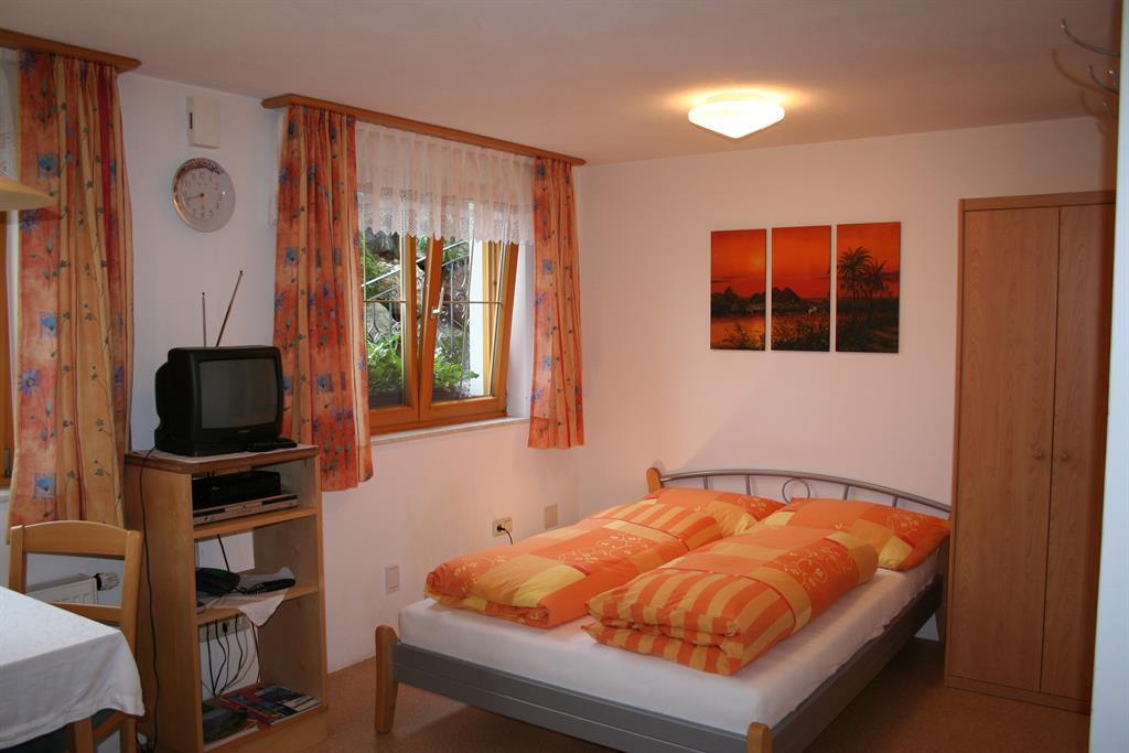 Die kleine 22m2 Wohnung für 2 Personen ist mit Küche, Ess- und Schlafbereich sowie mit einem Badezimmer ausgestattet. Die Küche bietet einen Kühlschrank, Backofen, Kaffeemaschine, Wasserkocher und einen Toaster sowie das Inventar. Das Bett mit guten Matratzen gewährt Ihnen eine gute Schlafqualität. Bettwäsche, Tischwäsche und Handtücher werden ebenfalls zur Verfügung gestellt. Auch das W-lan steht Ihnen gratis zur Verfügung. Auf der Terasse können Sie sich von der Abendsonne verwöhnen lassen. Es besteht die Möglichkeit diese Wohnung gemeinsam mit der größeren Ferienwohnung zu buchen.