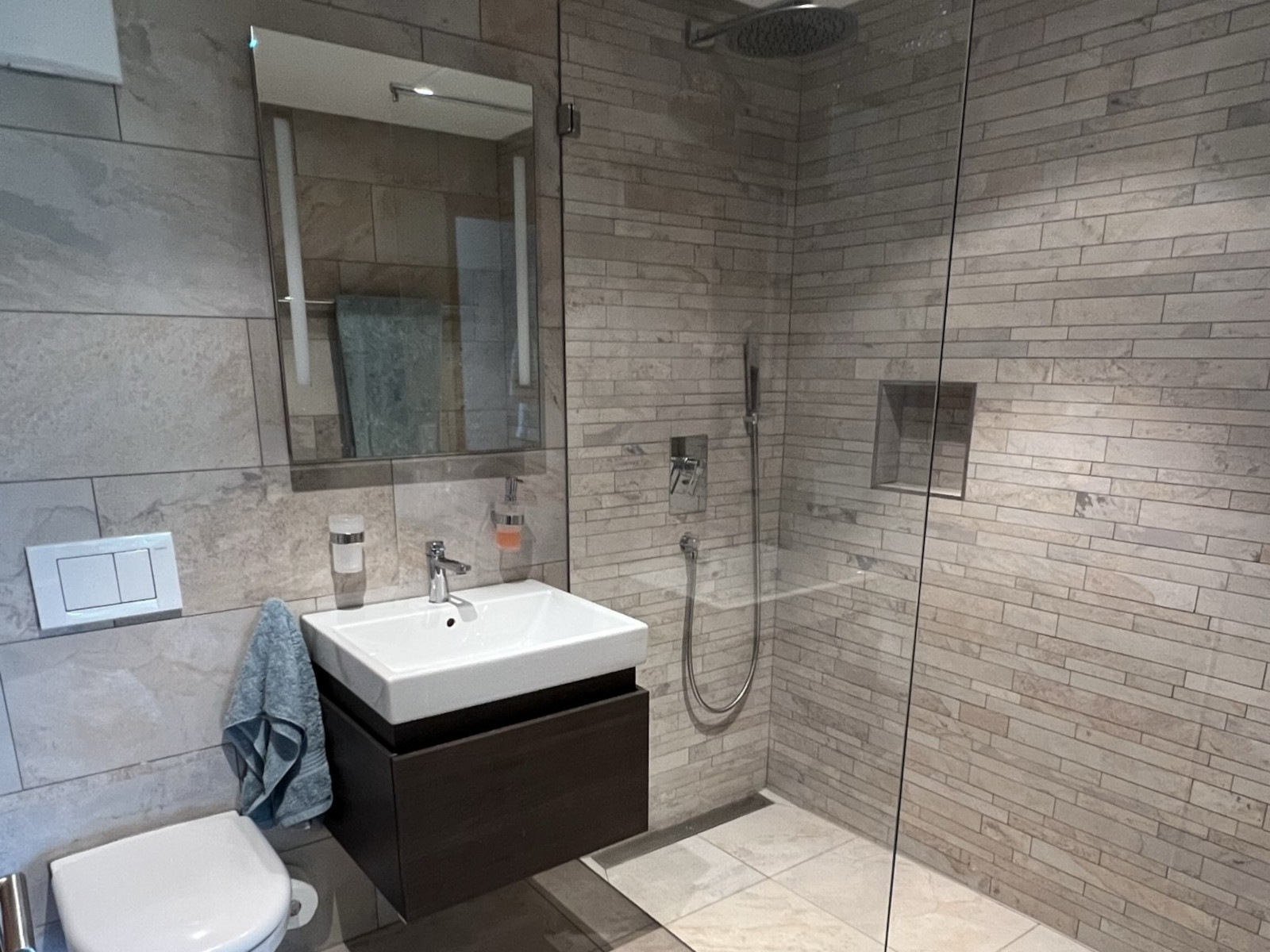 Es gibt 2 gemütliche Badezimmer, beide mit Toiletten und Waschbecken. Zusätzlich hat ein Badezimmer eine große Badewanne und Dusche, das zweite Badezimmer hat eine große begehbare Regendusche. Seife, Duschgel und Handtücher werden bereitgestellt, das Badezimmer verfügt auch über einen Haartrockner.