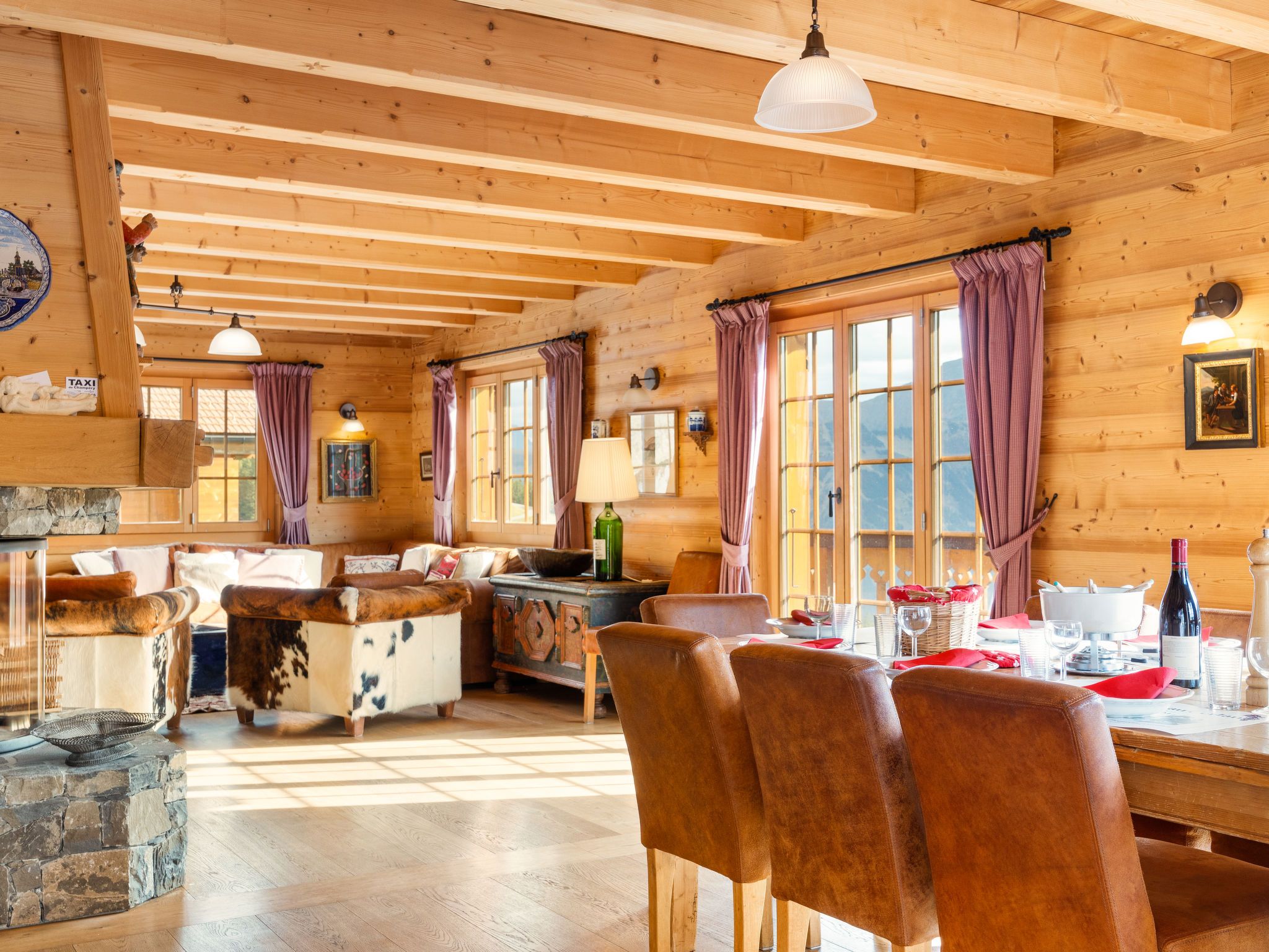 7-Zimmer-Chalet 300 m2. Luxuriös und geschmackvoll eingerichtet: Wohn-/Esszimmer mit offenem Kamin, Esstisch und Stereoanlage. Ausgang zur Terrasse, Richtung Süden. Salon mit Kabel-TV, Flachbildschirm und DVD. Offene Küche (5 Kochplatten, Backofen, Geschirrspüler, Mikrowelle, Tiefkühler, elektrische Kaffeemaschine, Kapseln für die Kaffeemaschine (Nespresso) extra) mit Bar. Bodenheizung. Unteres Geschoss: 1 Zimmer mit 1 franz. Bett und Bad/WC. Dusche/WC, Sauna. Obergeschoss: 2 Doppelzimmer, jedes Zimmer mit 1 franz. Bett und Bad/Dusche/WC. Ausgang zum Balkon. 1 Zimmer mit 2 Betten und Bad/Dusche/WC. 1 Zimmer mit 2 Betten und Dusche/WC. 2. Obergeschoss: kleine Galerie. Balkon, Südlage, Terrasse, Ostlage. Terrassenmöbel, Gartengrill (mobil), Liegestühle. Herrliche Panoramasicht auf die Berge. Zur Verfügung: Waschmaschine, Wäschetrockner, Sauna. Internet (Wireless LAN, gratis). Garage (3 Autos). Bitte beachten: Nichtraucher-Haus. Der Multipass bietet einen unbegrenzten Zugang zu zahlreichen Aktivitäten innerhalb der Region Portes du Soleil (gültig Sommer).