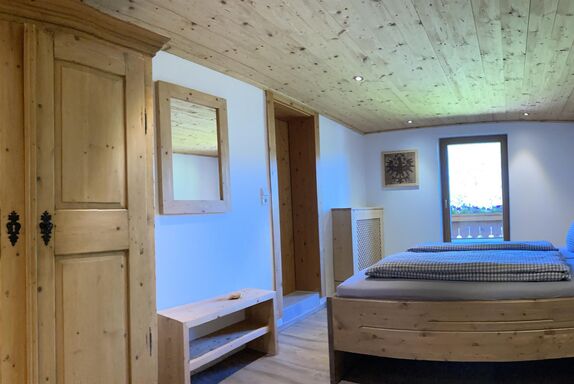 Klare stilvolle Einrichtung mit bäuerlich traditionellem Dekor. Hier kommen antike Butterfässer, Heustanker und alte Ski wieder zum Einsatz. Alte Bauernmöbel, liebevoll restauriert, werden mit neuen und alten Möbeln kombiniert und vermitteln dem Gast einen komfortablen traditionellen Flair.