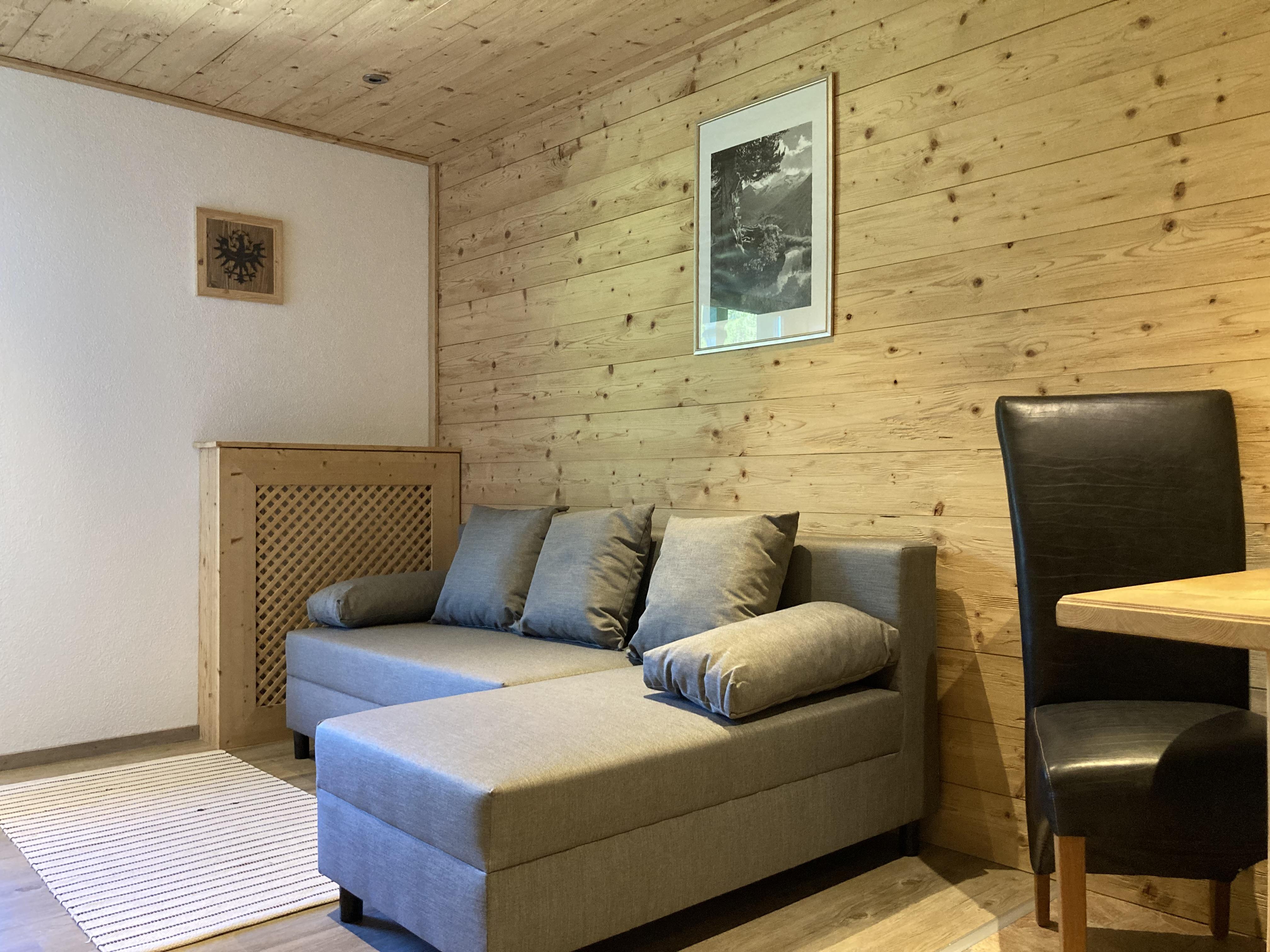 Ein gemütliches Appartement mit einem Schlafraum und einer separaten Wohnküche. Die neu gestalteten Wohnräume sind mit viel Antikholz modern ausgekleidet und rustikal dekoriert. Direkter Zugang zum Balkon durch den Schlafraum und die Wohnküche mit dem Blick übers Leutaschtal. Das Bad wurde 2022 komplett saniert.