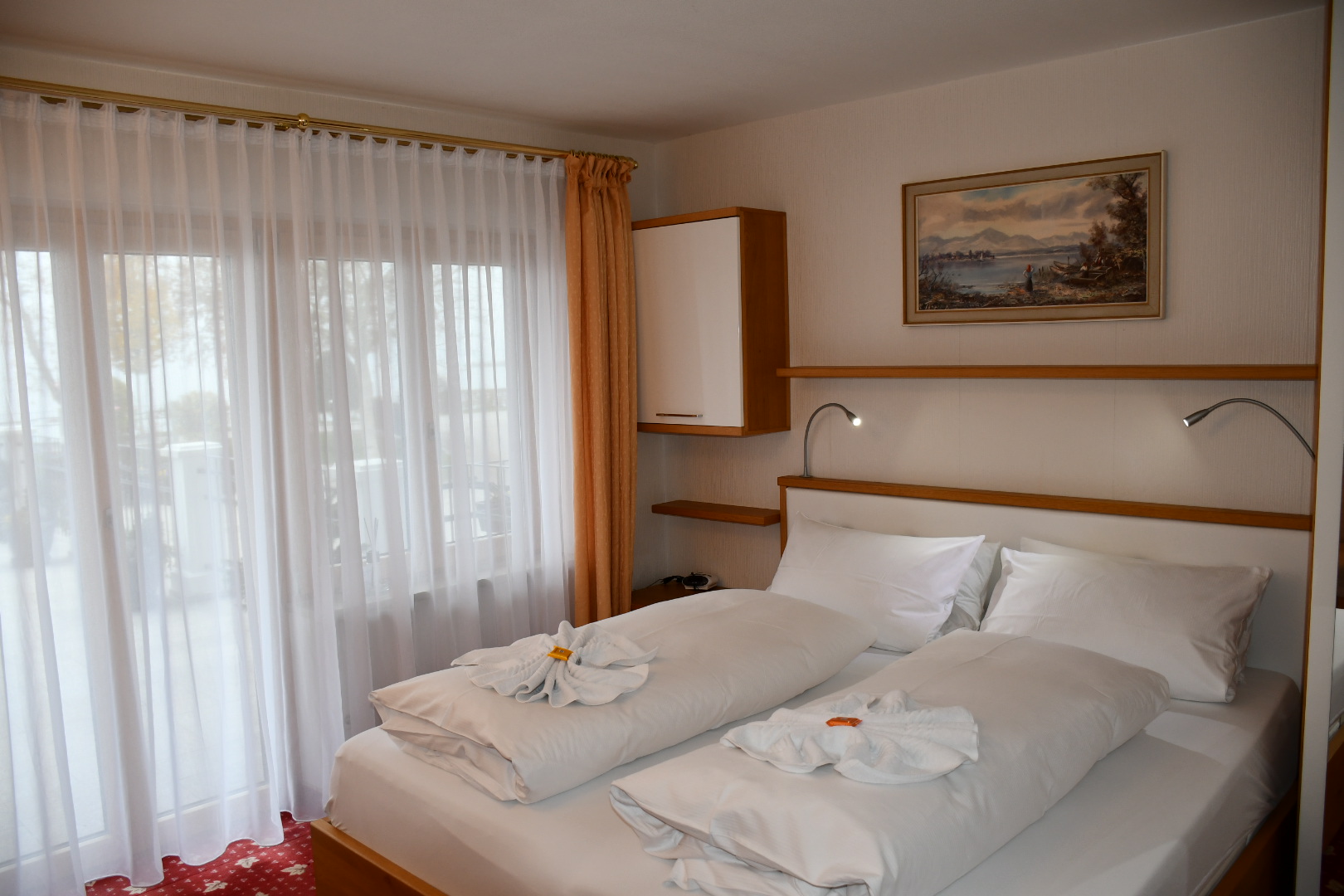 Gemütlich eingerichtetes Doppelzimmer mit Dusche/WC, Minibar, Sitzgelegenheit, TV, Radio und Balkon oder Terrasse zur Seeseite (Kategorie C) - WLAN