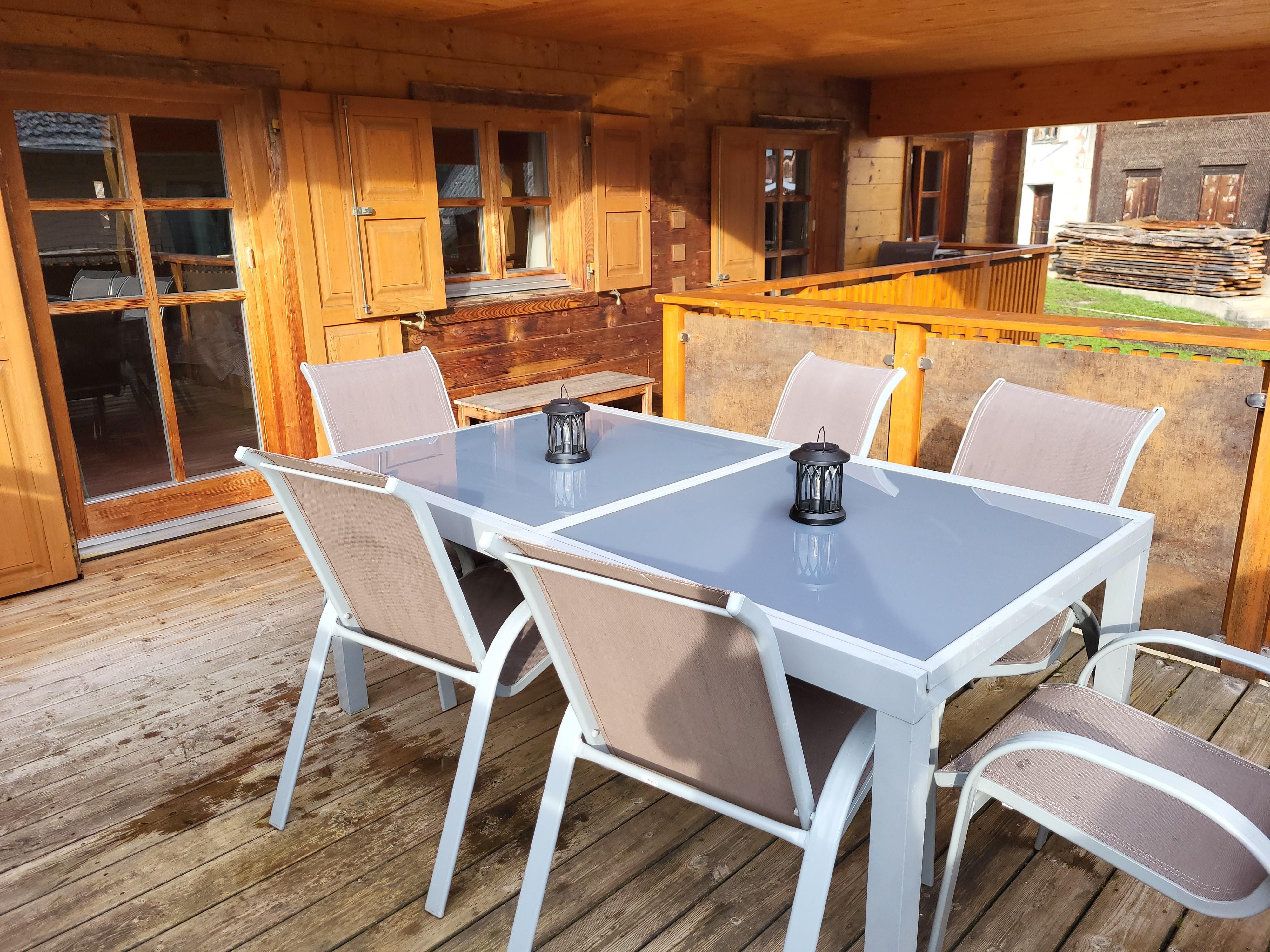 Die Ferienwohnung 4 ist eine liebevoll, eingerichtete Wohnung für 8 - 11 Personen mit einer Garderobe, vier Schlafzimmer, einer Wohnküche, einem Esszimmer mit TV, zwei Duschen (einmal mit WC), einem separaten WC und mit einem Balkon/Terrasse.(Gesamt 130 m²).