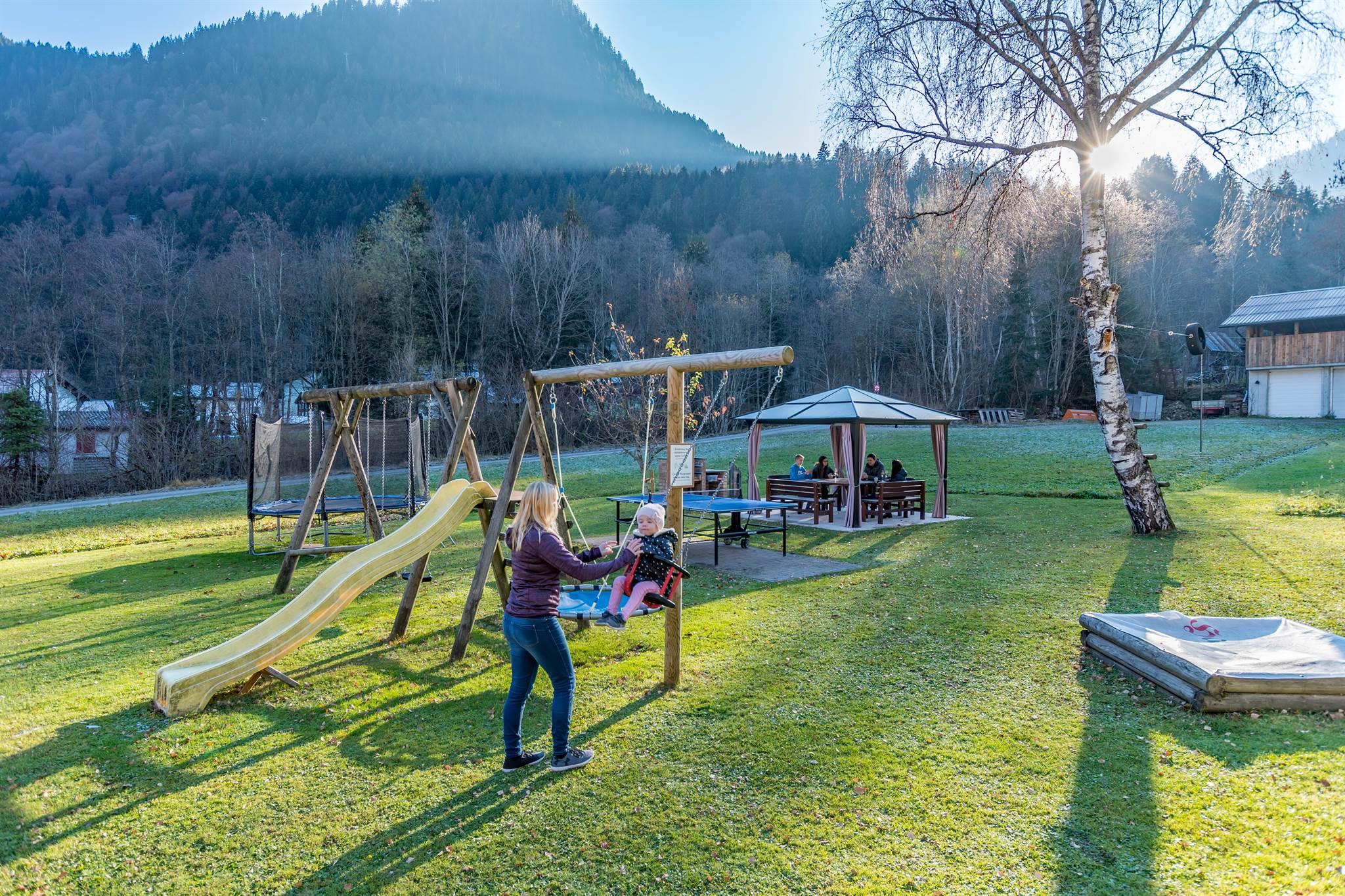 Spielplatz mit Grillplatz, Gorillarutsche, Schaukeln, Rutschbahn, Tischtennis sowie Sandkasten und Riesentrampolin. Allwetterbad Aquarena sowie der beleuchtete Radweg sind in wenigen Schritten erreichbar.