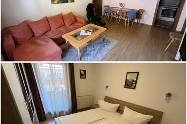 Die Wohnung (ca. 90m2) besteht aus: einem großen Wohnzimmer mit Essecke für 6Personen, einem abgeschlossenen Balkon mit herllichem Ausblick, zwei Schlafzimmern, eine abgeschlossene, komplett eingerichtete Küche mit Geschirrspüler und zwei Bäder kostenloses WLan