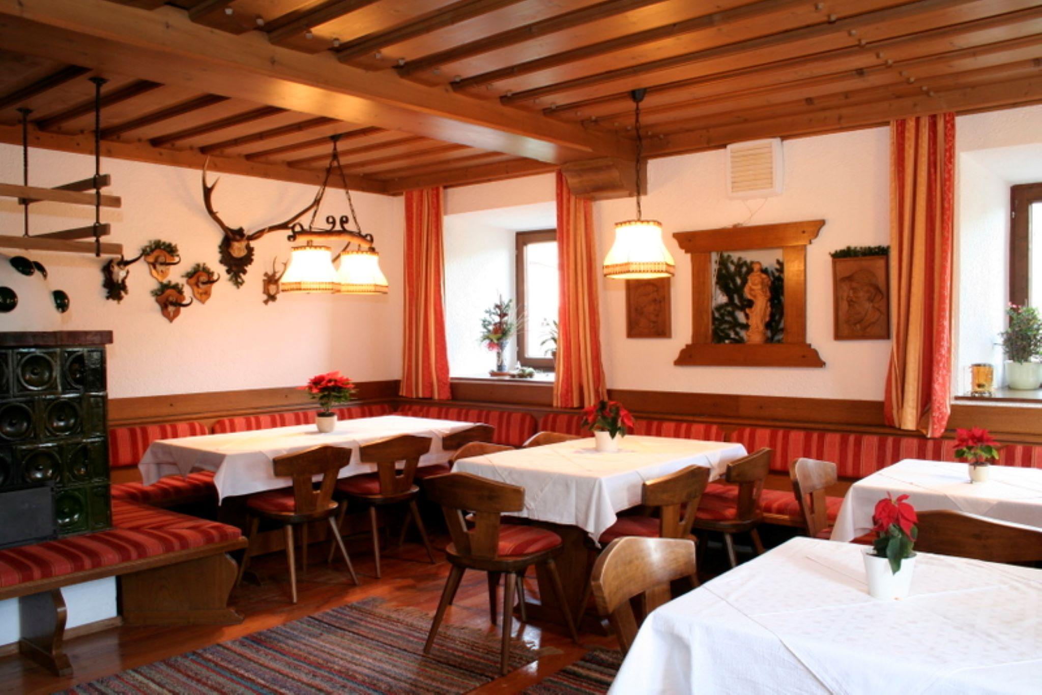 Unser gemütlich rustikaler Frühstücksraum verwandelt sich am Abend zum netten Aufenthaltsraum.
