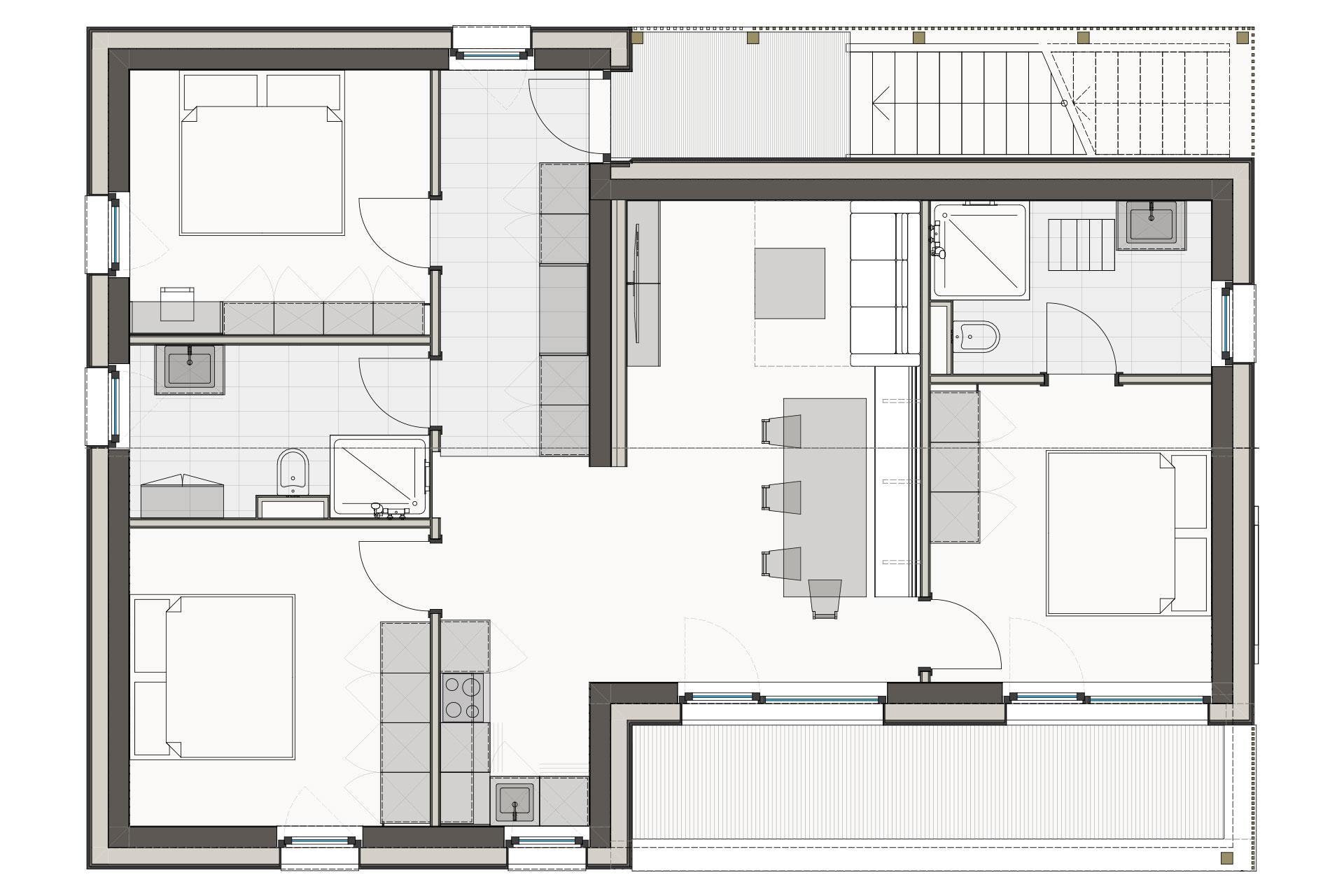 • zwei Bäder mit Dusche, Waschtisch, WC, Föhn und Handtüchern