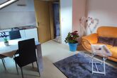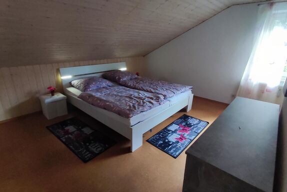 Die FeWo Jamara verfügt über ein Schlafzimmer mit Doppelbett, ein Bad mit Dusche ein Wohnzimmer mit Essecke und einer Küche.