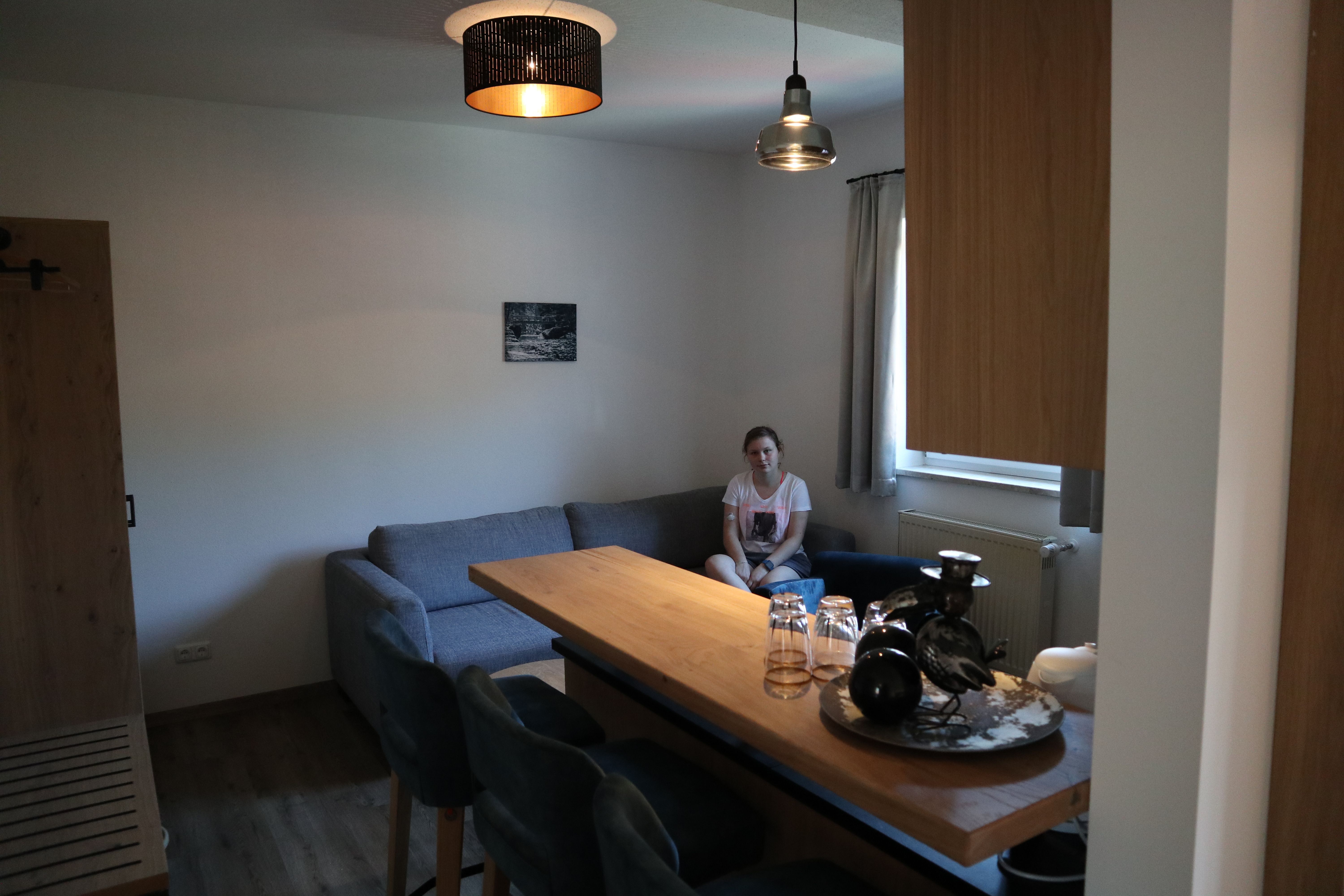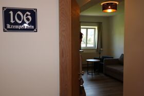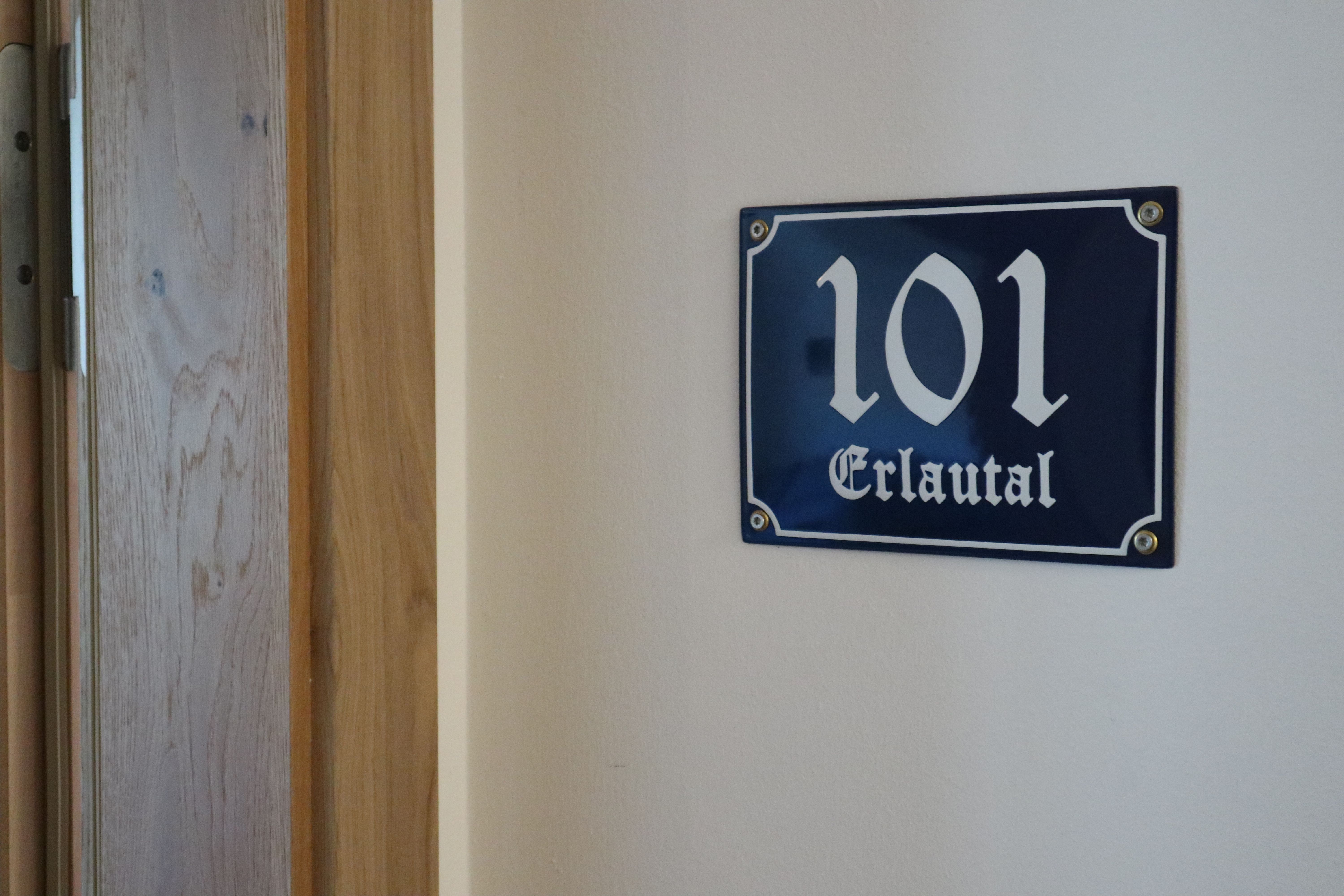 Die stilvolle Einrichtung des Apartments schafft eine angenehme Wohnatmosphäre, in der Sie sich nach einem erlebnisreichen Tag ideal entspannen können. Das Apartment verfügt über einen Vorraum, kleine Küche, Essplatz, Doppelbett, Couch, Sat-TV, Badezimmer mit ebenerdig begehbarer Dusche sowie über einen Balkon mit Blick ins Erlautal oder zum Vogtpark.