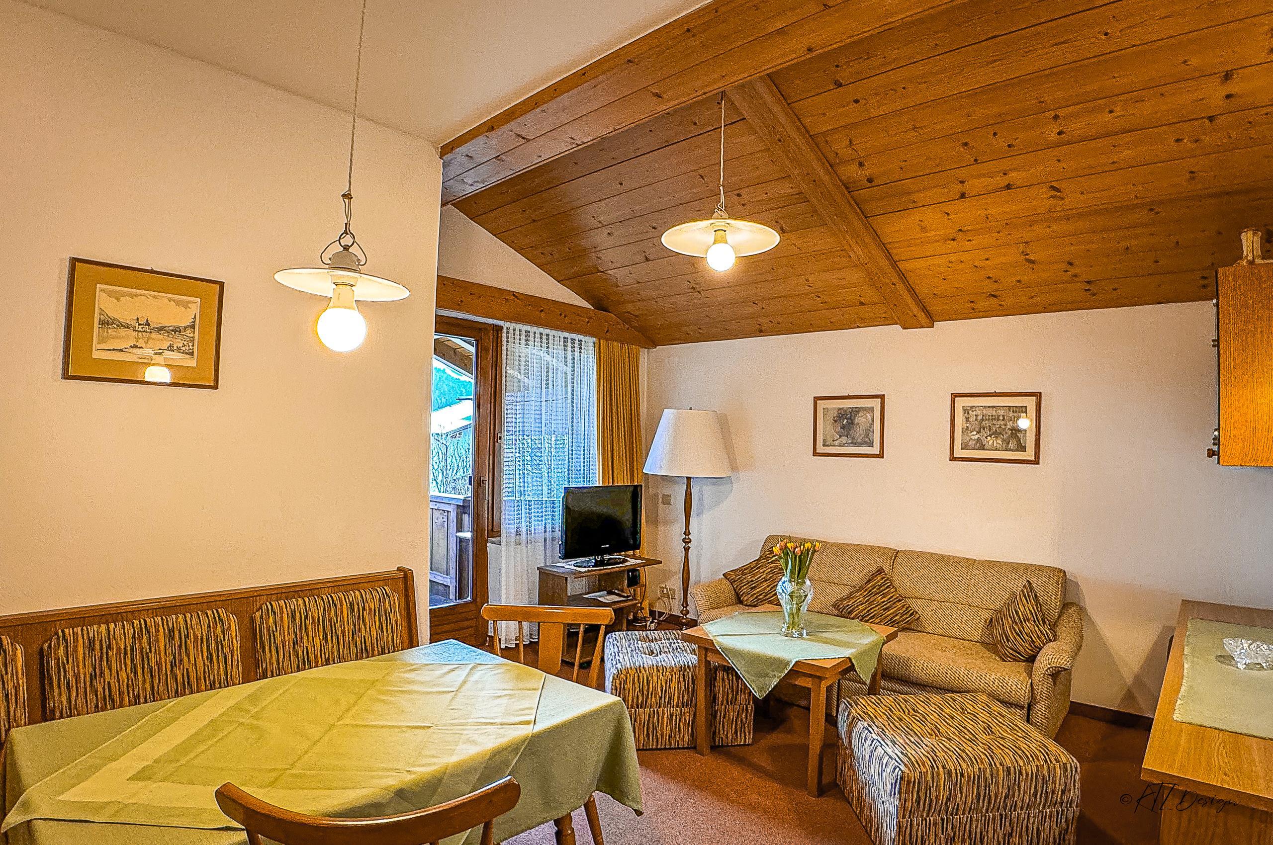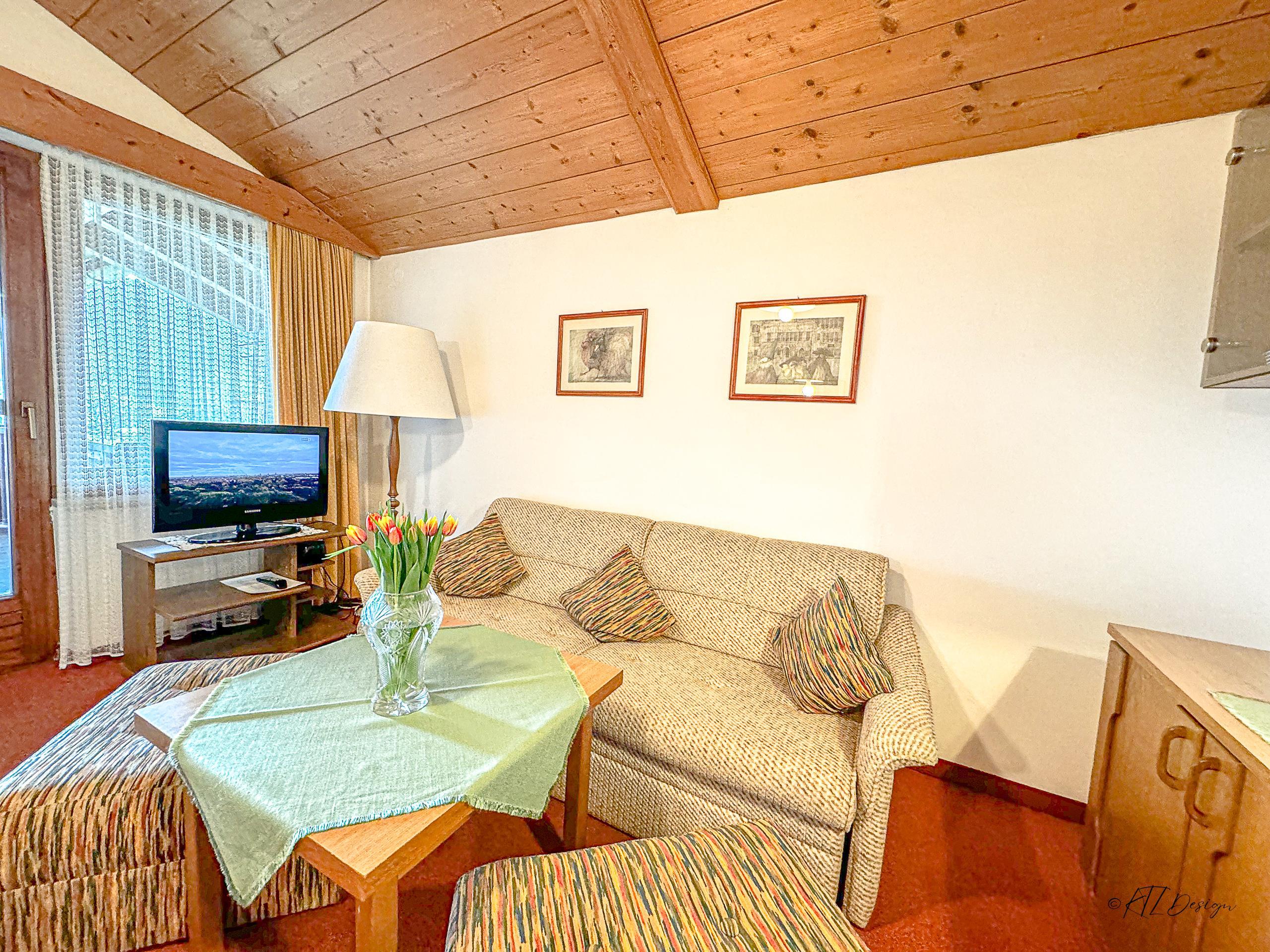 Die 2 Zimmerwohnung liegt im 1. Stock unseres Landhauses. Sie verfügt über ein Wohnzimmer mit integrierter Essecke, Sitzcouchkombination, TV, Radio und Telefon, 1 Schlafzimmer, 1 getrennter Kleinküche (voll ausgestattet) und Dusche/WC. Die Wohnung ist von Süd nach Nord gerichtet. Zur Wohnung gehören 2 Balkone (1 Süd mit bequemer Sitzecke, 1 Nord) mit schönem, unverbautem Ausblick auf die Bergwelt des Seefelder Plateaus.