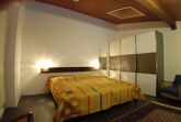 Geräumiger Schlafraum mit Doppelbett, Kajüten Bett und ein Einzelbett, Kinderreisebett. Grosser Kleiderschrank, Flatscreen-TV. Die Galerie verfügt über zwei Dachfenster: im Sommer können sie Manuell geöffnet werden, in den Wintermonaten, wenn Schnee auf dem Dach und Fenster liegt, ist das Öffnen nicht möglich.