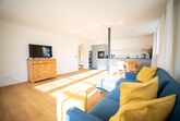 • Wohnzimmer und Essbereich mit grossem Sofa und Smart-TV
