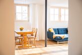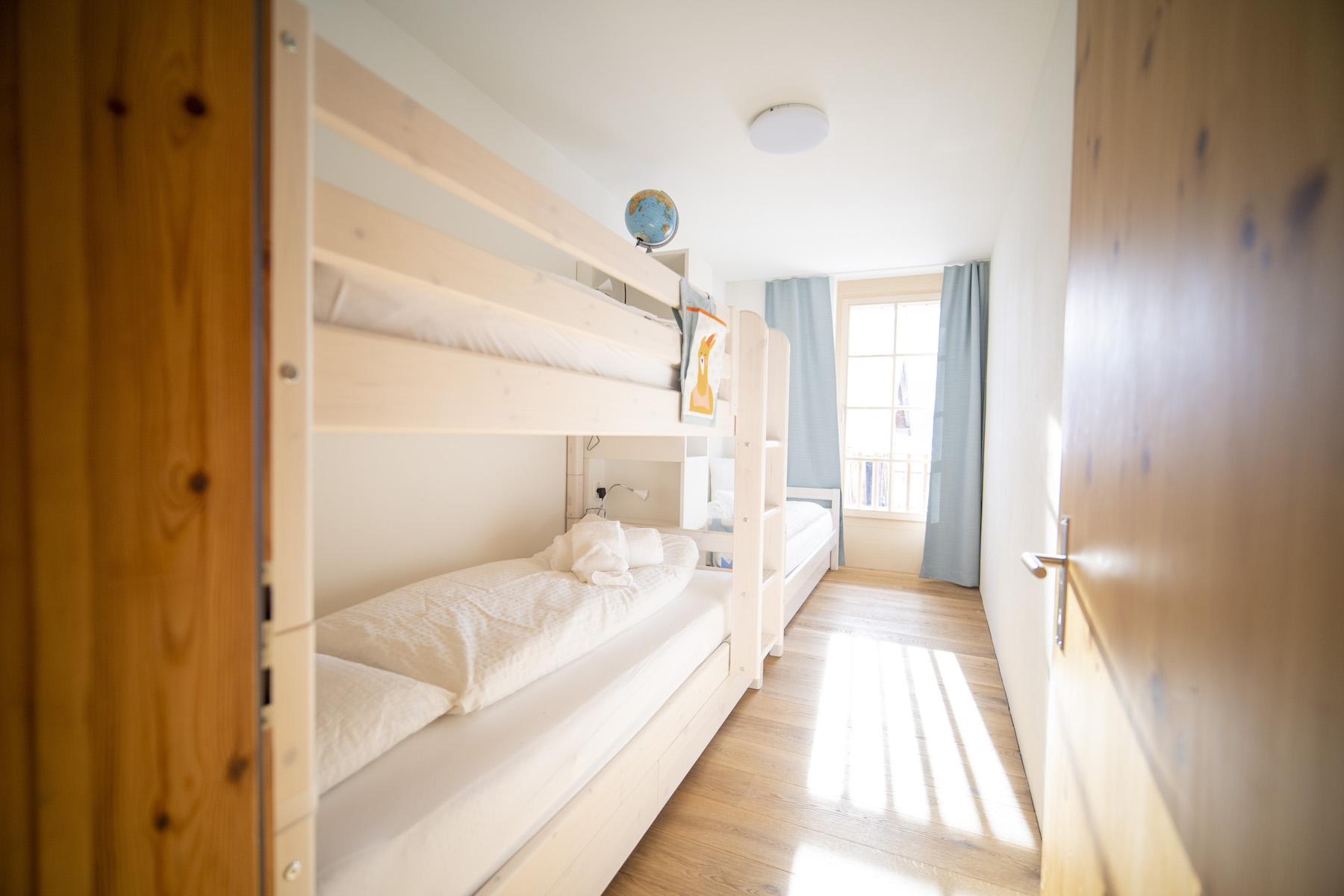 Die Wohnung ist auch für Kinder ideal ausgestattet. Ein praktisch eingerichtetes Kinderzimmer, mit einem Etagenbett und einem zweiten ausziehbaren Einzelbett befindet sich direkt neben dem schick eingerichteten Eltern-Schlafzimmer mit Doppelbett. Zudem ist die Wohnung mit vielen Gesellschaftsspielen und einen Smart-TV ausgestattet. Perfekt, um nach einem erlebnisreichen Tag gemütlich Zeit mit seinen Liebsten zu verbringen.