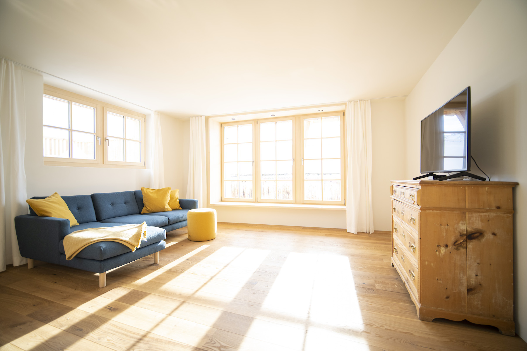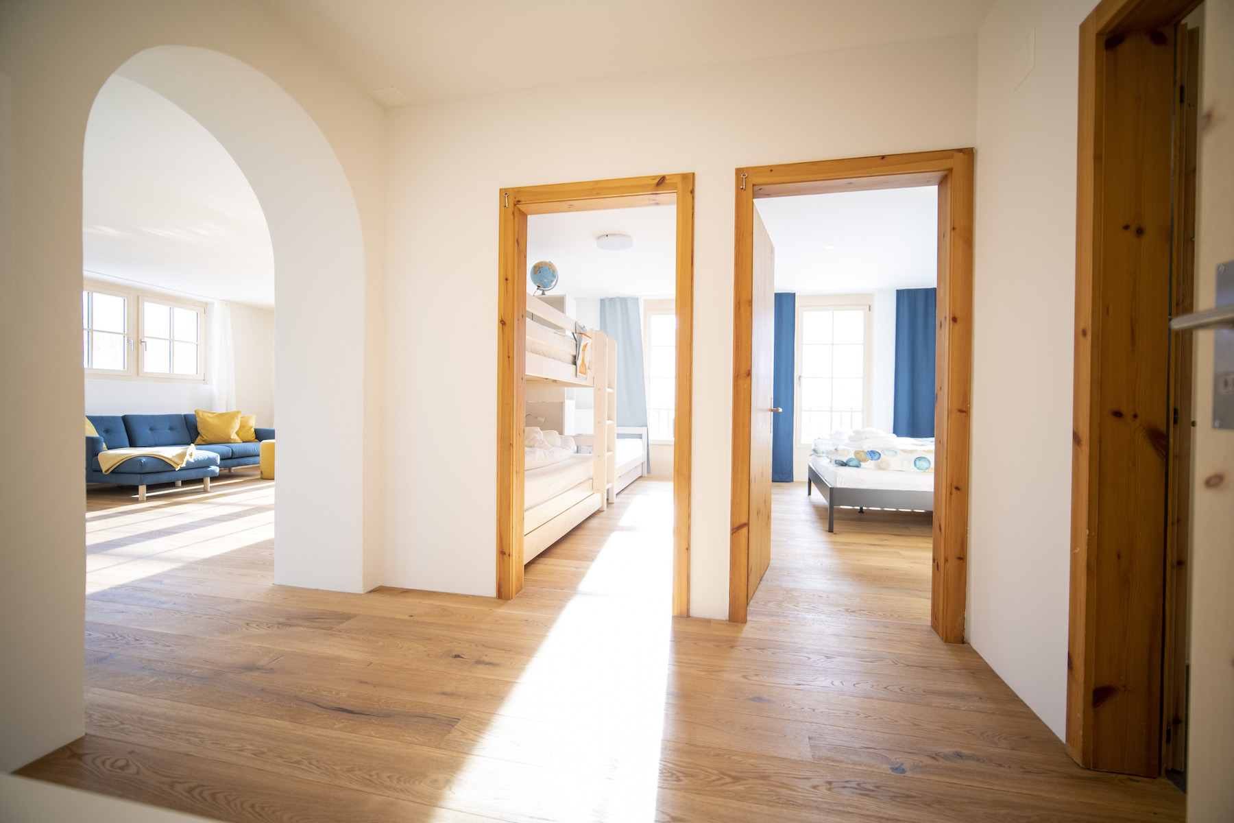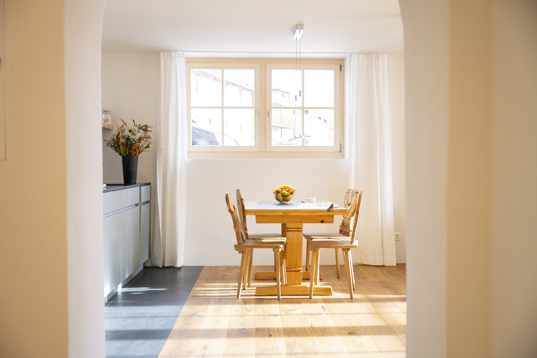 Die mit warmen Materialien und viel Holz ausgestattete Wohnung strahlt eine gemütliche Atmosphäre aus - so kann man die Ferien rundum geniessen! Die moderne Liegenschaft bietet hochwertigen Komfort und liegt an der Strasse Bügl suot, nicht weit vom Volg entfernt.