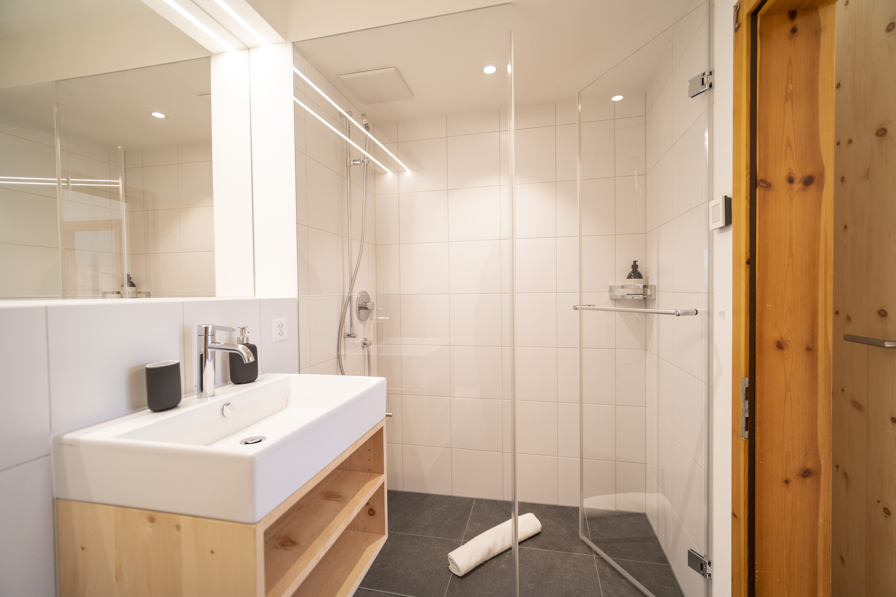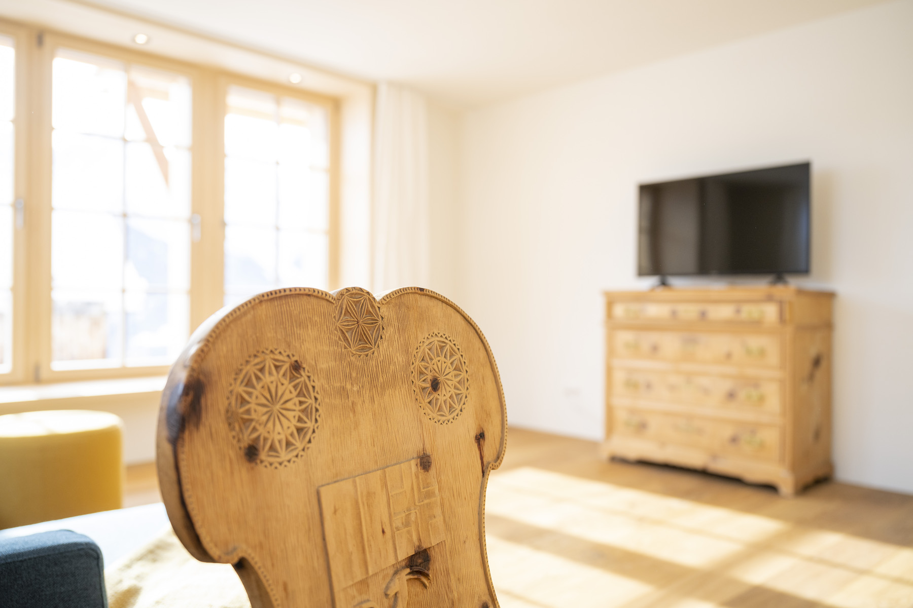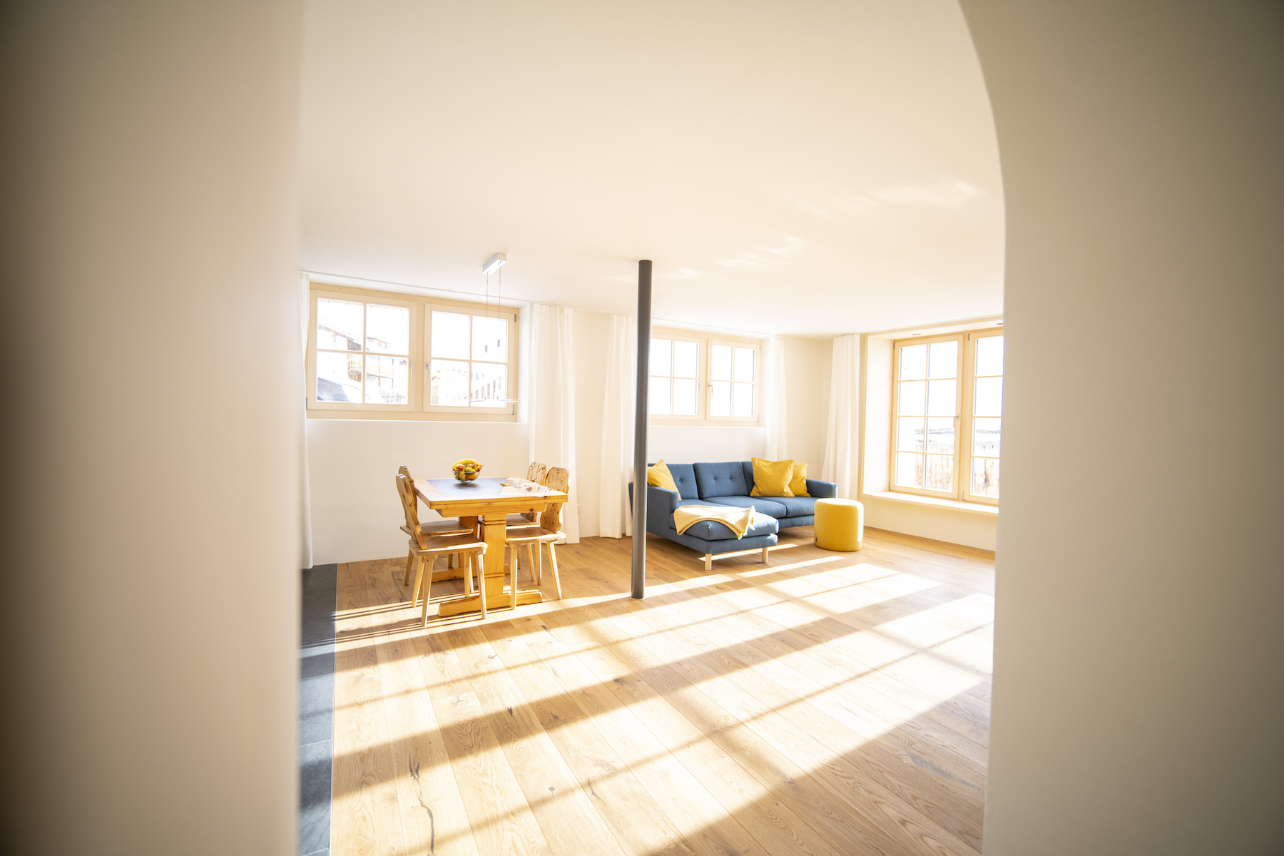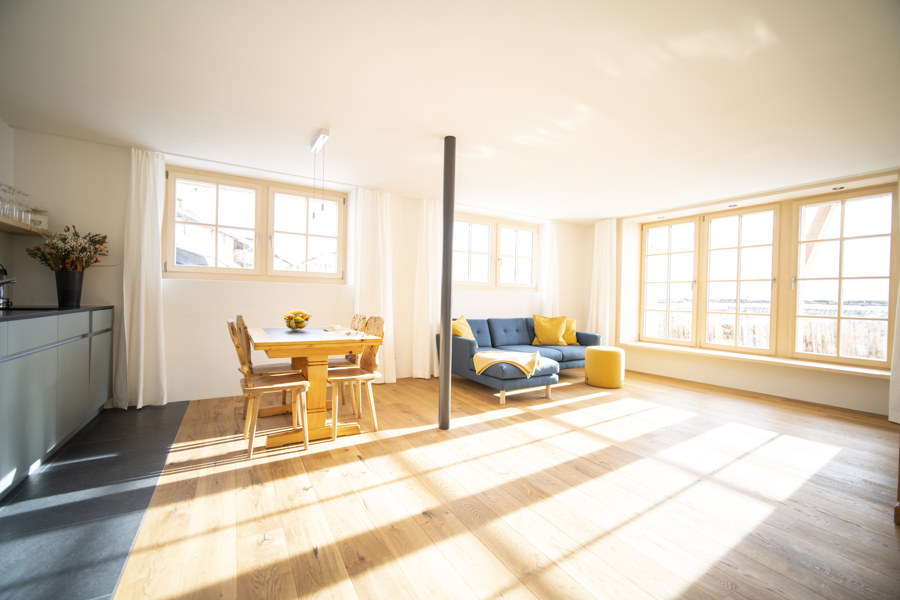 Die mit warmen Materialien und viel Holz ausgestattete Wohnung strahlt eine gemütliche Atmosphäre aus - so kann man die Ferien rundum geniessen! Die moderne Liegenschaft bietet hochwertigen Komfort und liegt an der Strasse Bügl suot, nicht weit vom Volg entfernt.