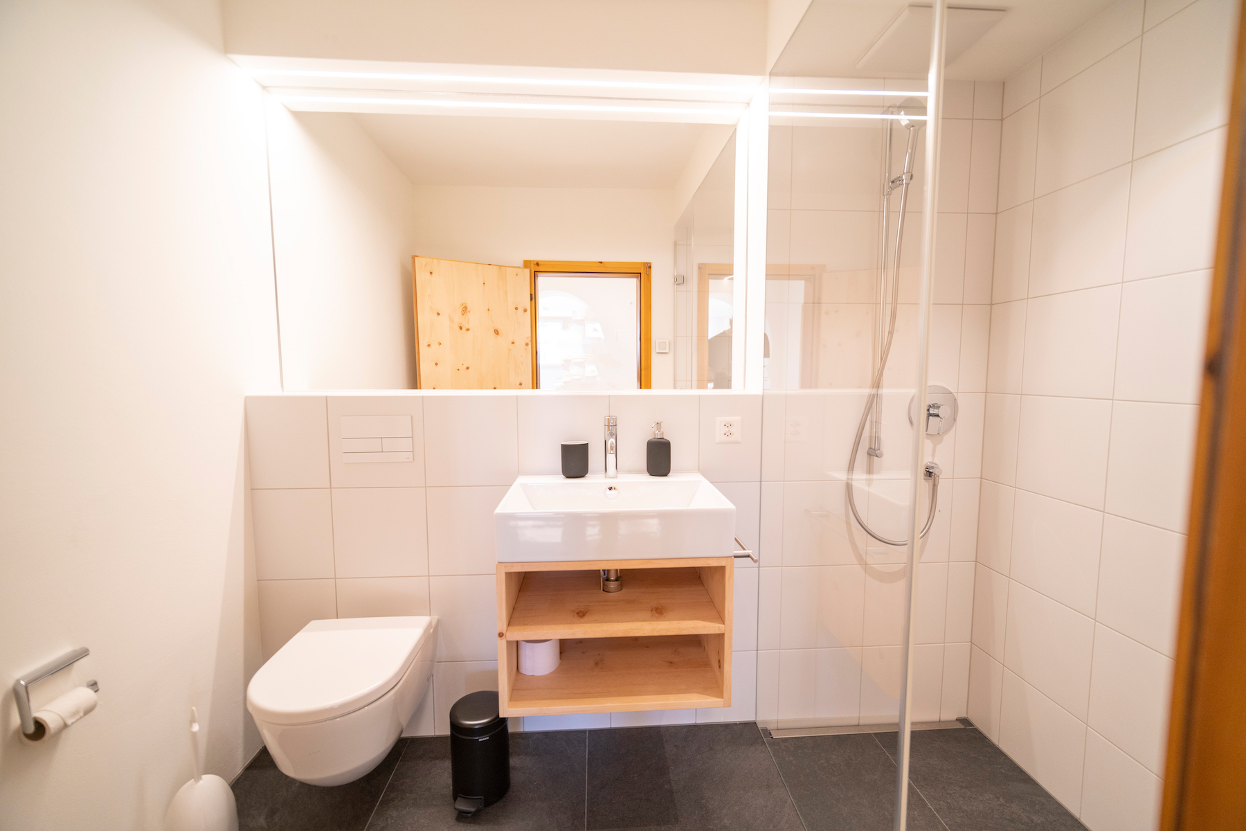 • 1 Badezimmer mit Lavabo, Dusche und WC