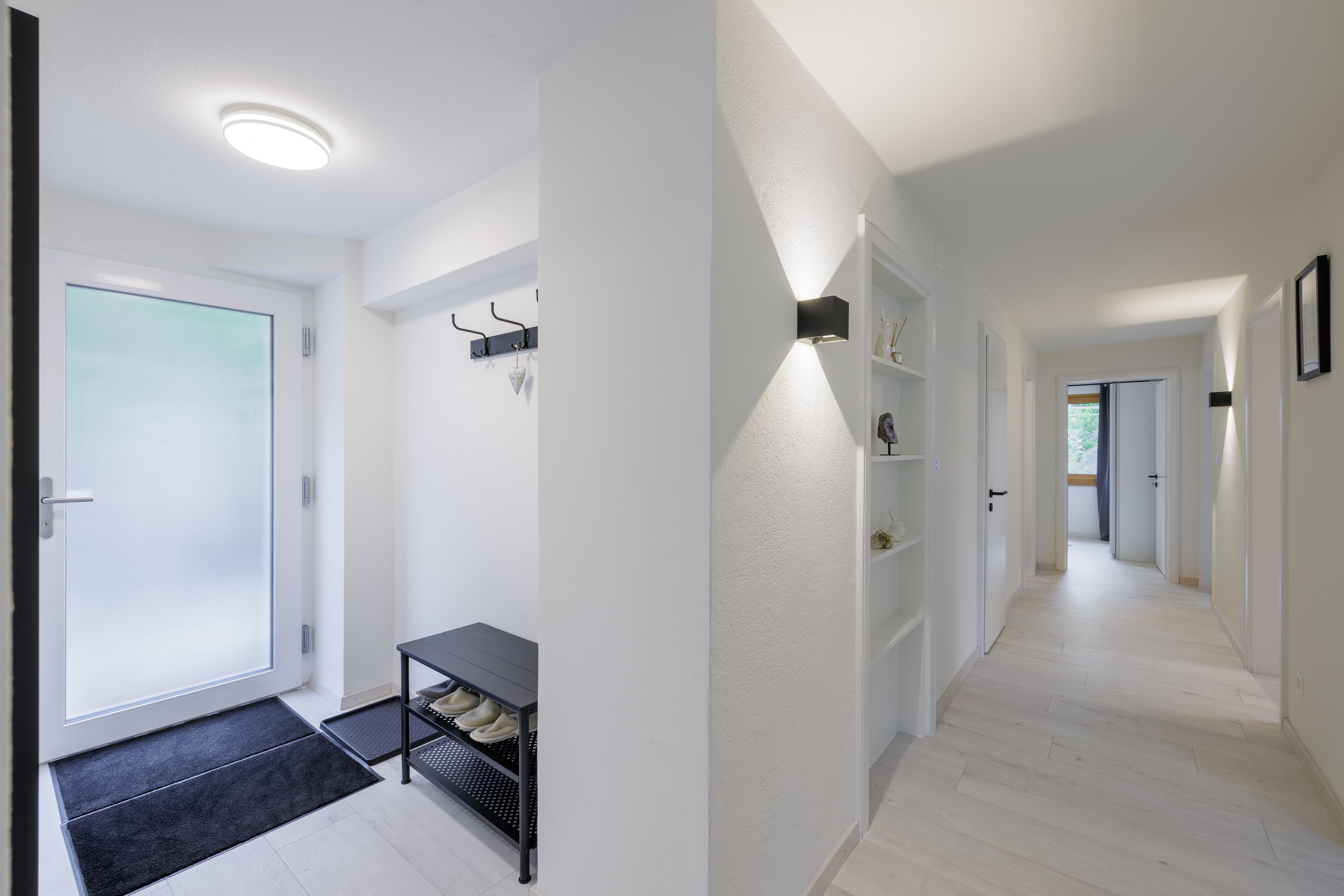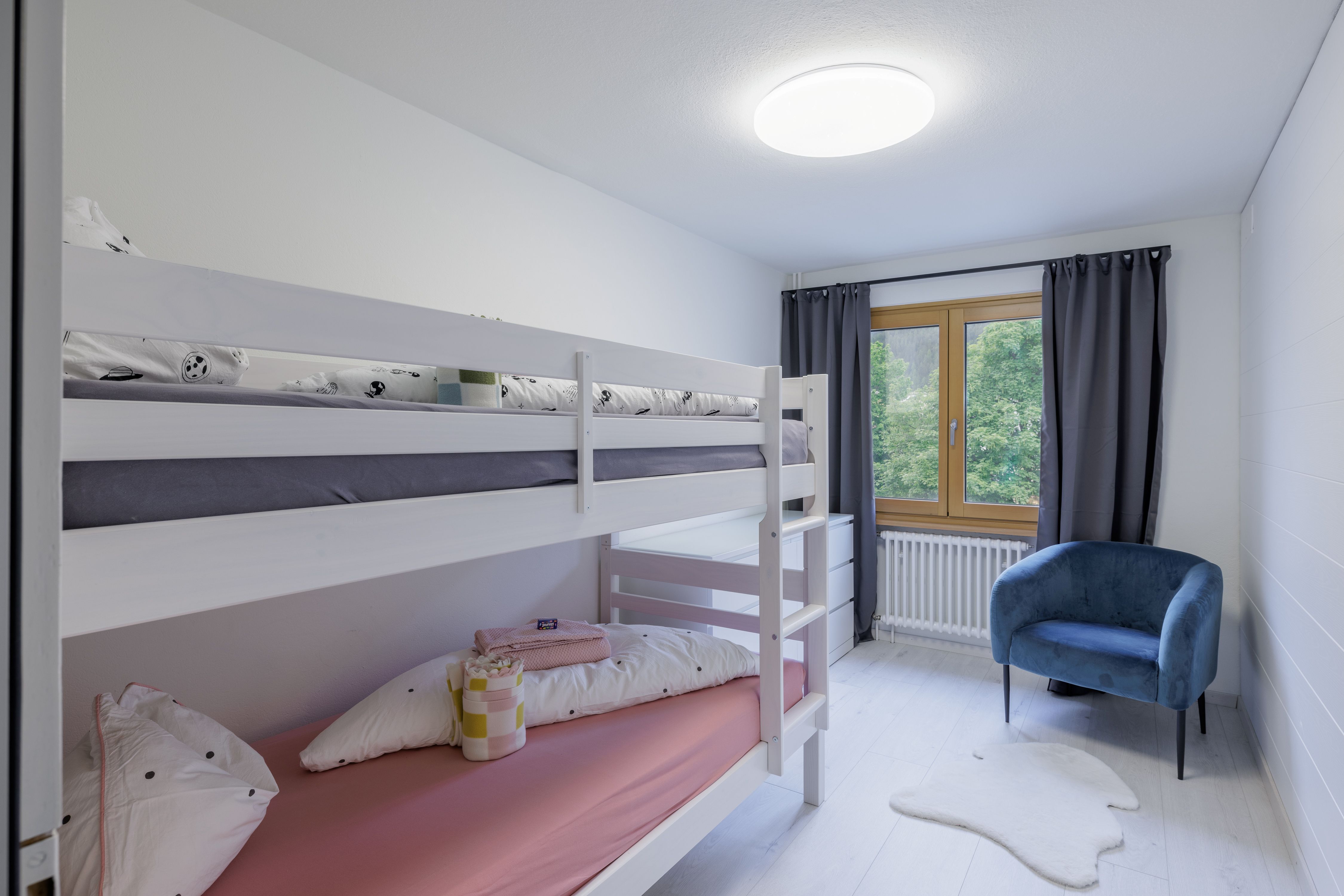 Die neu renovierte 4 1/2 Zimmer-Wohnung bietet Platz für bis zu 6 Gäste. Sie verfügt über ca. 100m2. Die Wohnung hat einen Balkon und ein Gartensitzplatz. Ein Parkplatz steht der Wohnung direkt vor dem Haus Gratis zur Verfügung. Das Haus liegt an bester Ausgangslage. Es verfügt über 3 Schlafzimmer, zwei Schlafzimmer mit Doppelbetten und ein Schlafzimmer mit Etagenbett. Ein Bad mit Dusche. Eine separate Küche mit Esszimmer. Wohnzimmer mit Balkon. Wäscheturm in der Wohnung.