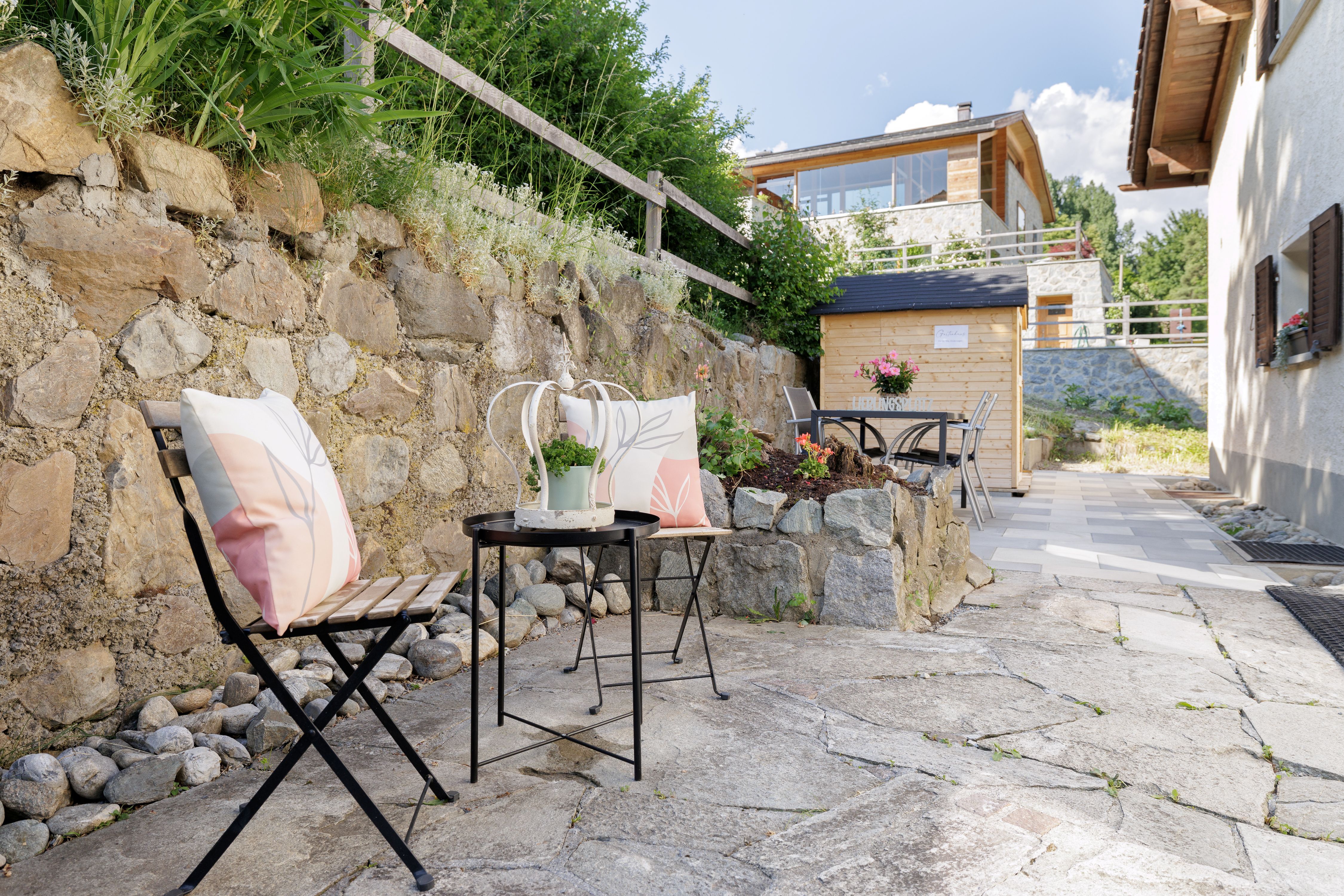 Deine Auszeit in der Schweizer Bergwelt. Einzigartig in der ganzen Schweiz. Gönne dir deine Auszeit in unsere Ferienwohnung mit funkelnden Edelsteine. Ein Wohlfühlort mitten in der schönen Engadiner Bergwelt. Begib dich mit Achtsamkeit auf die Reise zu dir selbst. Die grosszügige und wunderschön mit viel Liebe zum Detail gestaltete Wohnung ist eine Wohlfühloase. Zur absoluten Erholung darf ein Garten mit wunderbar duftenden Kräutern und Blumen zum Innehalten nicht fehlen. Das Haus liegt an zentraler Lage. In der Nähe finden Sie verschiedene Einkaufsmöglichkeiten, Post, Tourismusbüro, Bushaltestelle, Thermalbad Bogn Engiadina. Der Bahnhof und die Bergbahn Motta Naluns ist in ca. 7 Minuten zu Fuss erreichbar.
