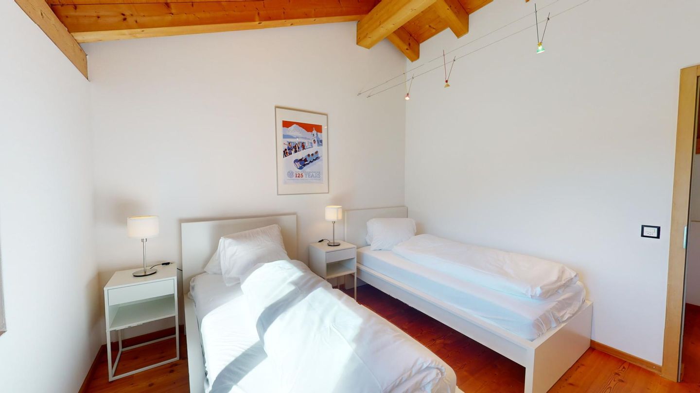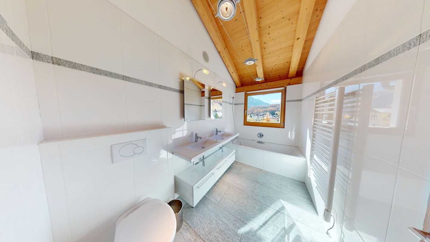 In diesem seltenen Objekt in Celerina, wo Mietmöglichkeiten in Häusern rar sind, erwartet Sie die perfekte Kulisse für unabhängige und erholsame Familienferien. Sie fahren mit dem Auto direkt ins Untergeschoss zu Ihrer Garageneinfahrt (250cm breit x 210cm hoch). Von dort erreichen Sie einen grossen Disponibel Raum mit Garderobe, Schuhablagen und Waschküche. Eine Treppe führt ins Erdgeschoss, wo der Haupteingangsbereich mit zusätzlicher Garderobe und Gäste-WC aufwartet. 1 Doppelschlafzimmer. Grosses Wohn- /Esszimmer mit Kamin. Schöner Garten mit Grill, der im Sommer zum Verweilen einlädt. Abgetrennt mit Durchreiche befindet sich die gut eingerichtete Küche. 1. Obergeschoss: 3 Doppelschlafzimmer mit grossem Bad/DU/WC sowie 1 separate DU/WC.