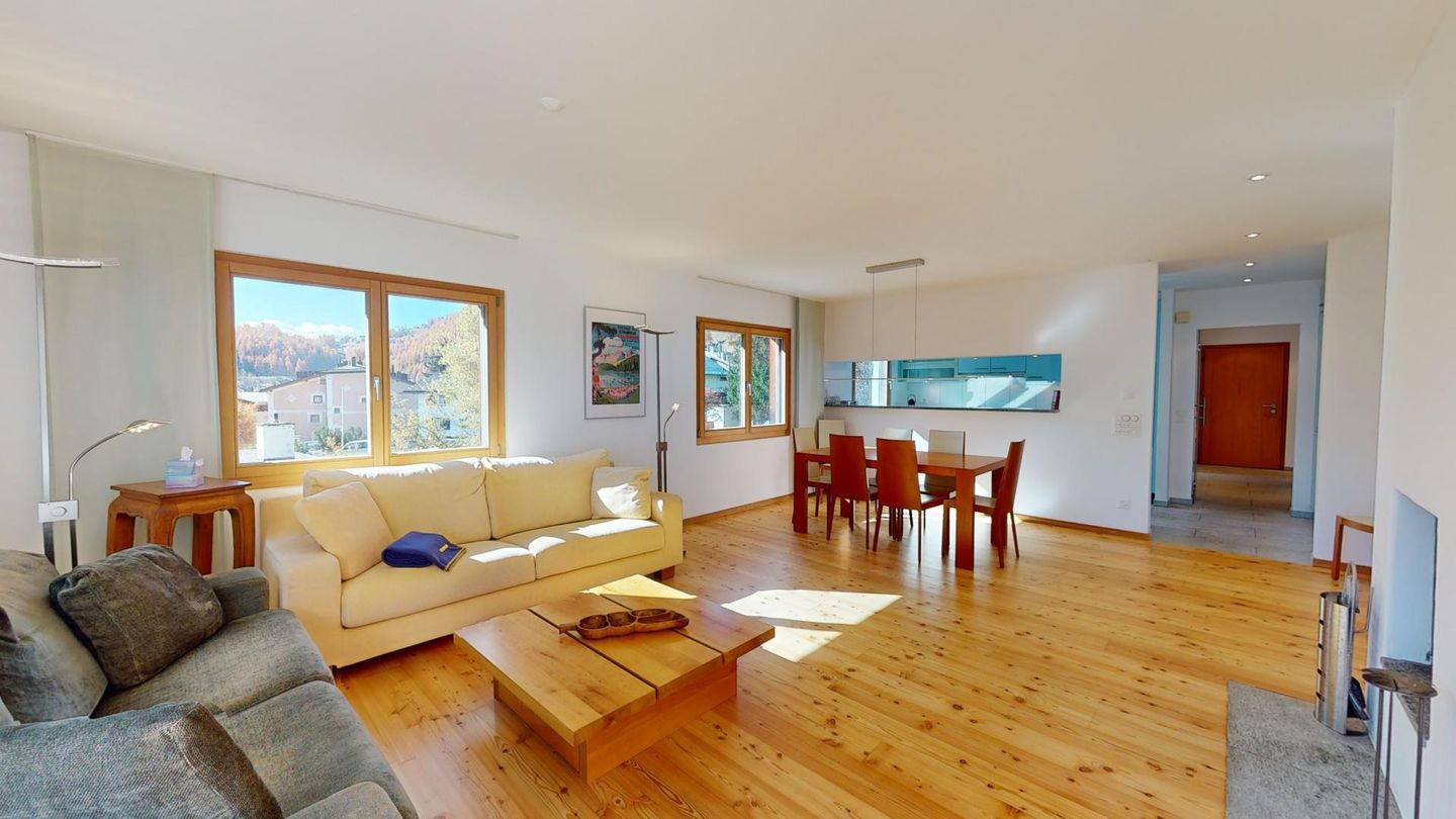 In diesem charmanten Ferienhaus fühlen sich auch Familien sehr wohl. Die ausgezeichnete Lage etwas erhöht vom Dorf bietet viel Privatraum und eine schöne Aussicht auf die Engadiner Berge. Zur Marguns Gondelbahn, die Sie ins Corviglia Skigebiet bringt, sind Sie nur bequeme 7 Gehminuten entfernt. Ebenfalls befindet sich dort der bekannte Kinderskihort. Auch Ihre Einkäufe können Sie zu Fuss erledigen. Die wohl sonnigsten Langlaufloipen des Engadins inklusive Langlaufschule befinden sich in 12 Gehminuten Entfernung.
