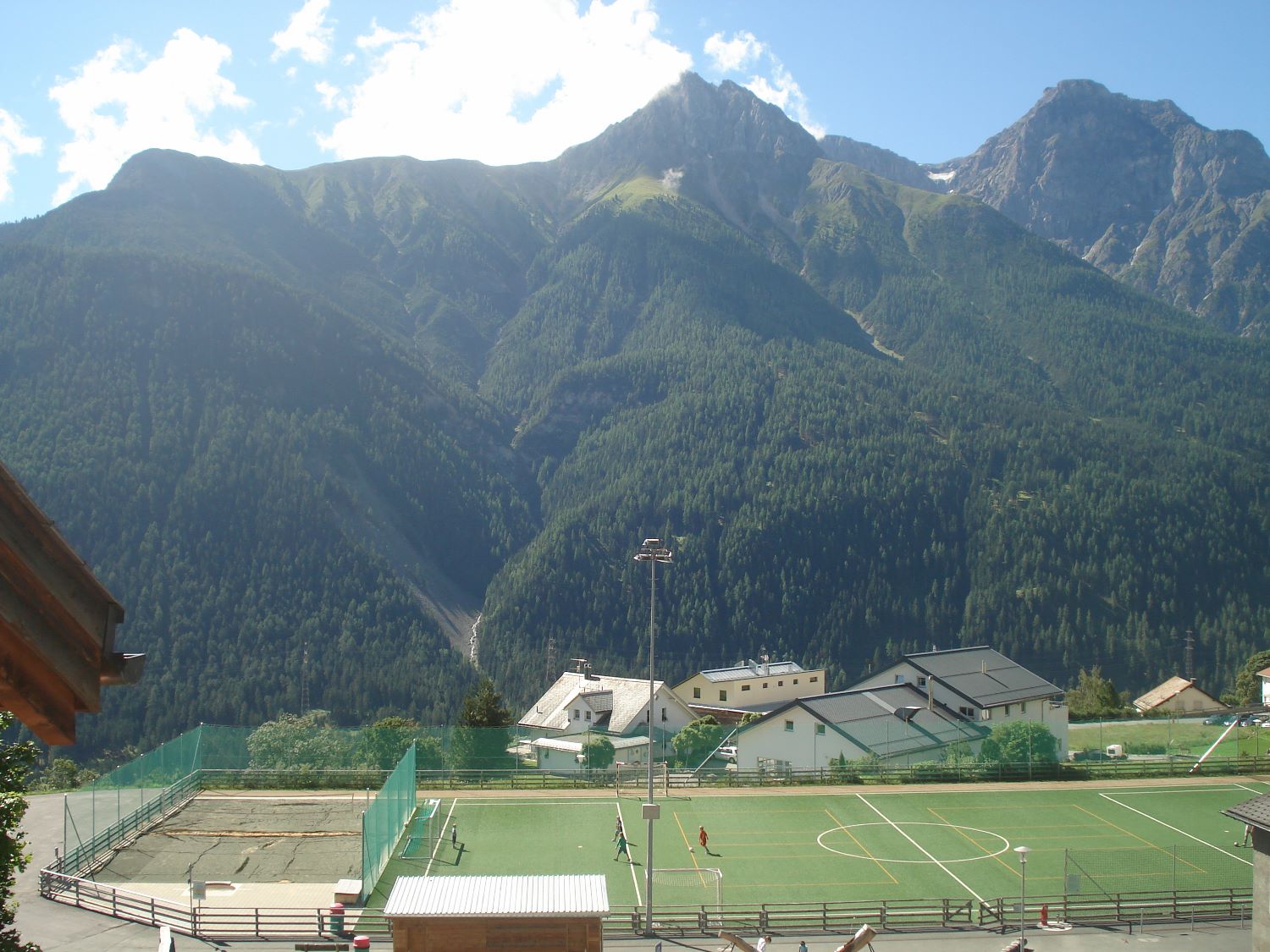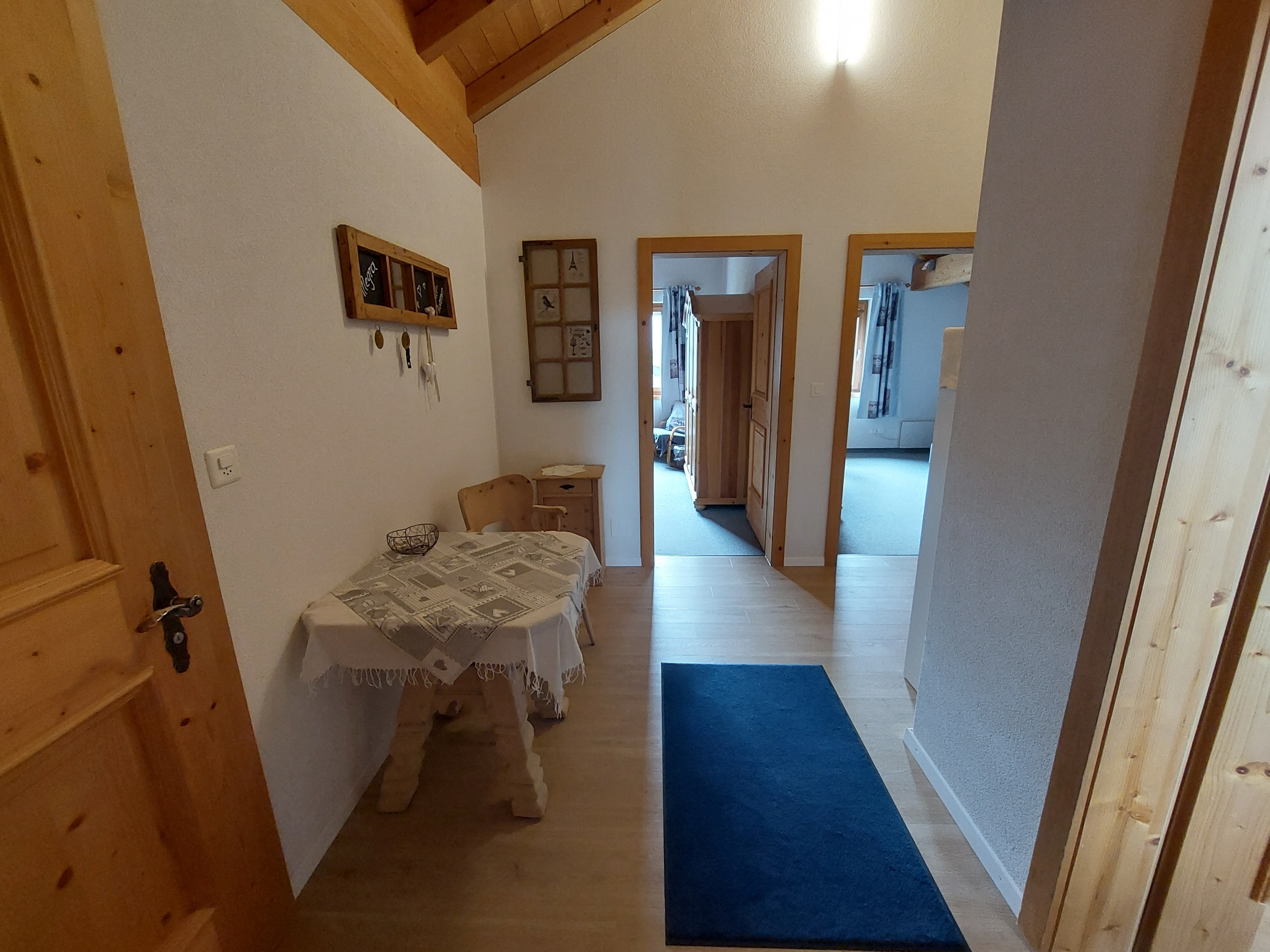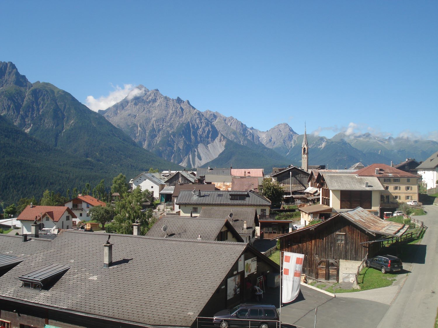 Komfortable und familienfreundliche **** 3 ½ Zimmerwohnung im Dachgeschoss an sonniger und ruhiger Lage mit herrlicher Aussicht. 5 Gehminuten vom Zentrum entfernt, direkt an der Skipiste, Ausgangspunkt für verschiedene Wanderungen. Die sichtbare Balkenlage verleiht eine romantische und überaus gemütliche Atmosphäre. Die Wohnung ist 77 m2 gross, hell, geräumig und mit jeglichem Komfort (gratis WLAN etc). Sehr sonniger Balkon (ausgestatte mit Gartenmöbel und Sonnenschirm) mit traumhafter Aussicht auf die Engadiner Bergwelt. Separate Garderobe, Nichtraucher-Wohnung, Parkplätze beim Haus, Spiel-, Sport- und Eisplatz befinden sich unterhalb des Hauses. FÜR UNSERE KLEINEN GÄSTE: Riesen-Trampolin (Durchmesser 4.20m) mit Sicherheitsnetz und Spielparadies im Heustall gleich neben dem Haus. Eigener Bio-Bauernhof mit Pferden, Ziegen, Schafe, Hühner etc.
