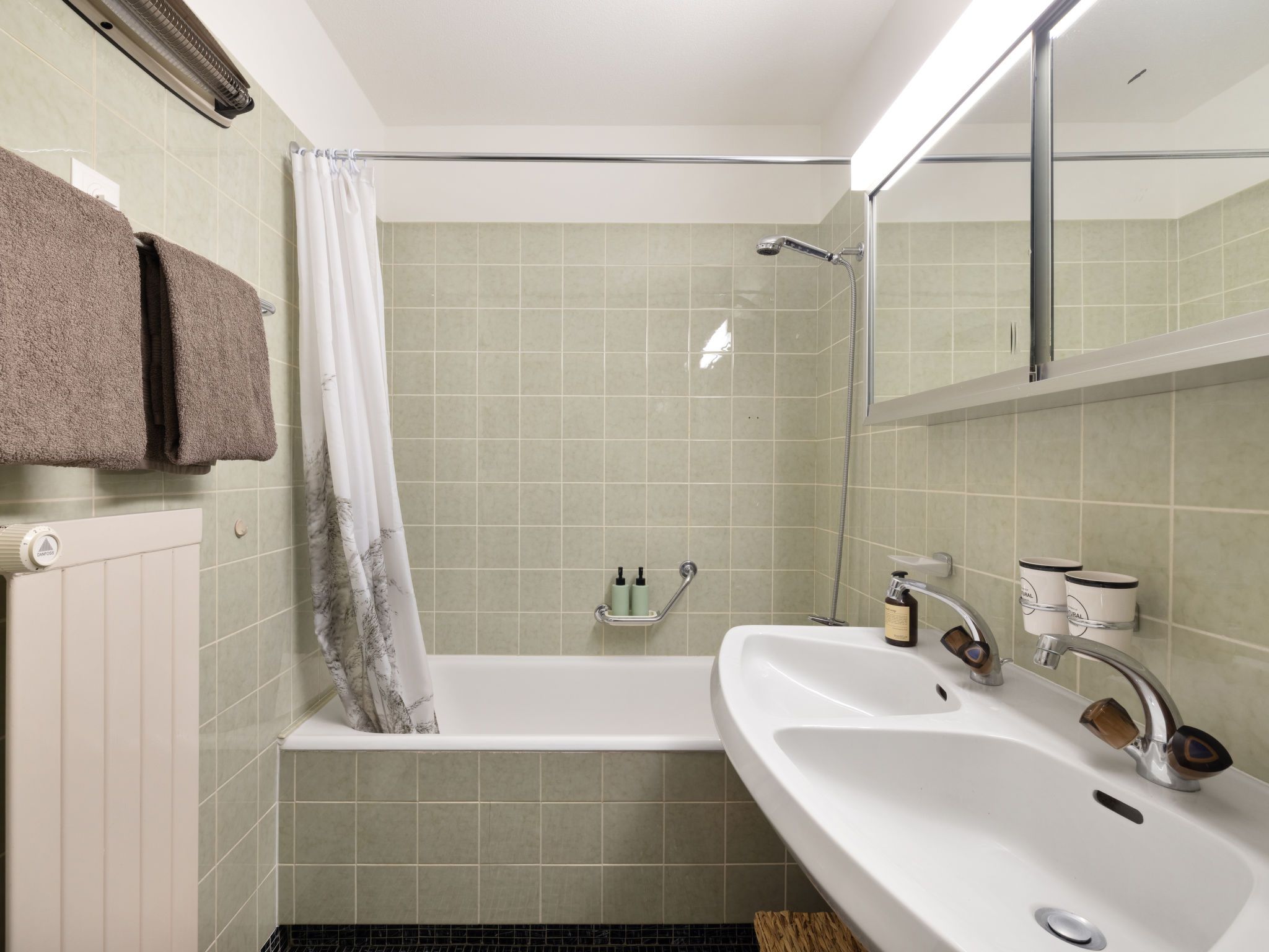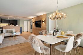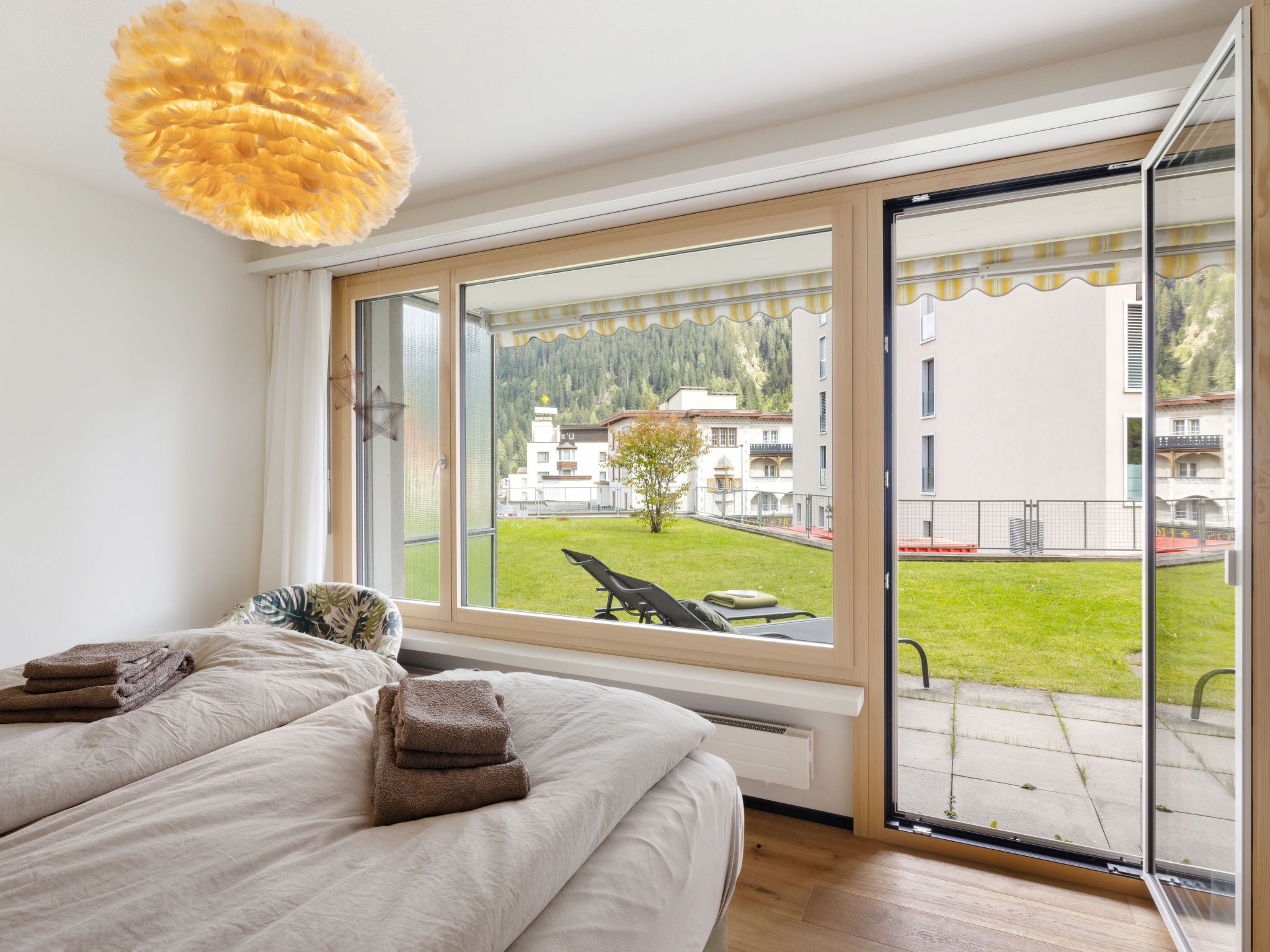 Lenza Apt 106, 3-Zimmer-Wohnung 105 m2, im Erdgeschoss, Südostlage. Geräumig, vollständig renoviert im Jahre 2024, sehr komfortabel und modern eingerichtet: grosses Wohn-/Esszimmer mit sep. WC, Flachbildschirm, Radio und Stereoanlage. Ausgang zum Gartensitzplatz, Richtung Südosten. 1 Doppelzimmer mit 2 Betten (90 cm, Länge 200 cm). 1 grosses Doppelzimmer mit 1 Doppelbett (2 x 90 cm, Länge 200 cm). Offene Küche (Backofen, 4 Glaskeramikplatten, Tiefkühler, elektrische Kaffeemaschine, Kapseln für die Kaffeemaschine (Nespresso) extra, Racletteofen, Fondue Set (Chinoise, Käse)) mit Küchenblock. Bad/WC, Doppelwaschbecken. Parkettboden. Grosse Terrasse, Südostlage. Balkonmöbel, Liegestühle (2). Schöne Sicht auf die Berge. Zur Verfügung: Internet (WLAN). Garage Nr. 11. 10892