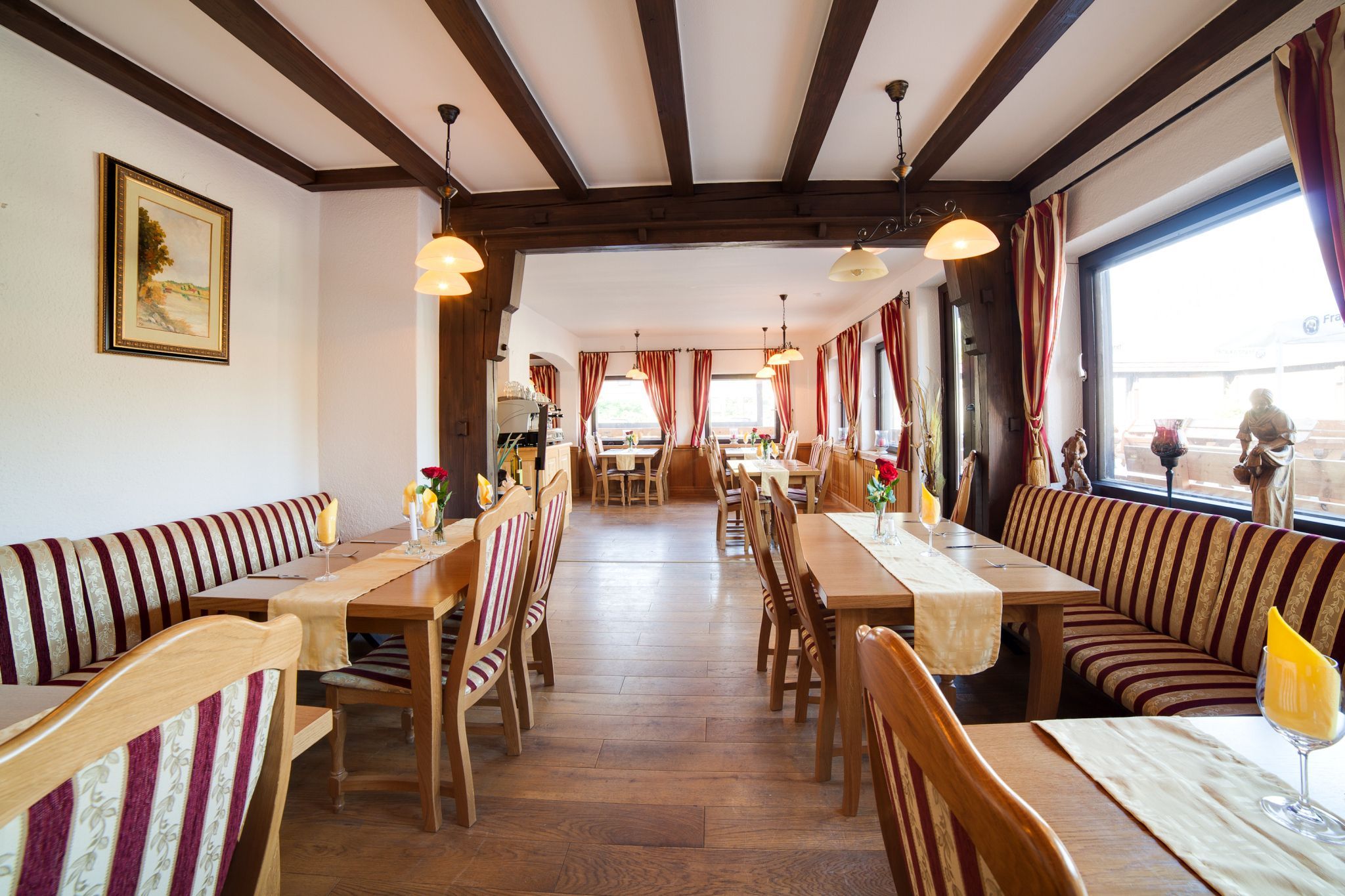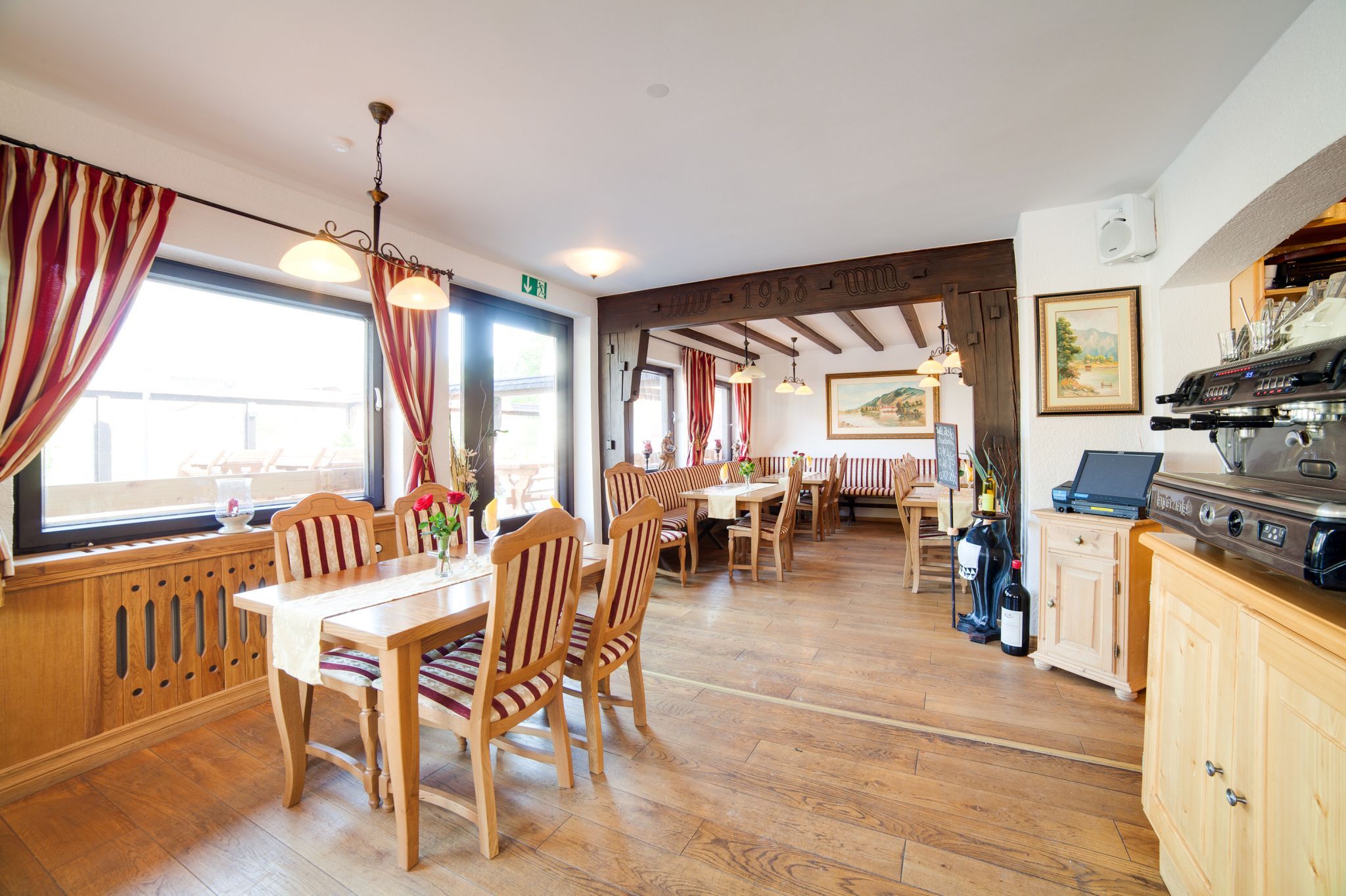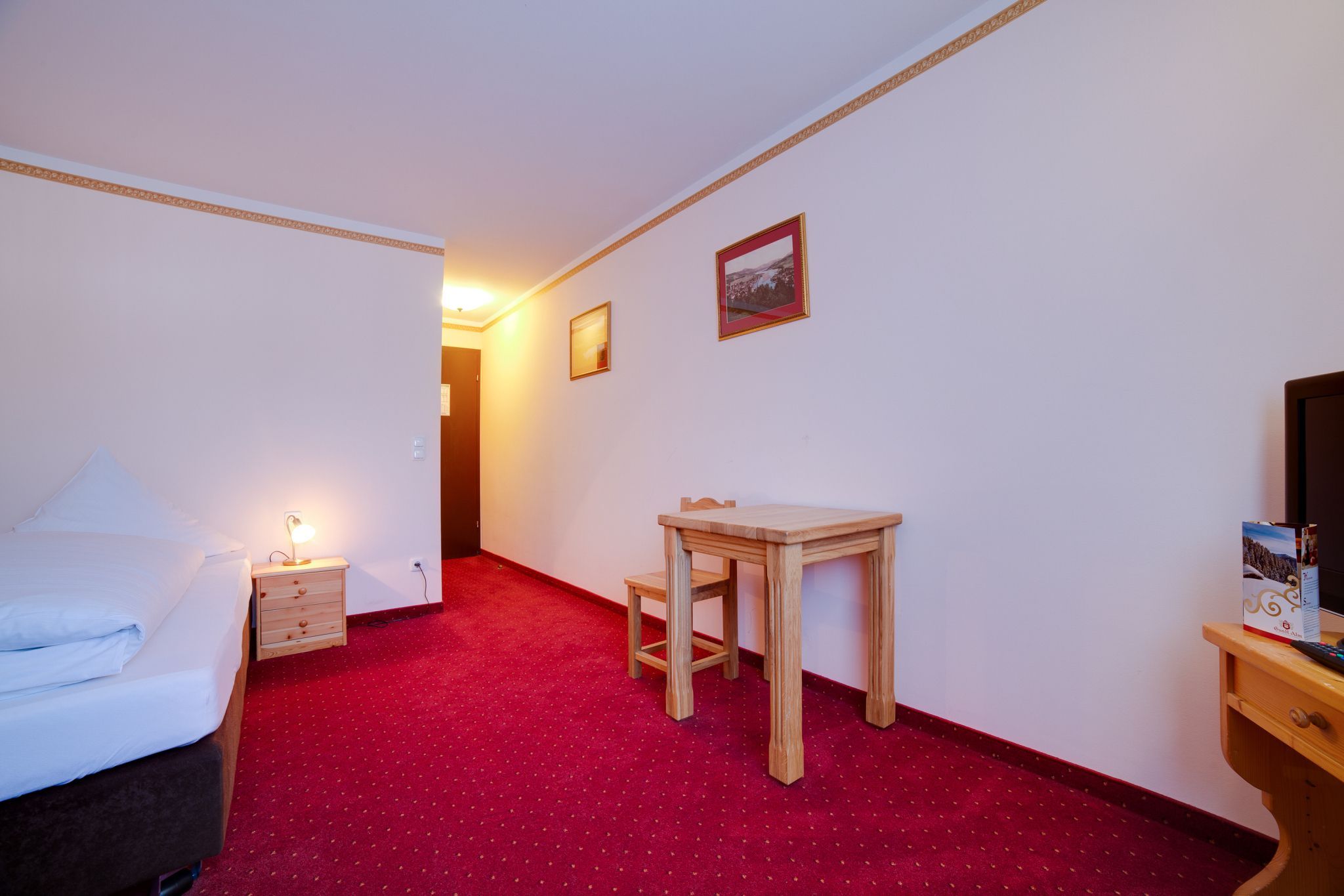 Kostenlose Parkplätze auf eigenem Hotelparkplatz, kostenloses W-LAN in den öffentlichen Bereichen, kostenlose Saunanutzung, gemütliches Restaurant mit mehreren Stuben und Sonnenterrasse mit Seeblick, urige Tanzbar im Untergeschoss (Oktober - März).